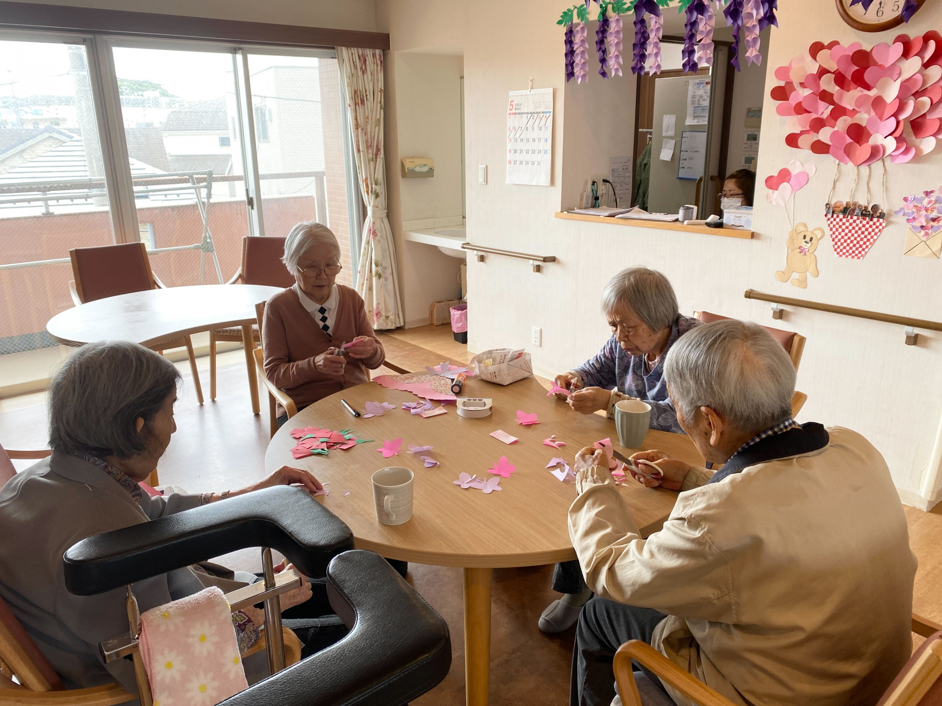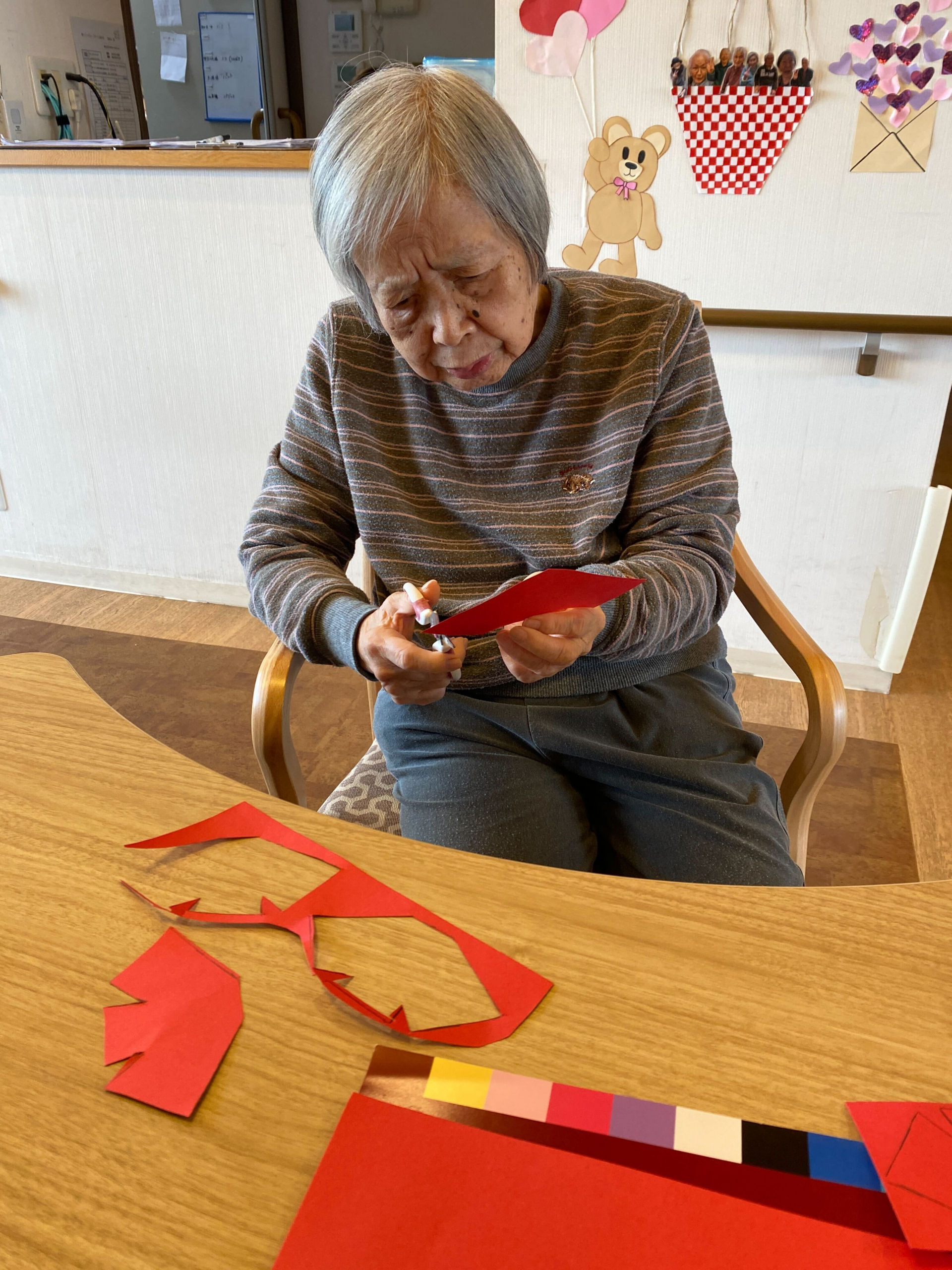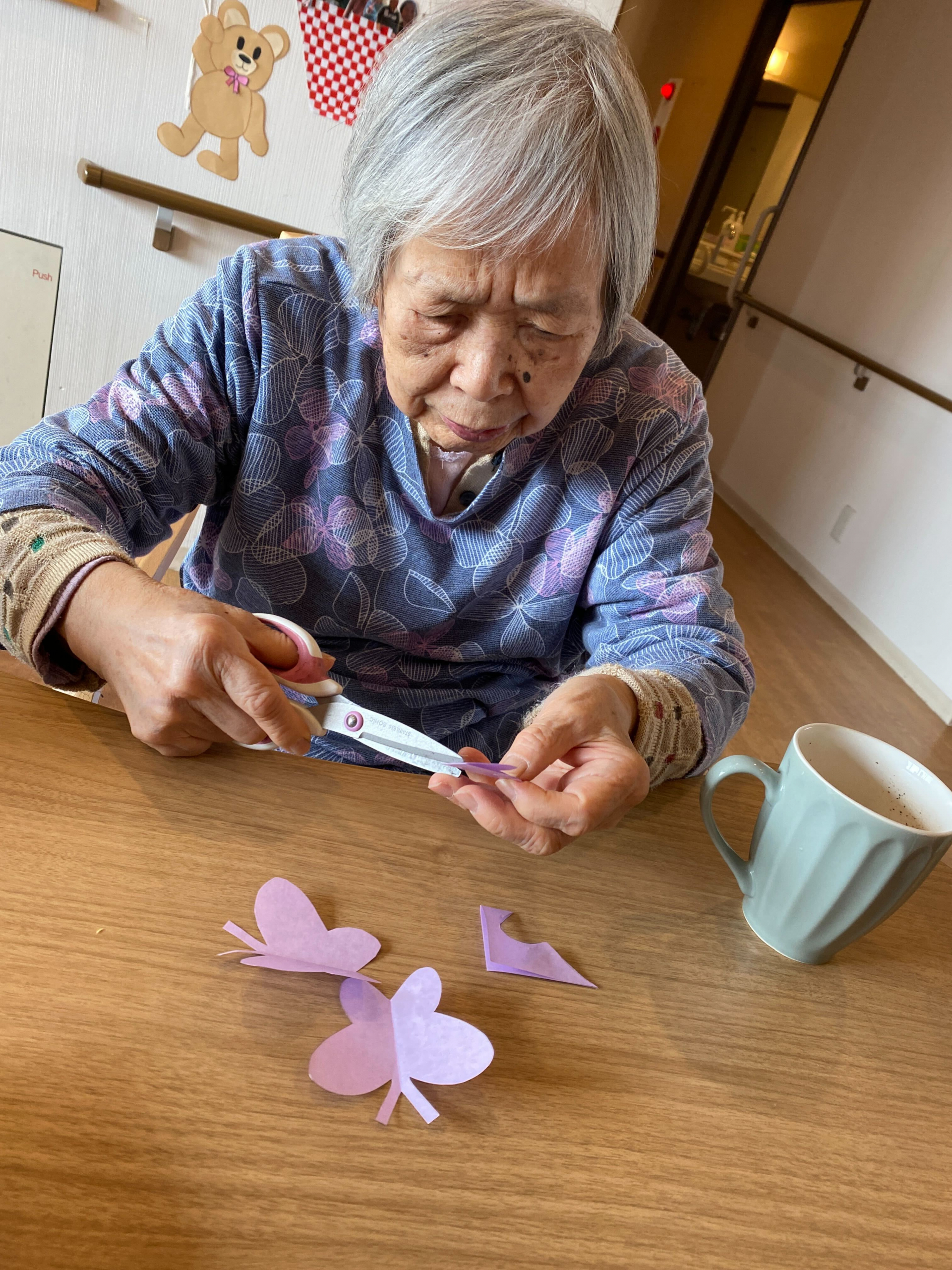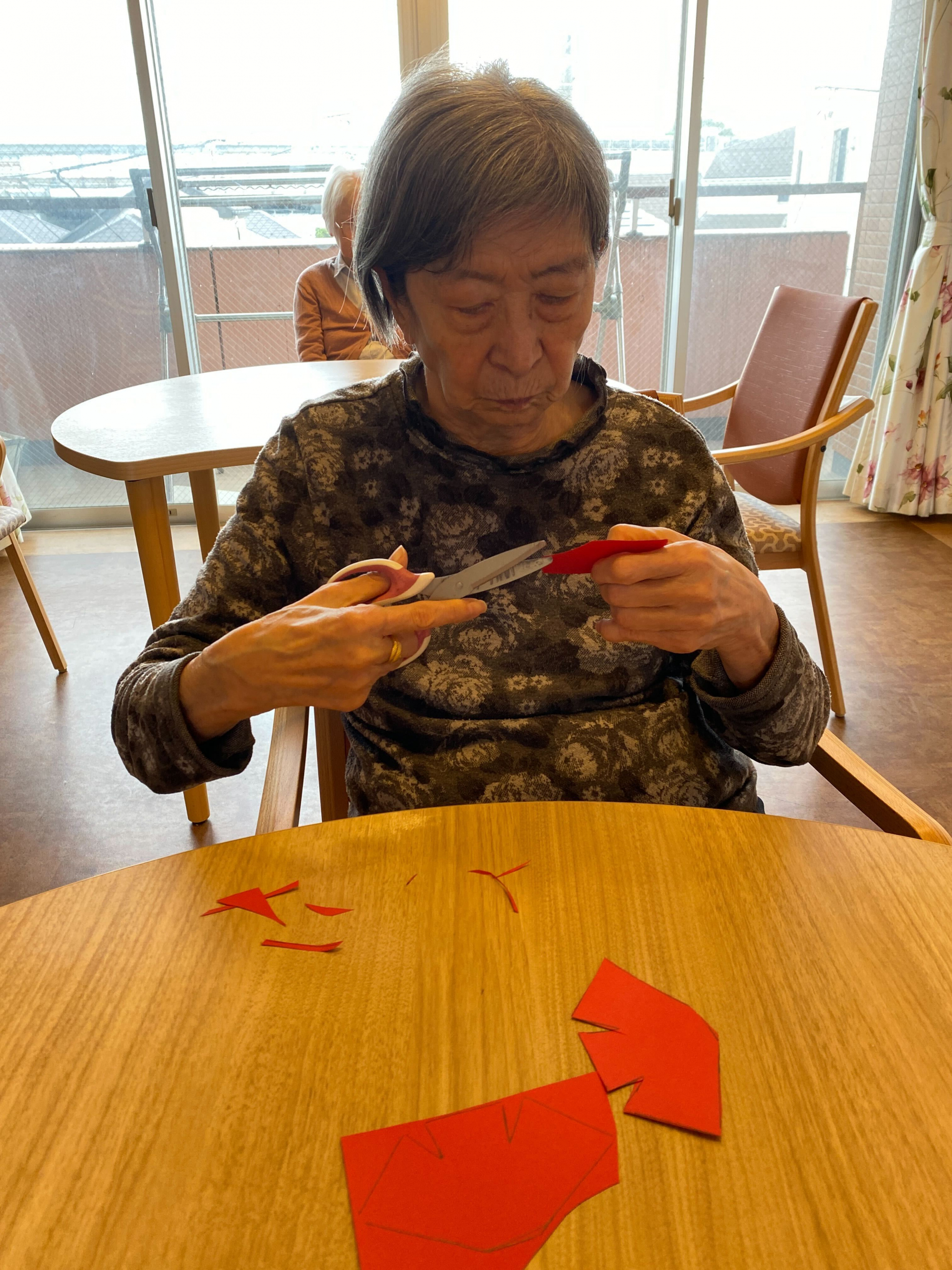 職員がこれから母の日ですので、カーネーションのお花を作ってみましょうと言うと「いいね!最高のアイデアだねぇ」と喜んでました。