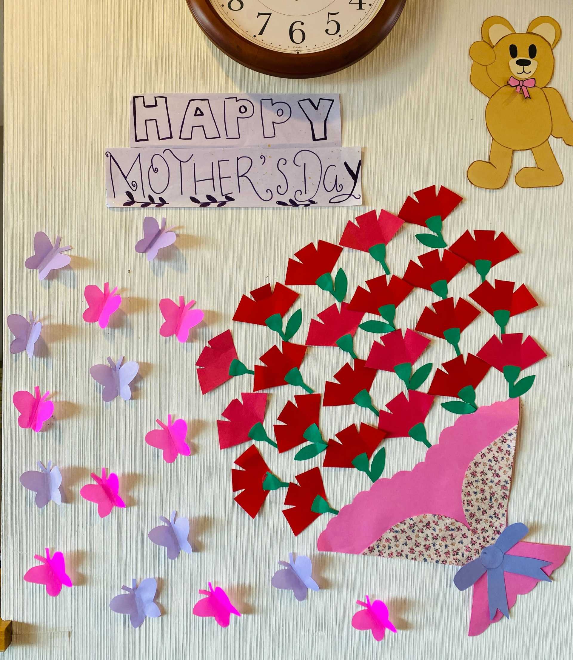 5月12日には母の日ですので、皆での母の日の飾り付けを作ってみました。