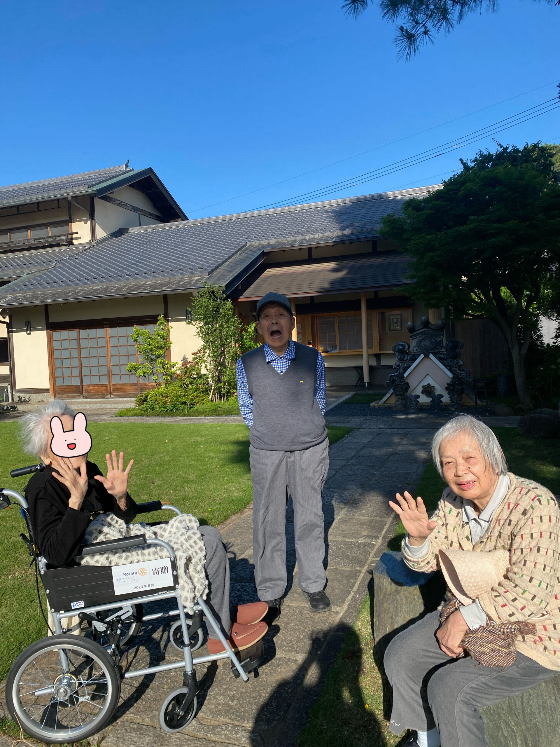 ある日、みんなでのお寺に参拝しに行ってきました。拝んだら、お寺内に公園には椅子があり、そこでゆっくり休んで空気吸ってました。「涼しい風が来て、気持ちがいいね」「ここでいると落ち着いてます!」と三人ともで会話していました。