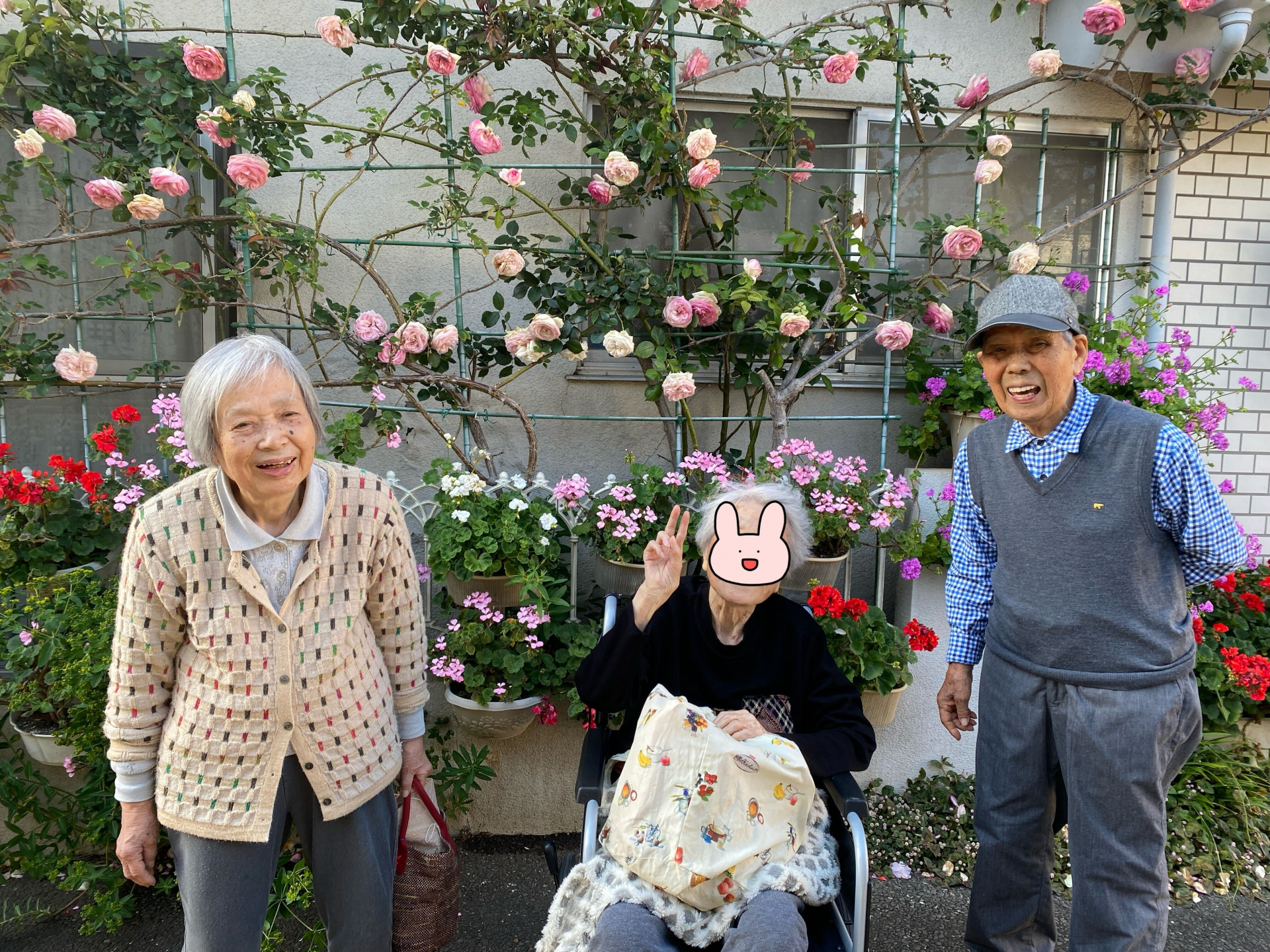 道でかえっているところで、近所の庭には育っている可愛いお花が見ました。「このバラっていい色ね」「きれい~きれい」と皆様と一緒に写真撮影を撮らせて頂きました。