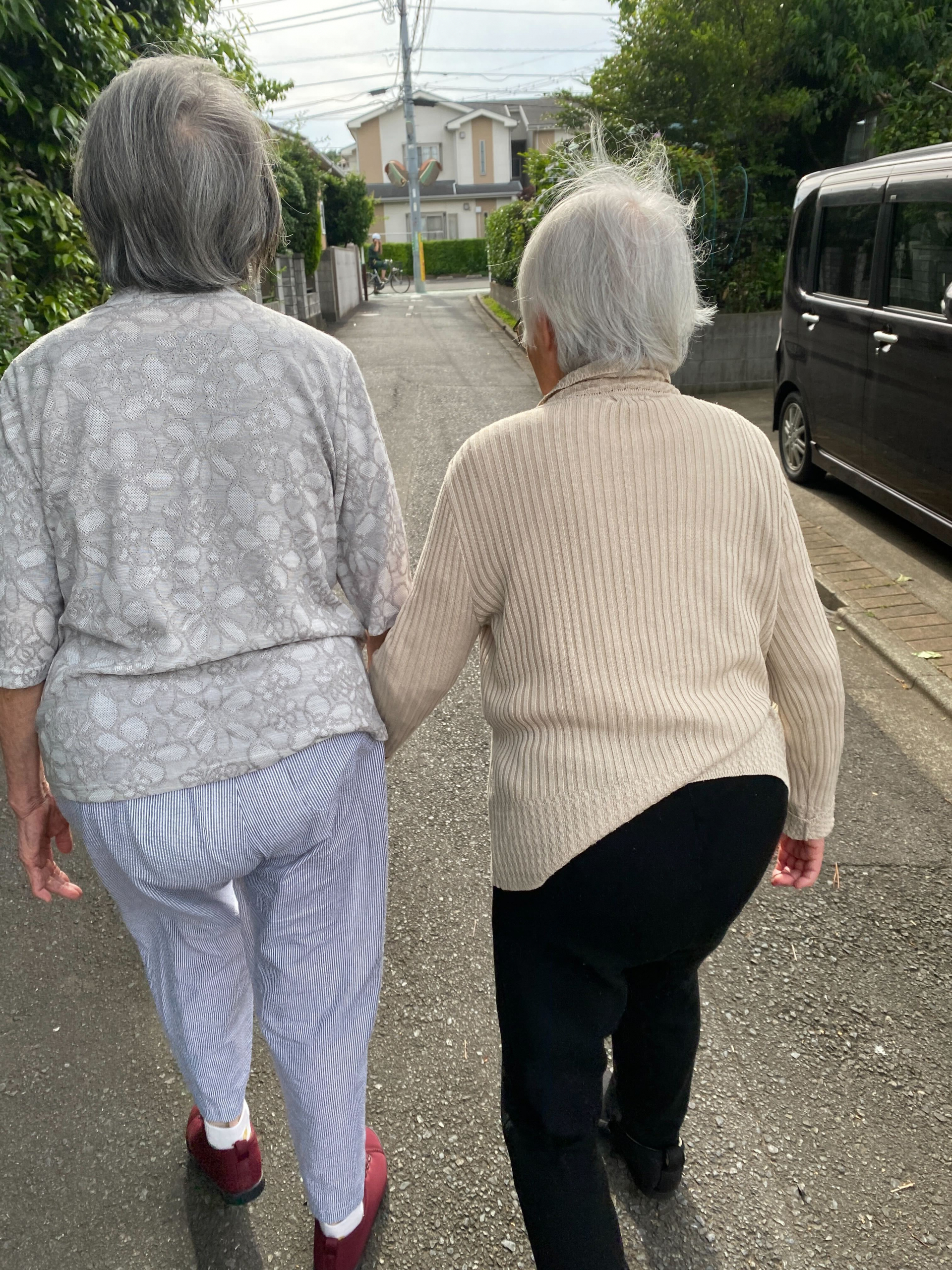 道に転ばないようにお互いに手を繋いでました。「気をつけてくださいね」と仲良くしてお互いに応援してました。