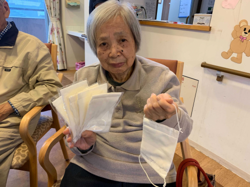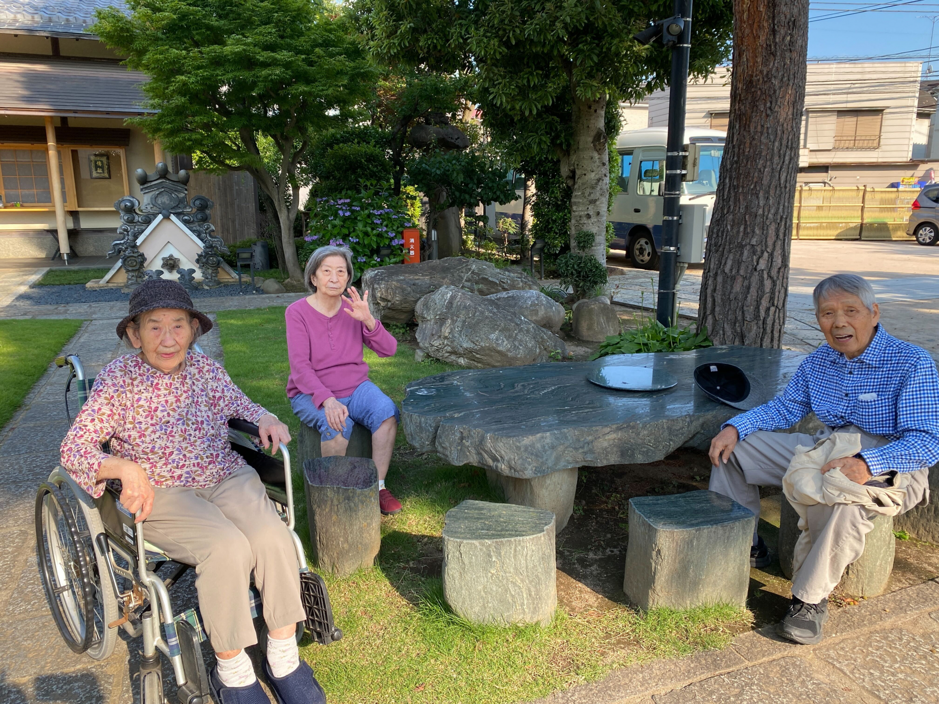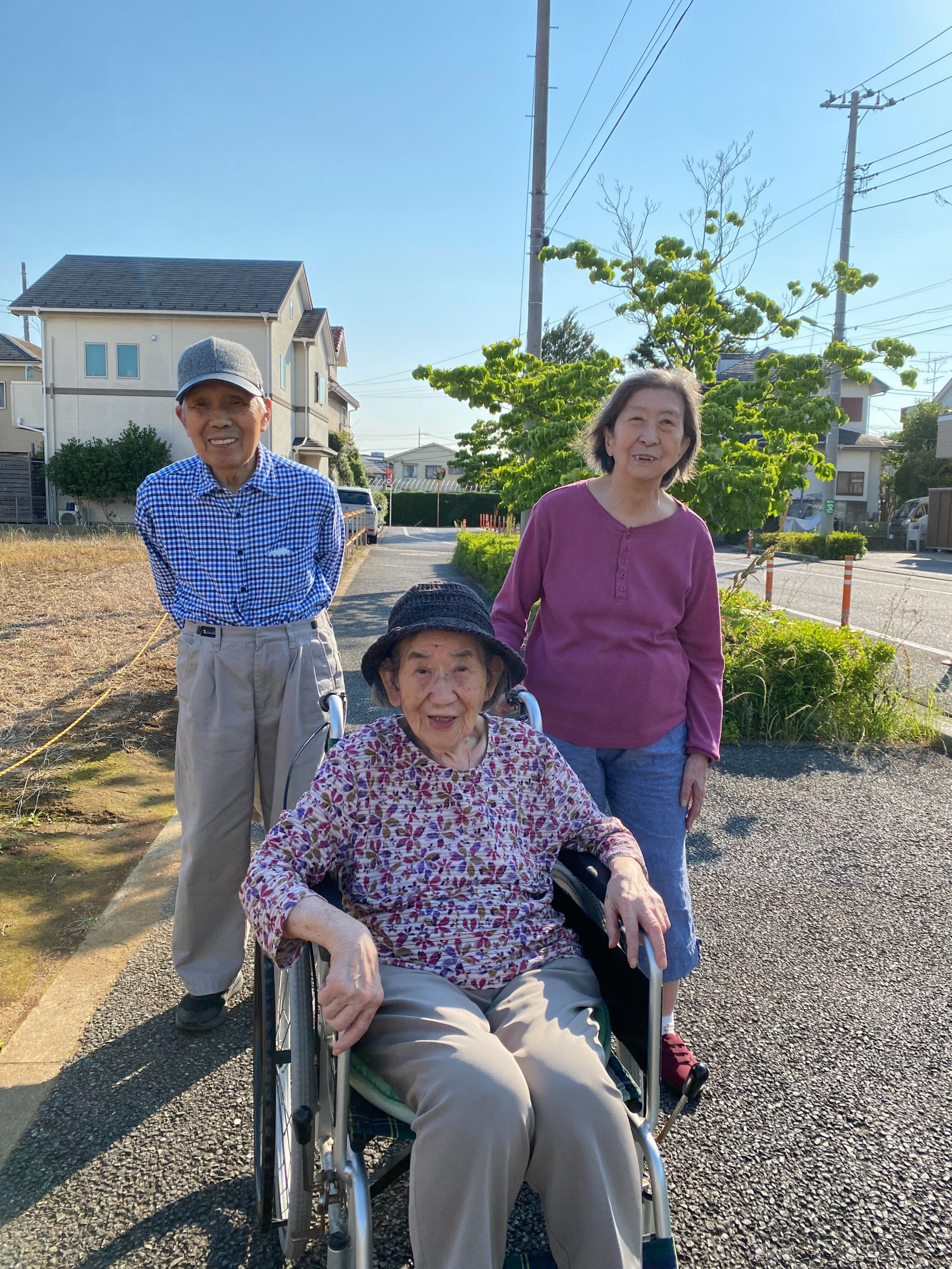 帰っているところで、青空が見られるので、記念撮影撮らせて頂きました。「ああ感謝~感謝」「外に行かれたから、嬉しかったわ~」と喜びで言ってました。
