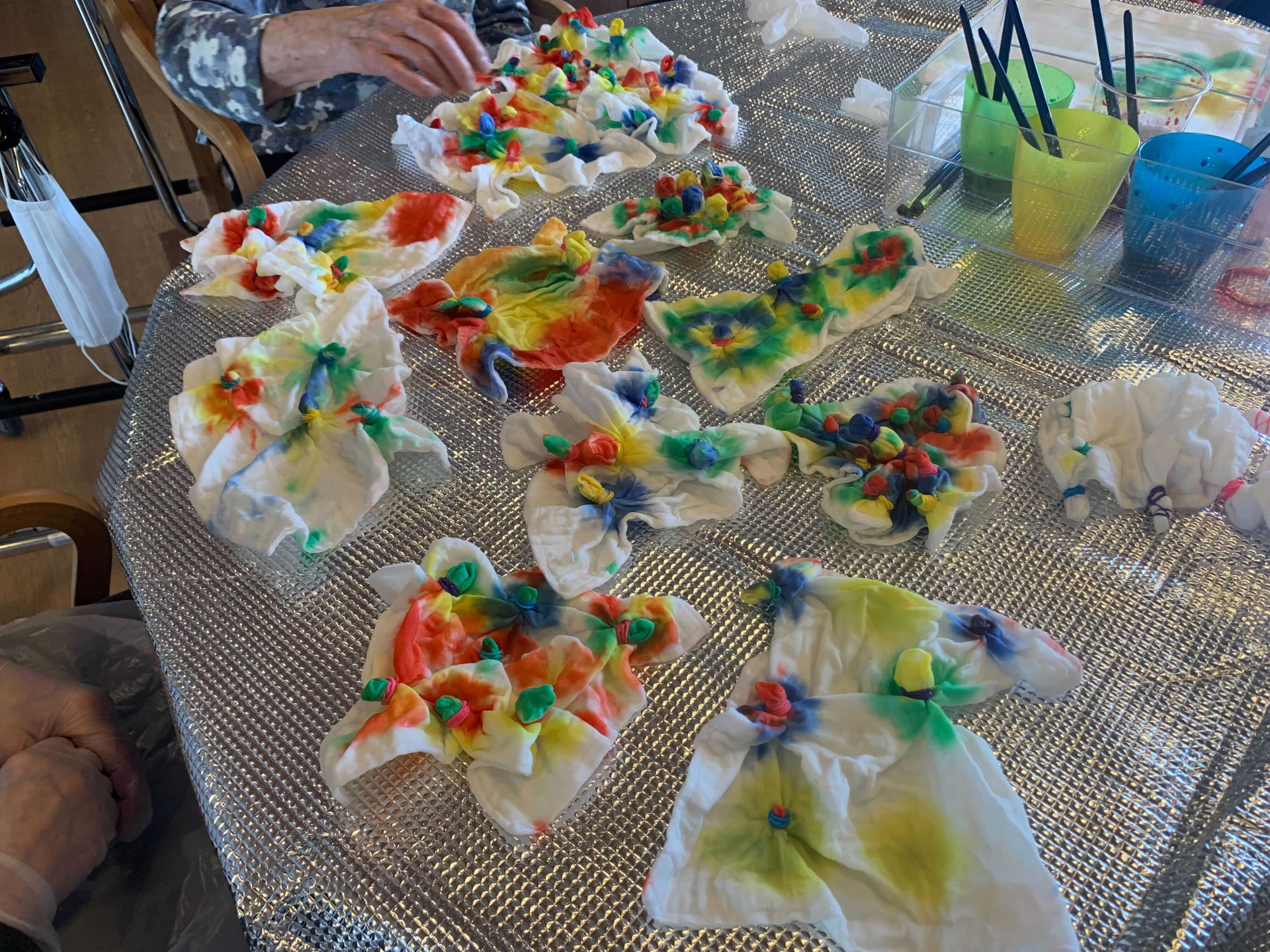 アベノマスクを再利用して、絞り染めをしてみました(*^-^*)