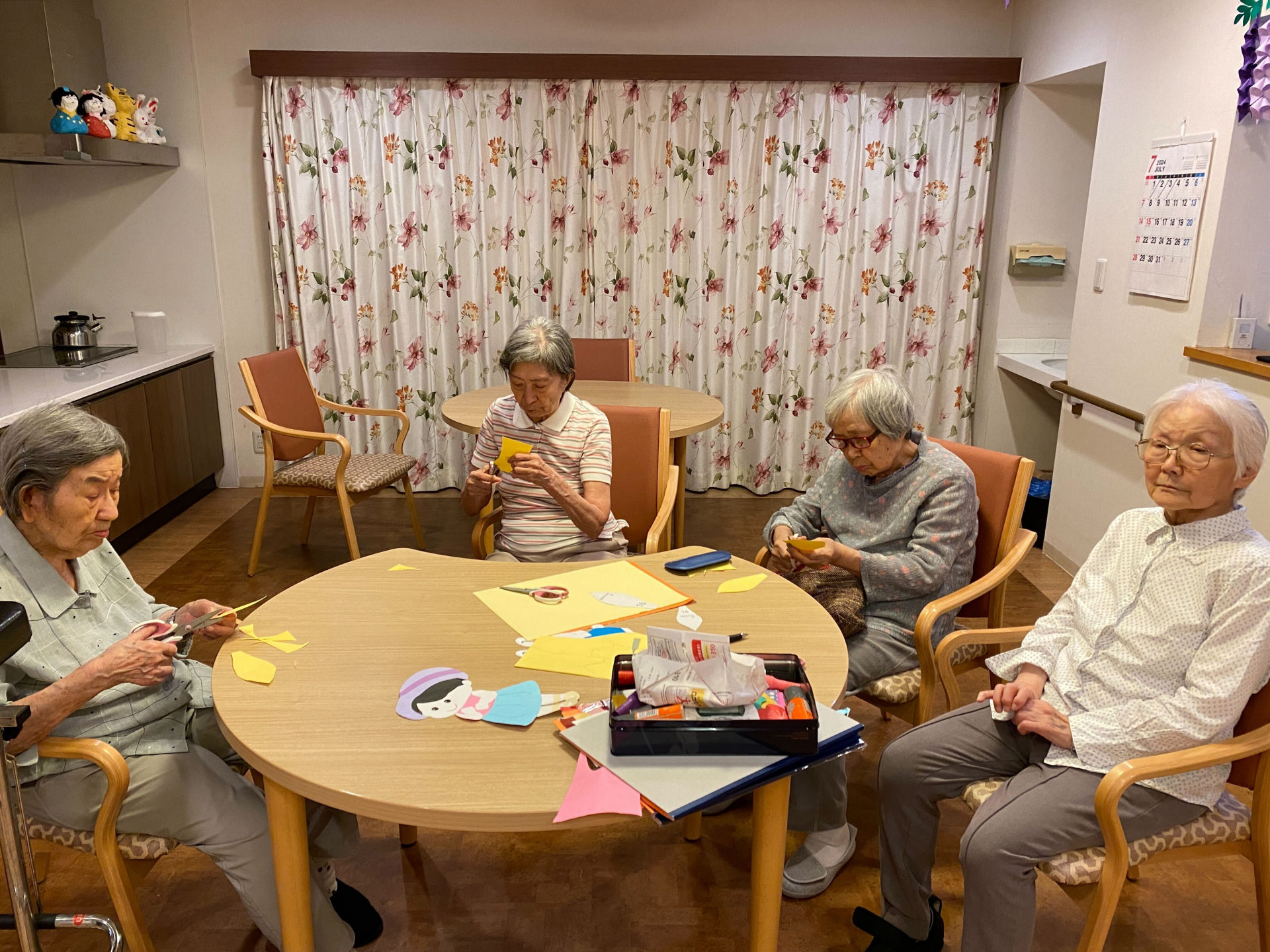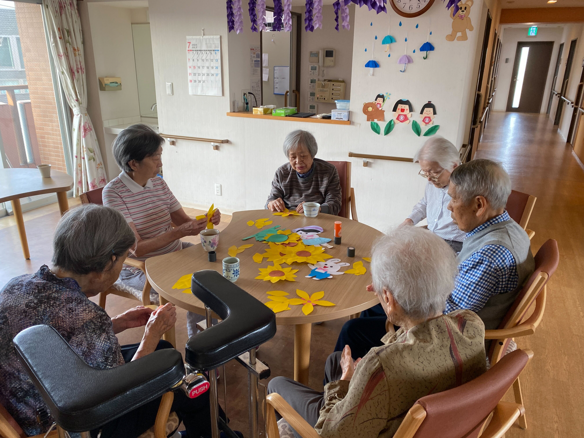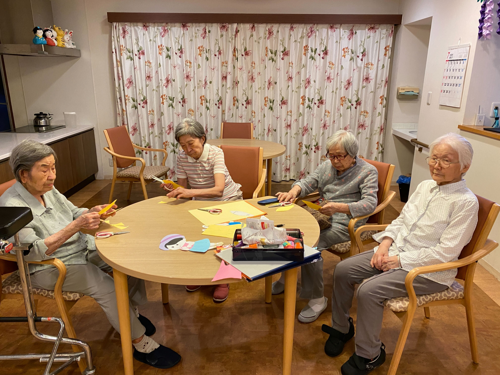 ある日、夕食後、みんなでの折り紙でヒマワリを作ってみました。「何作るの?こう?あってる?」と積極的に折り紙を切ってくれました。