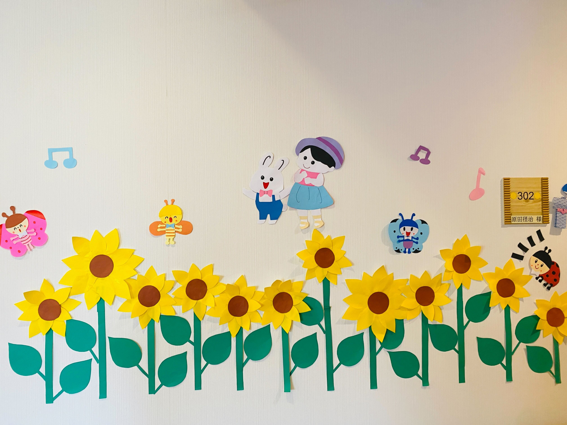 全てのお花ができて、壁に貼り付けてました。「綺麗に飾ってましたね」「かんしん~かんしん~」と喜んで言ってました。