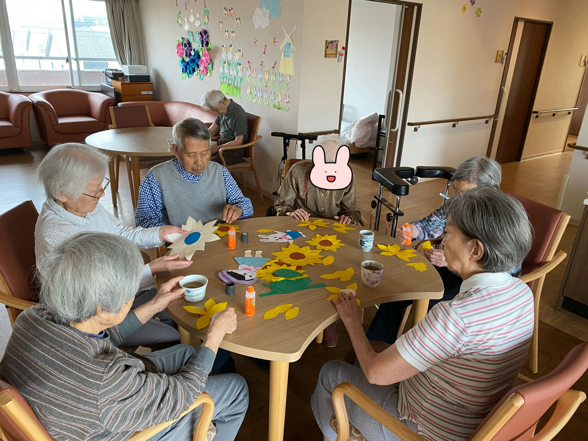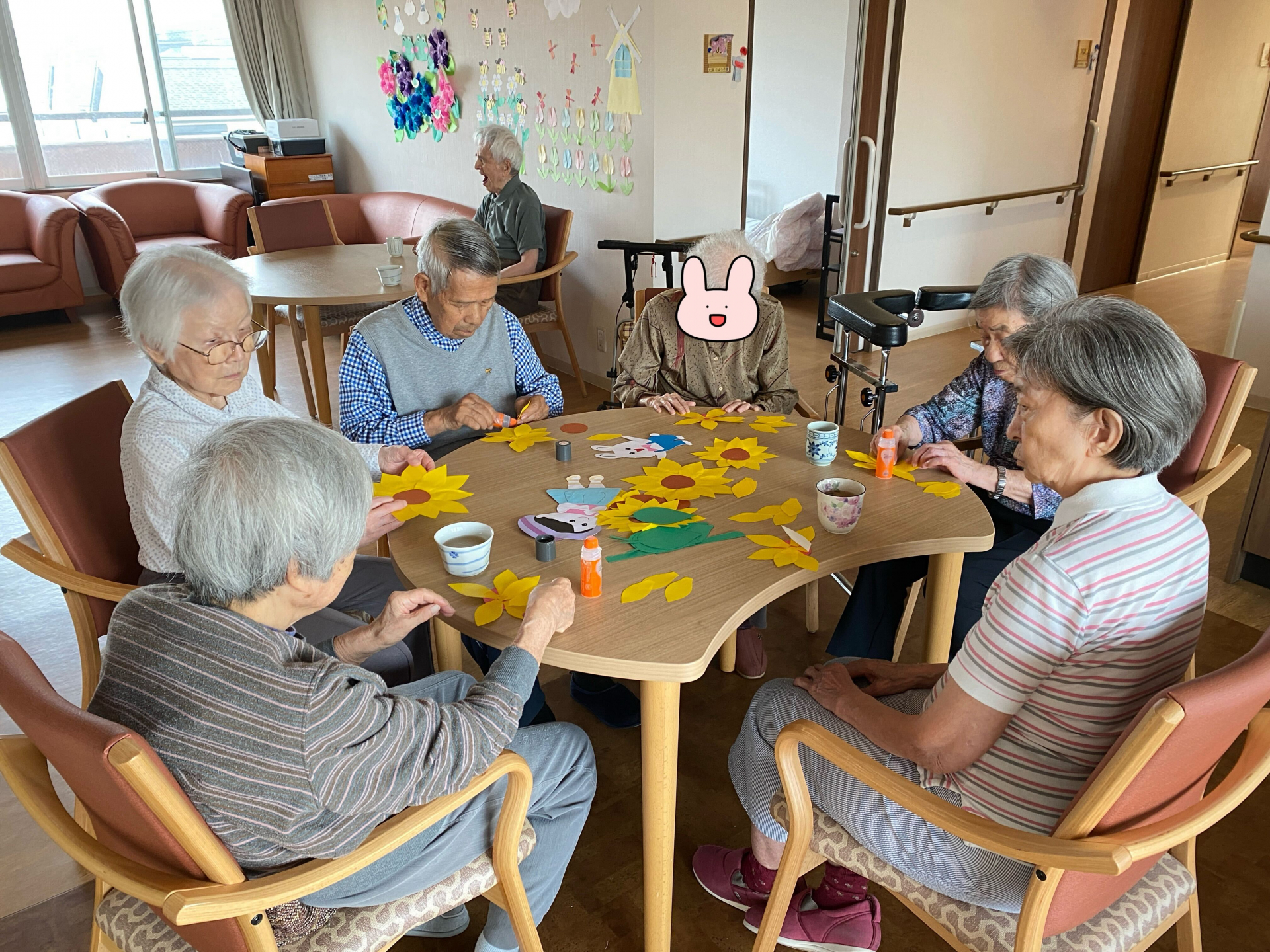 次の日、ひまわりを作り続けてました。「色はピッタリだねぇ」「これはかわいいね」「ウサギさん可愛いね、今度私にもらっていい?」と楽しそうに切ってくれました。