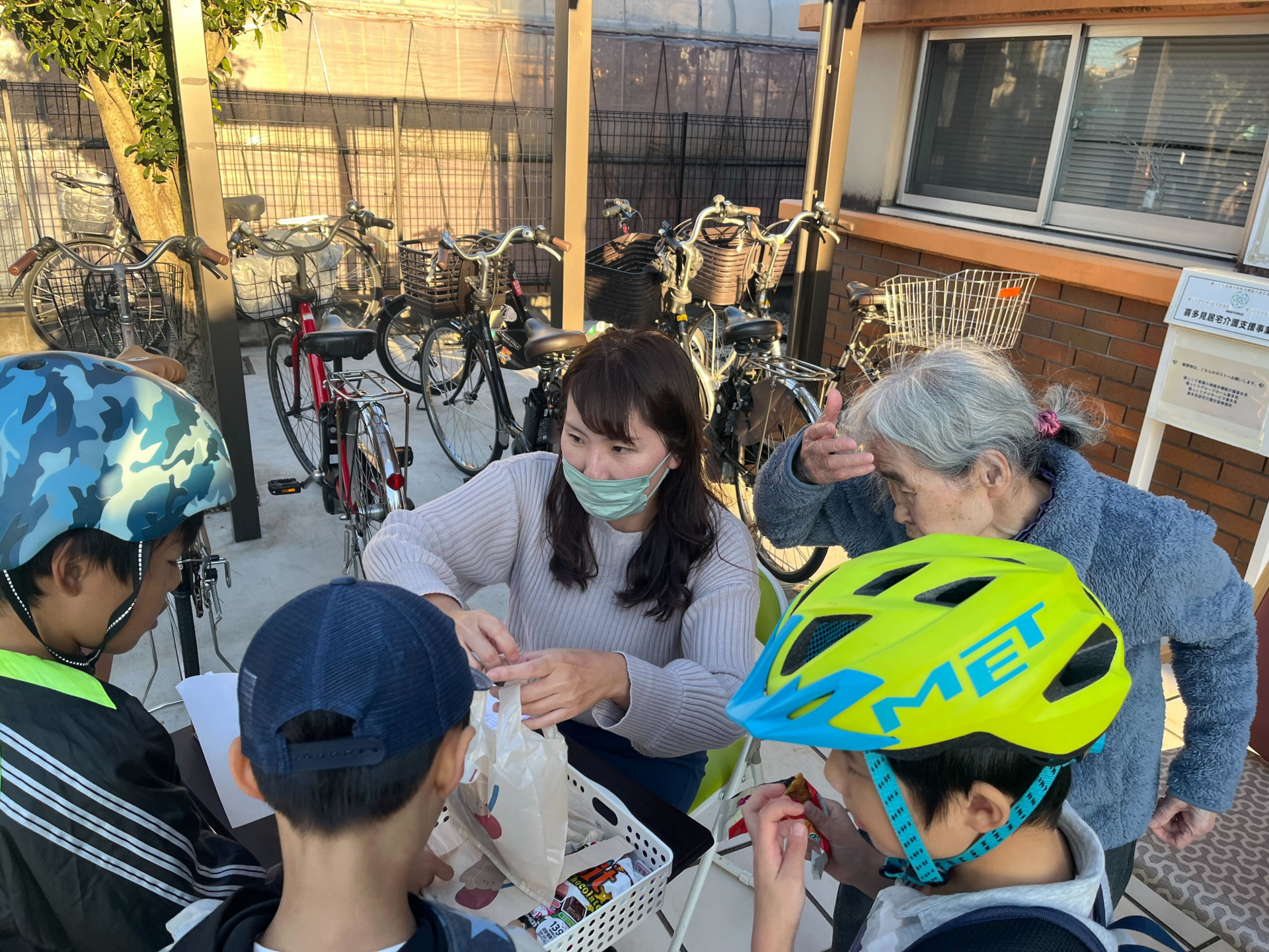 少し風が冷たい日でしたが、袋にお菓子を詰めたりしてくださいます。