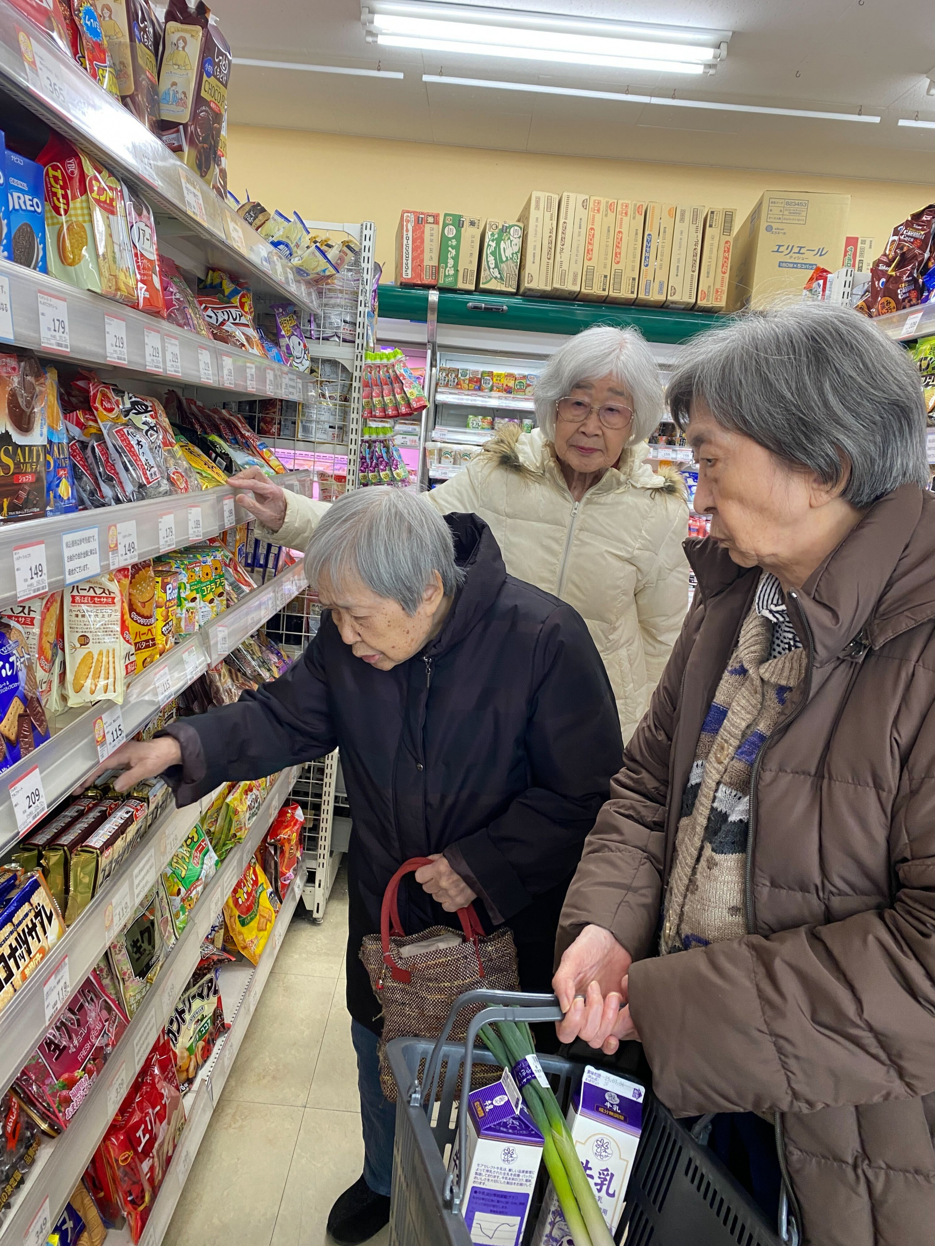 村の近くにスーパーマーケットに買い物してに行って来ました。「これ食べてみたいね」「牛乳飲みたいから、買おうか」と会話していました。いつも楽しそうに買い物をしてよかったです。。今度また行こう!!