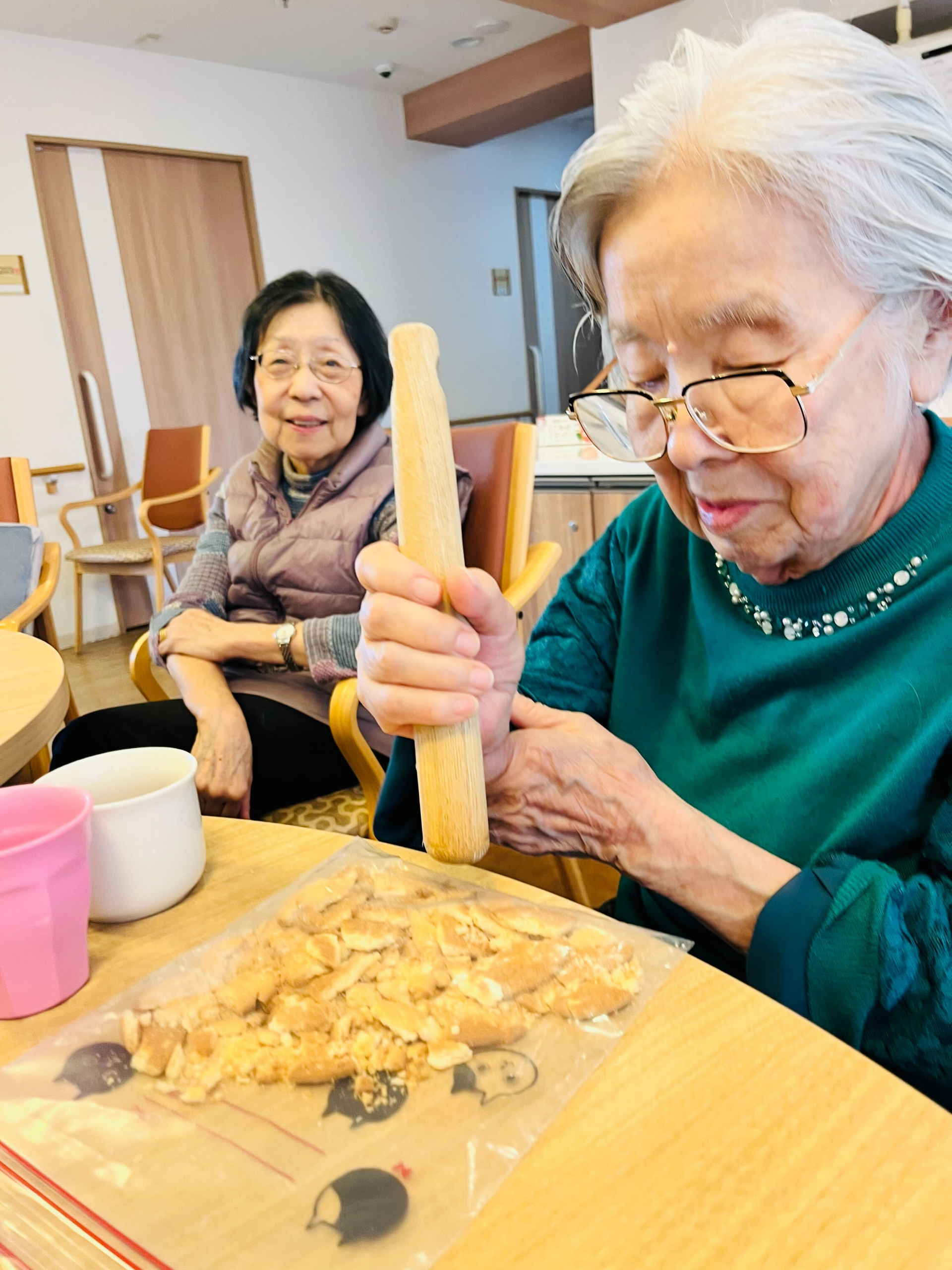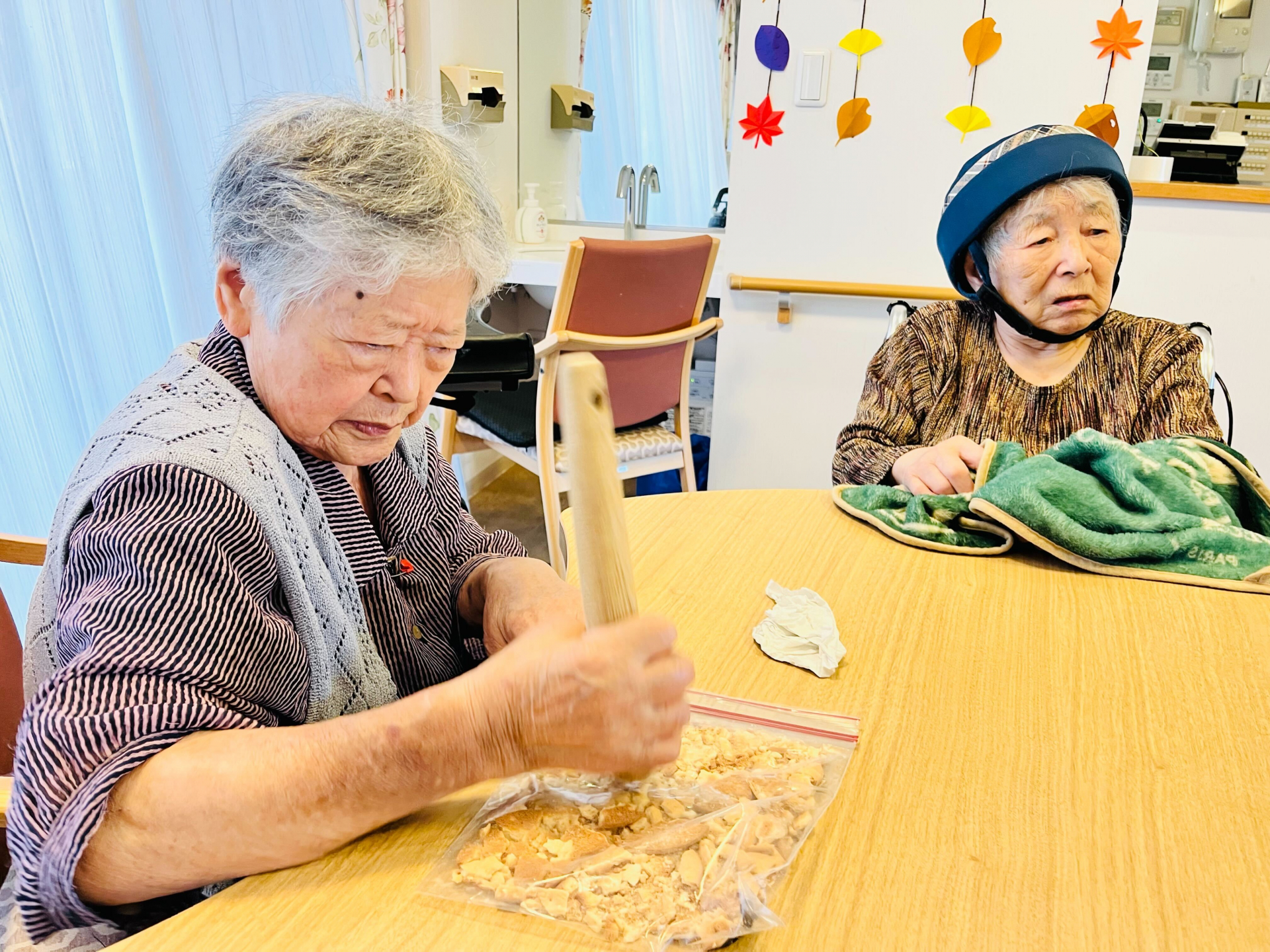 開所式の前日には、入居者の皆様と一緒にお祝いのケーキ作りを行いました。