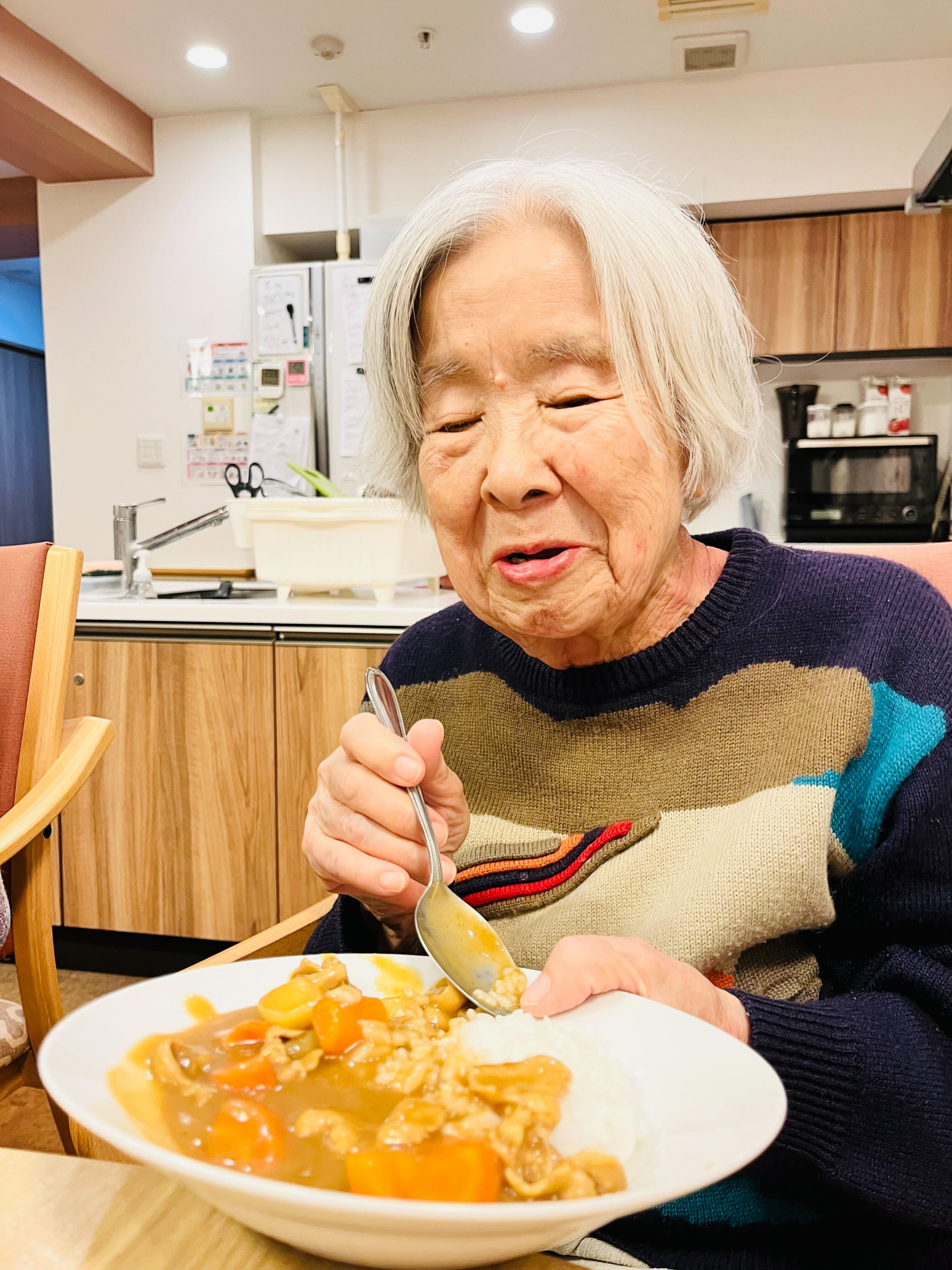 カレーをぐつぐつ煮込んでいると、おいしそうな香りがフロアいっぱいに広がり、入居者様が「もうできた?」と何度もカレーの様子を見に行っていました(*´▽`*)