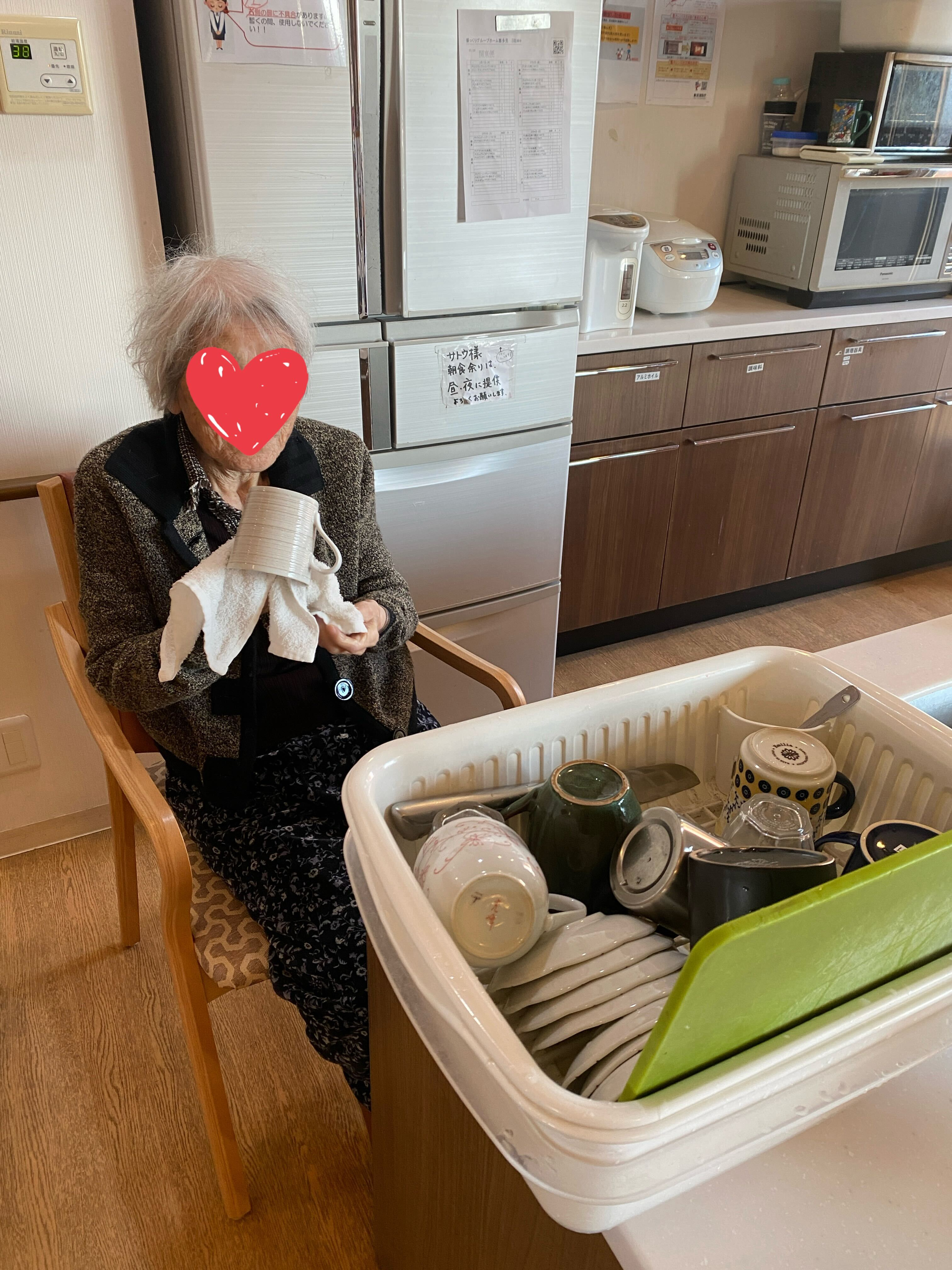「私暇だから、使ってもいいよ。何か手伝うことがありますか」と職員に話しかけられましたので、洗っている食器を拭いてくれませんかと言うと「いいわよ、やるよ」とお答えになりました。