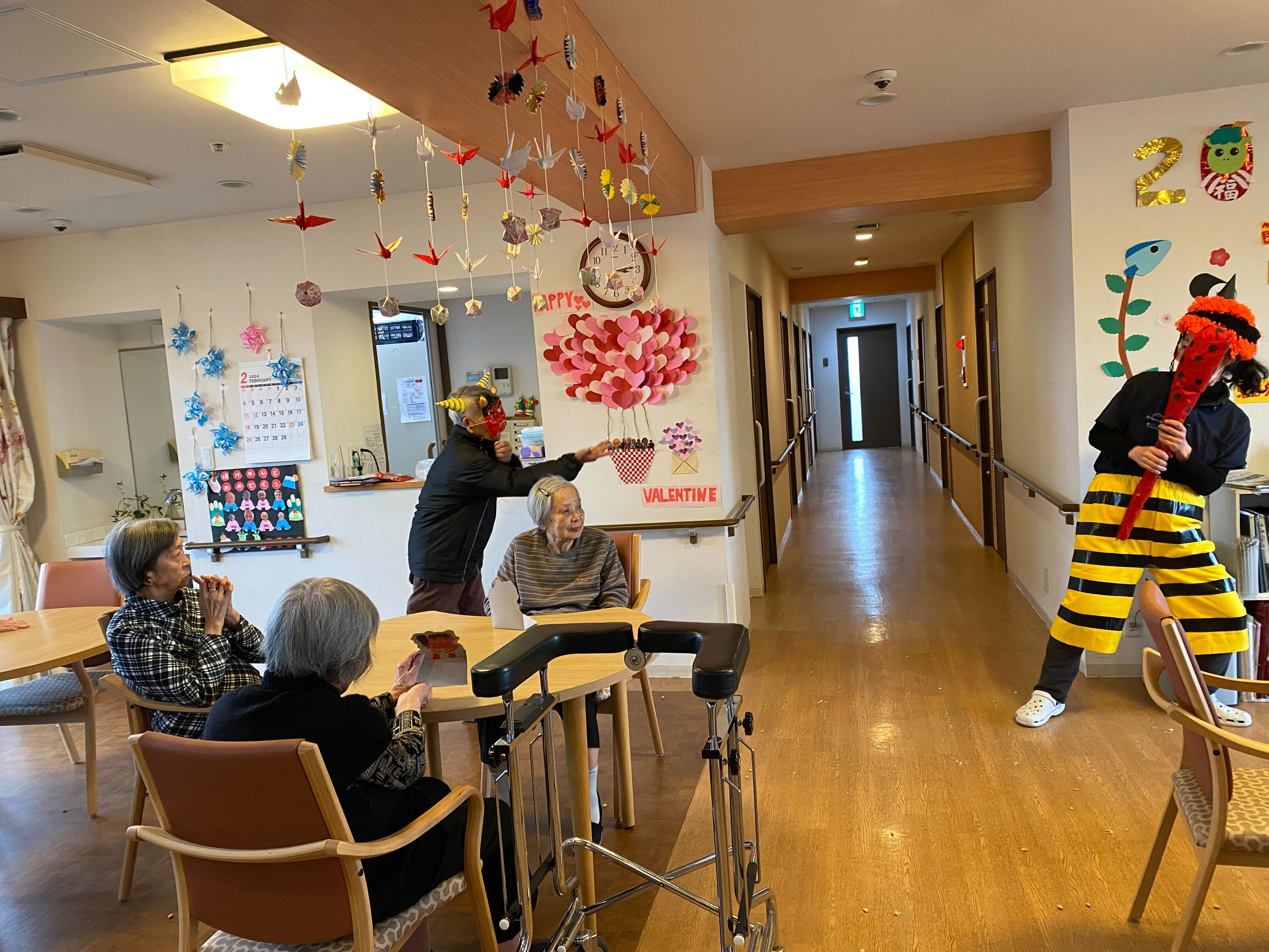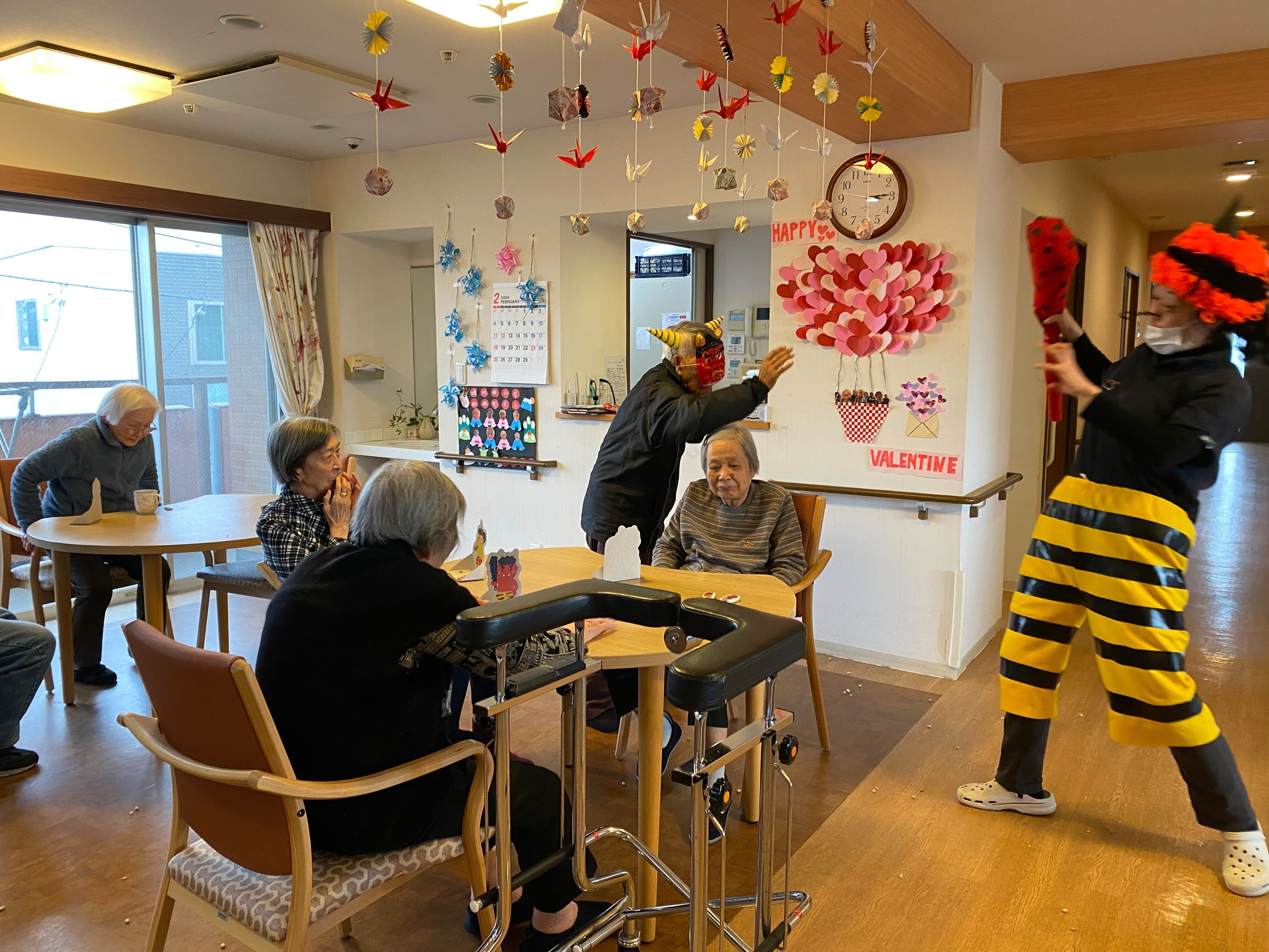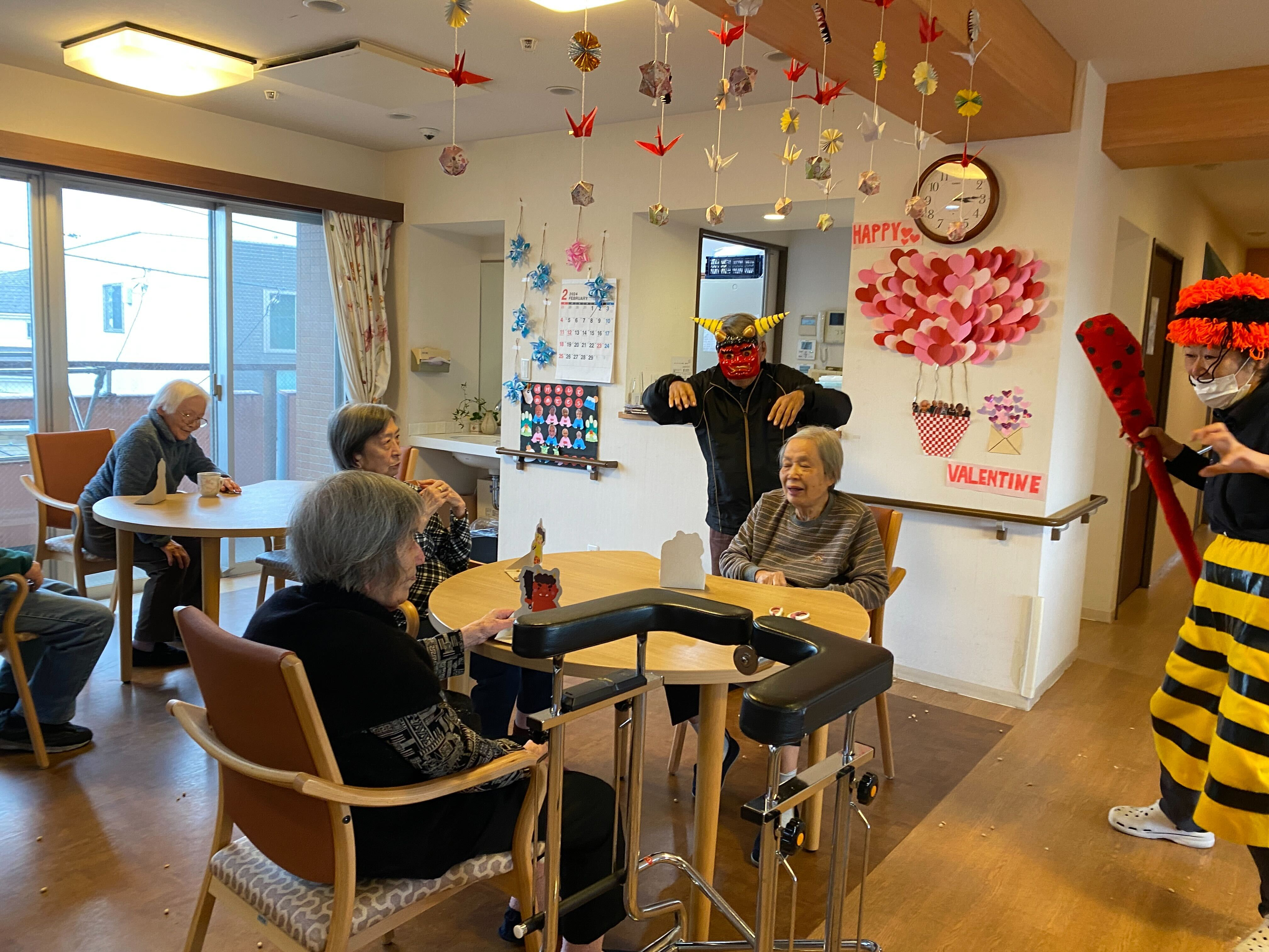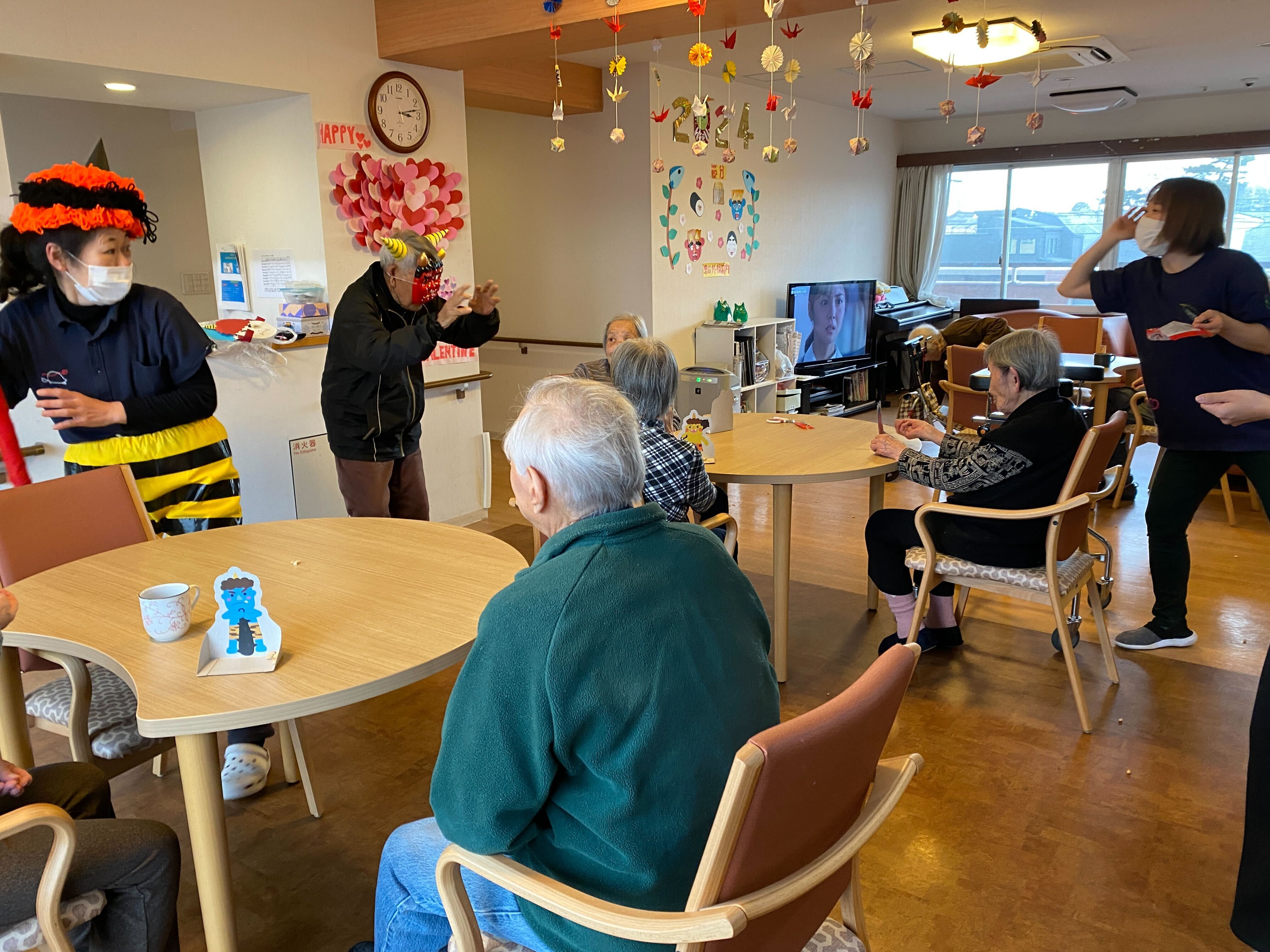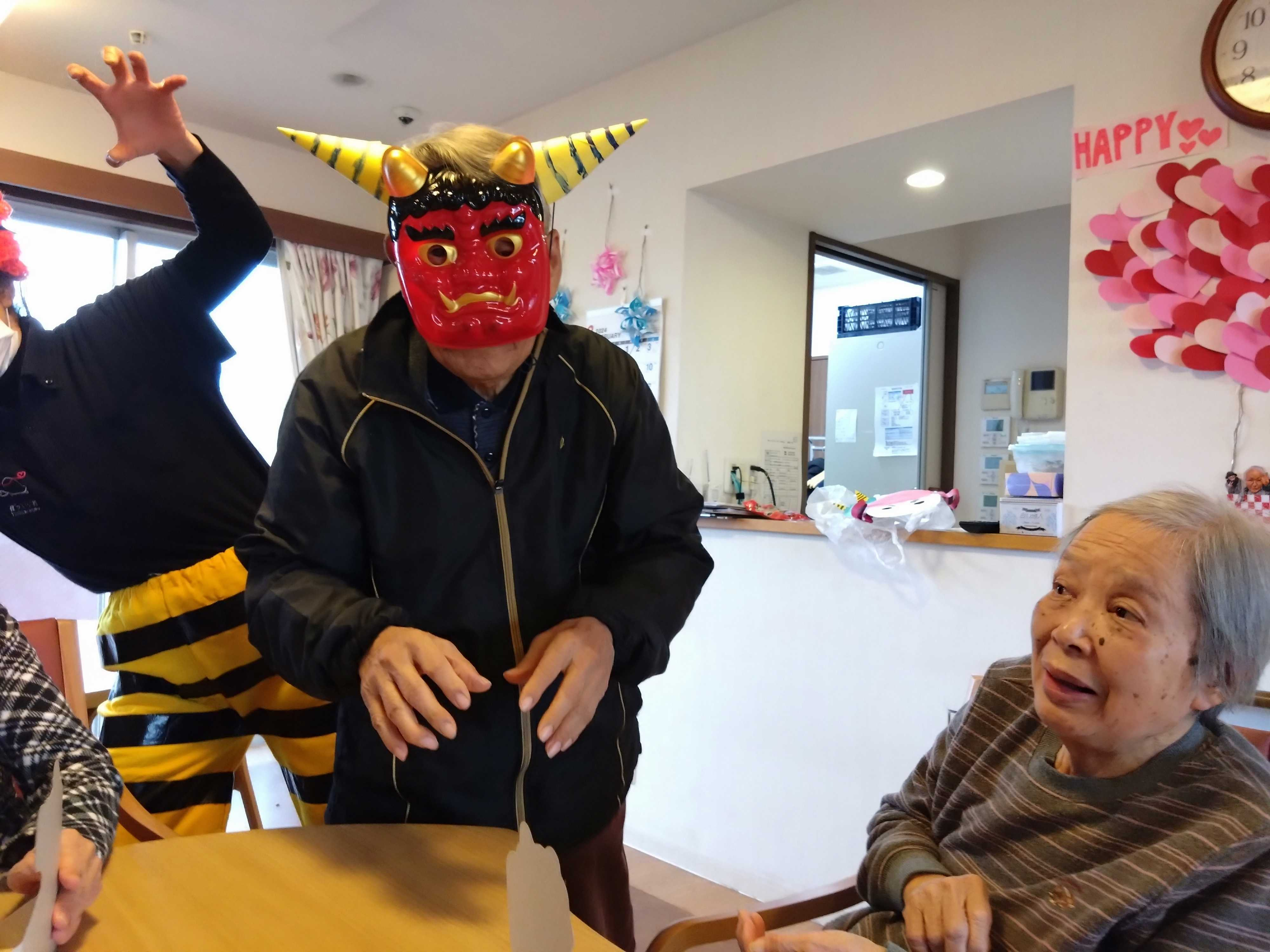 こんばんは!季節ごとにレクリエーションの節分祭を開催されました。