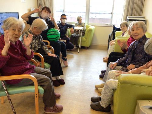 職員やY様がみんなに近づくと「おい!こちきてよ、まめなげるから」「あら!鬼が来たんだよ」「鬼は外だよ」と笑いで叫んで楽しんでました。