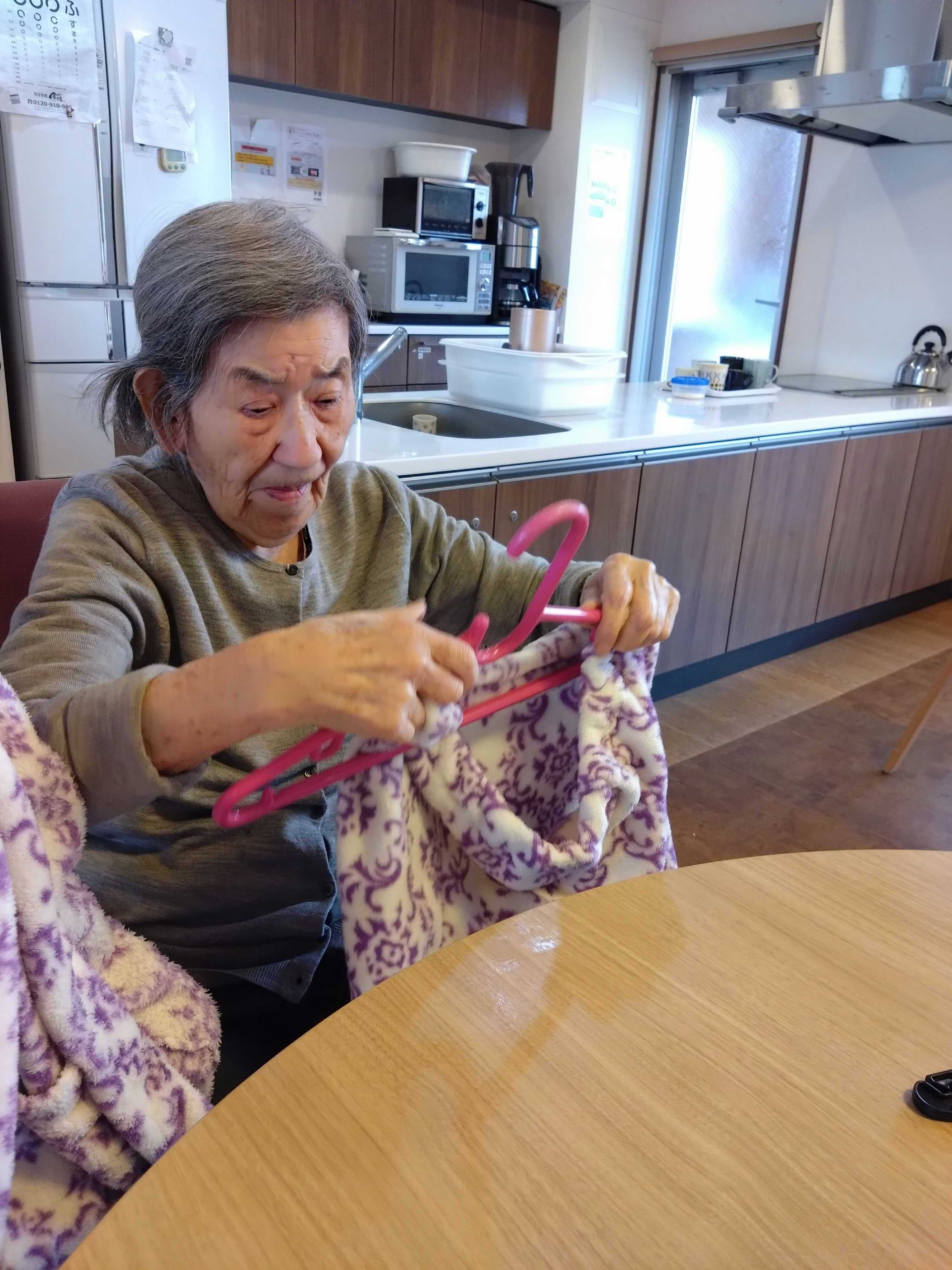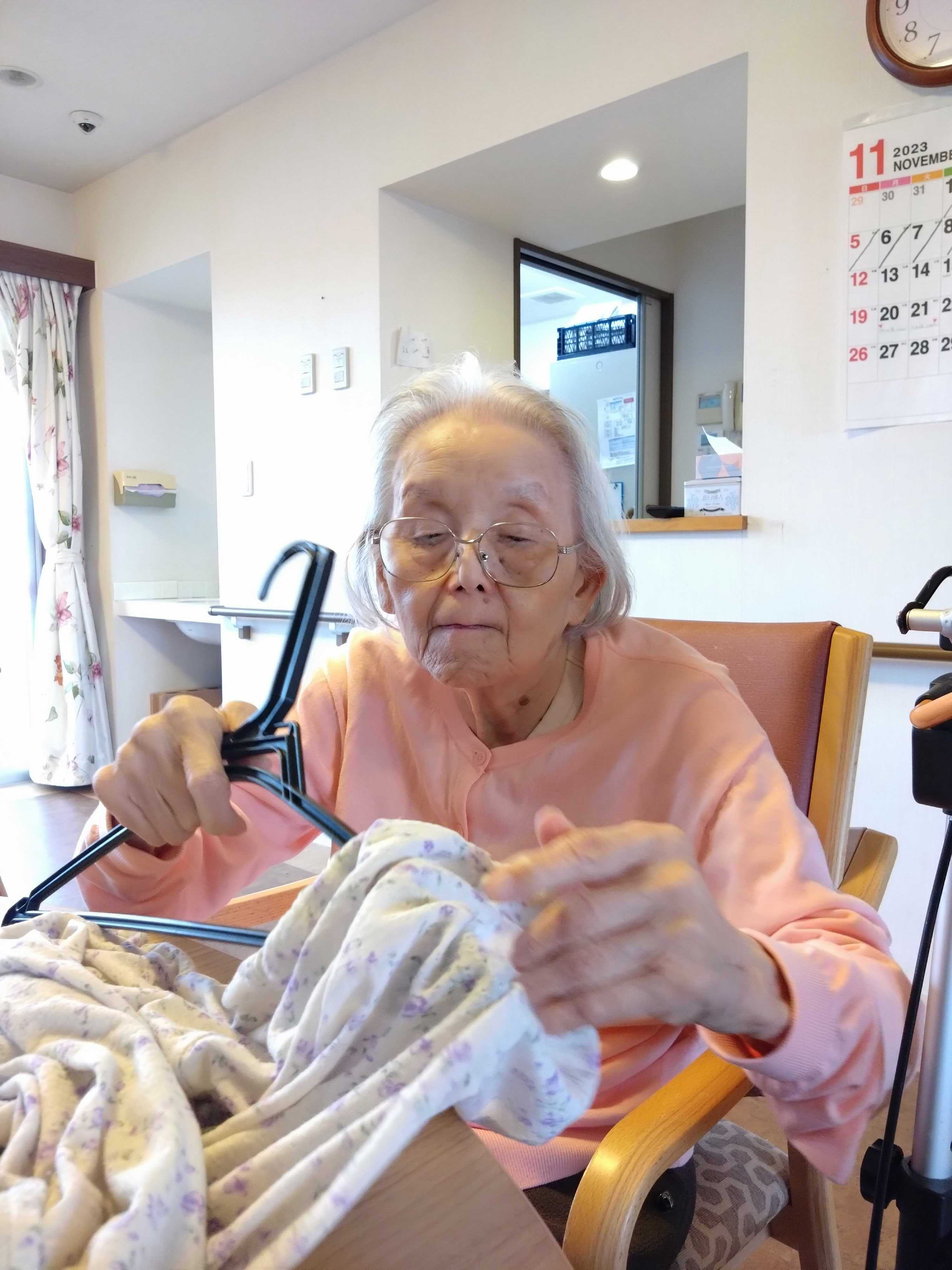 今日はあいにくのお天気でしたが、お二人とも真剣な表情でお洗濯物をハンガーにかけてくださいました(*^-^*)