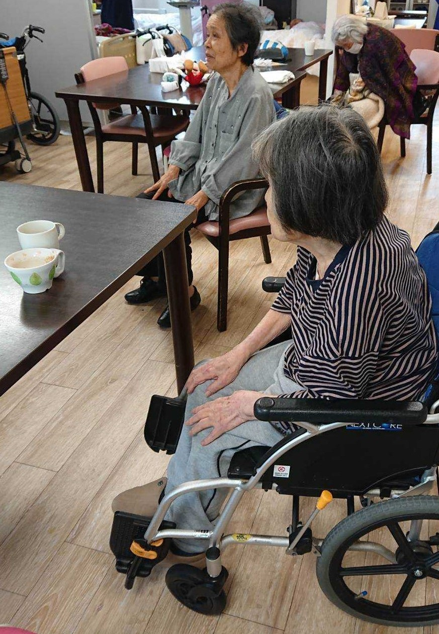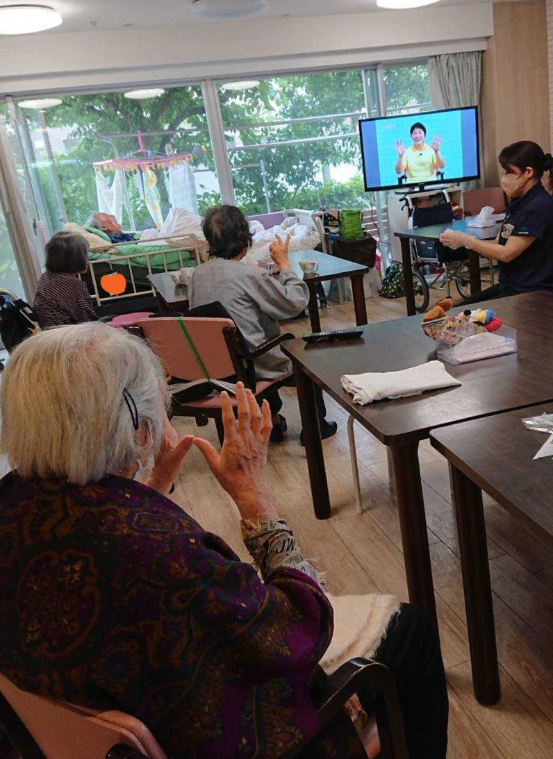 体操中暑いので途中で水分補給を行いながら、無理のない範囲で皆様毎日積極的にご参加されております。