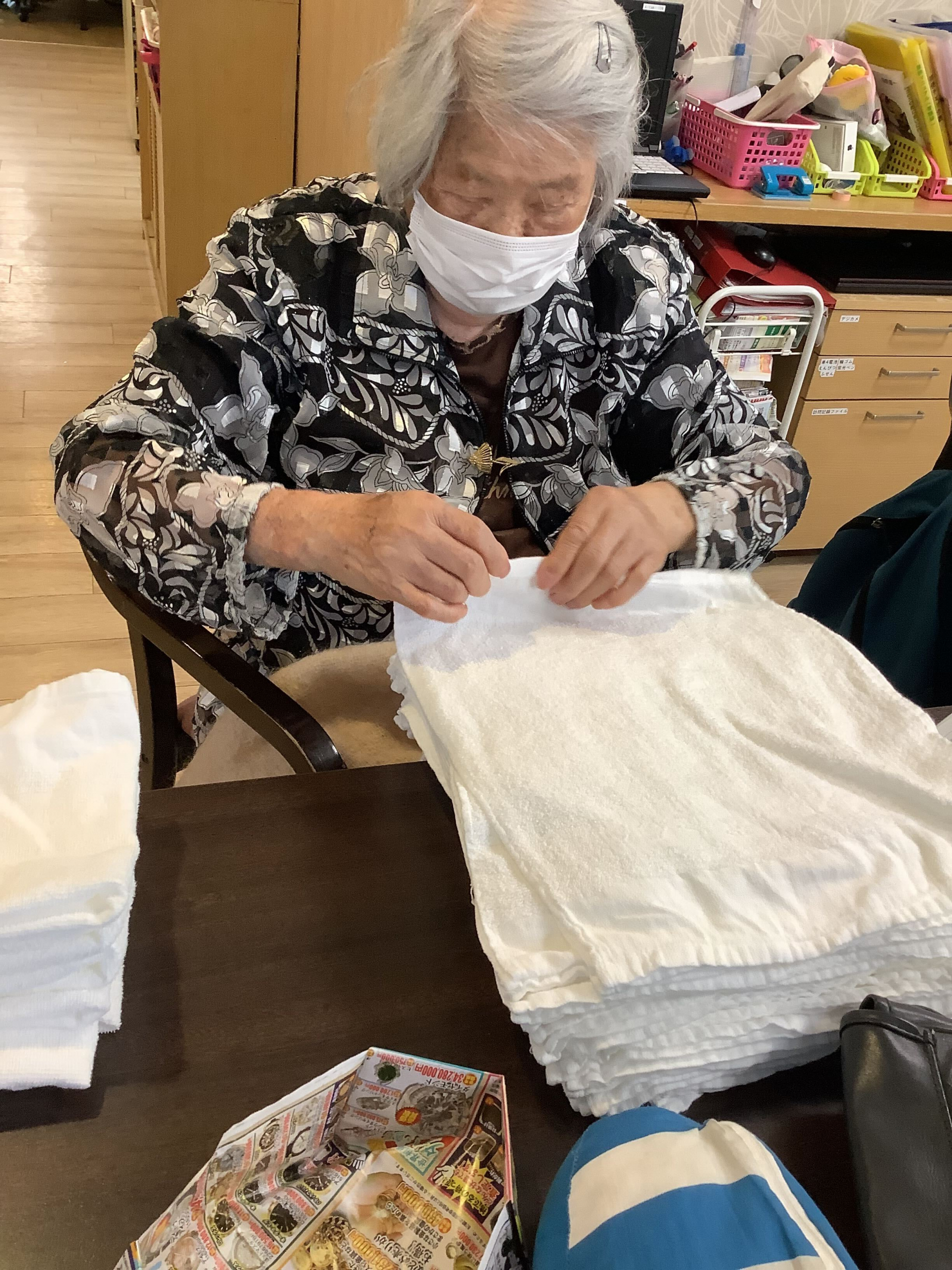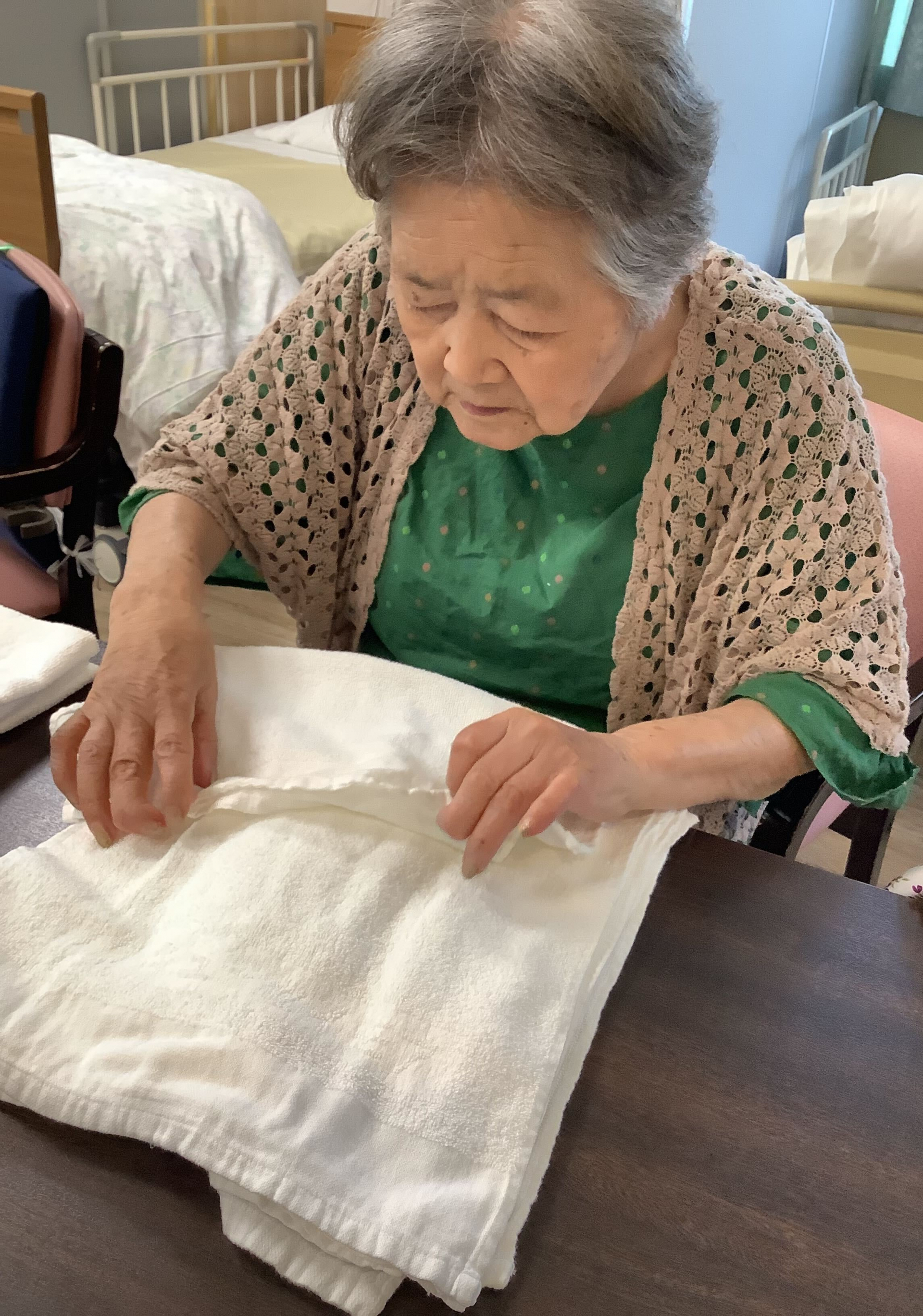タオルを畳んでくれませんかと言うと「いいわよ、やるよ」とお返事を下さいました。
