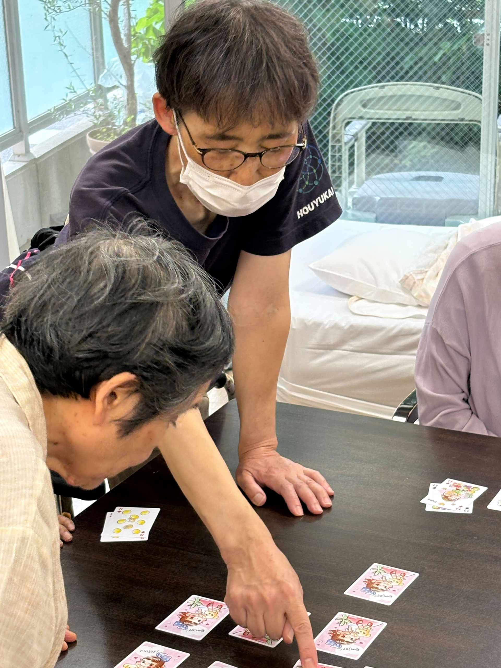 2025.06.07 看多機 皆でトランプ Tweet シェアする 皆さんこんにち 夕食の1時間前に皆さんでトランプをしましょう 最も盛り上がったトランプ神経衰弱を、皆さんで楽しまれました。 1時間ほど皆さんお疲れさまでした。 優っくり看護小規模多機能介護喜多見 阿部 前の記事 2025.06.14 看多機 洗濯物干し 次の記事 2025.05.23 看多機 眠いけどお食事頑張りましょう 一覧へ戻る