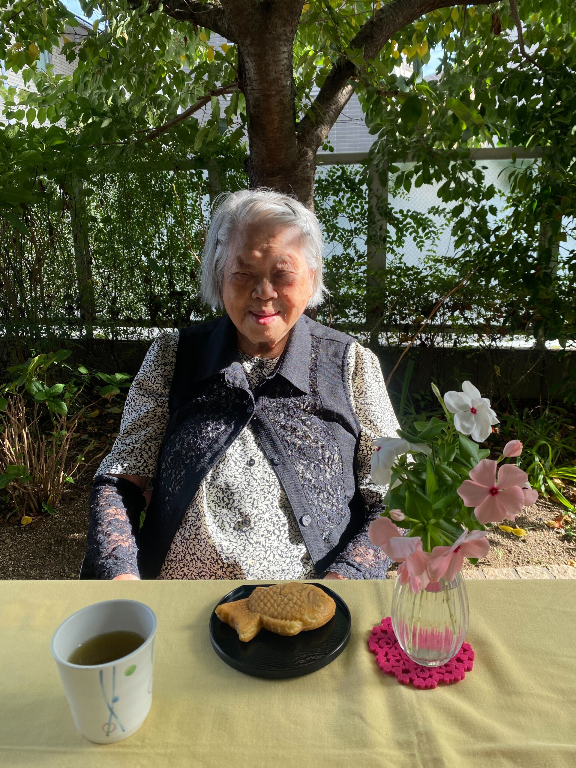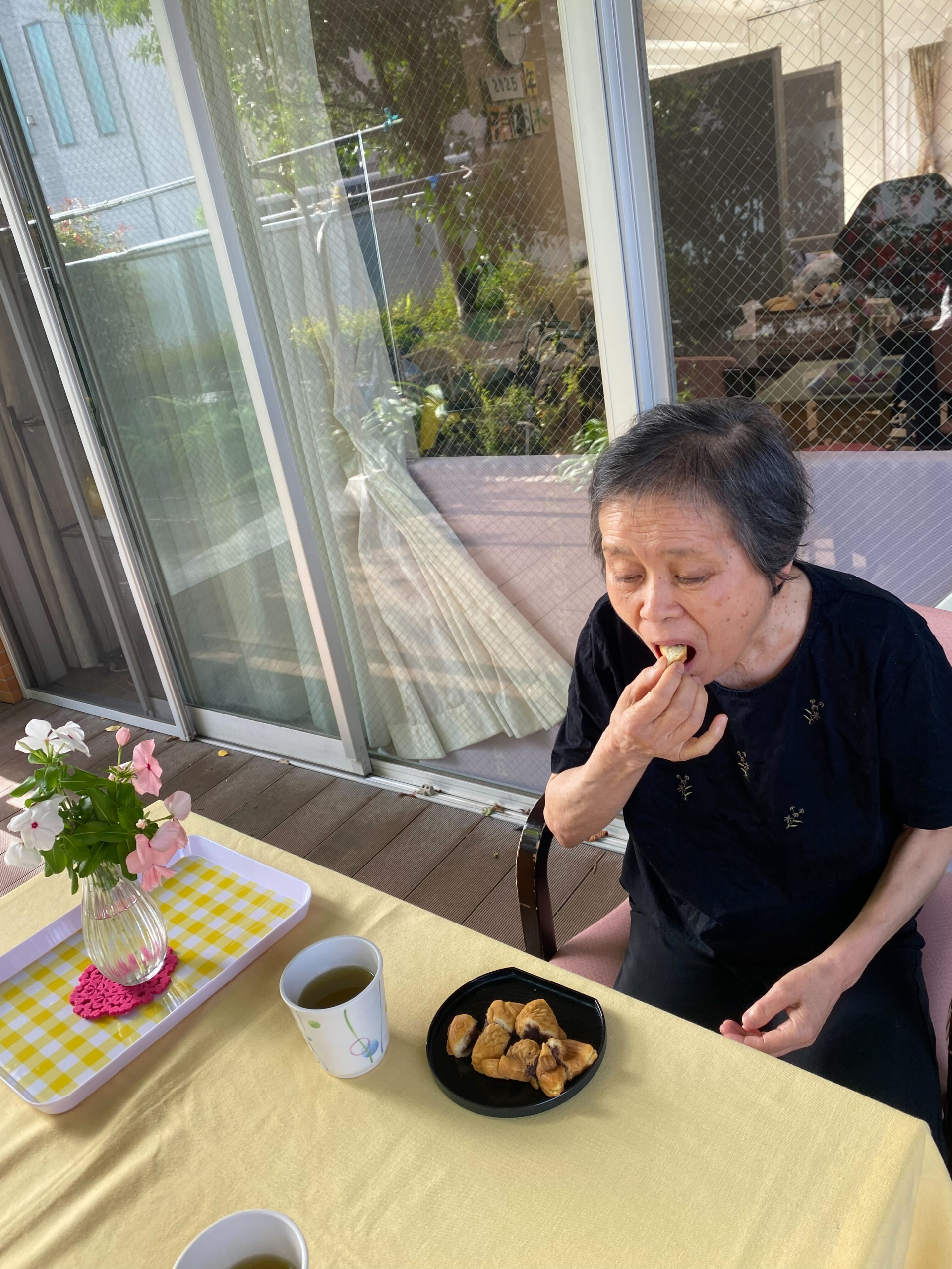 昨日も良い天気で、皆様と一緒にベランダへ出て、おやつを食べながら日光浴を楽しんで頂きました。