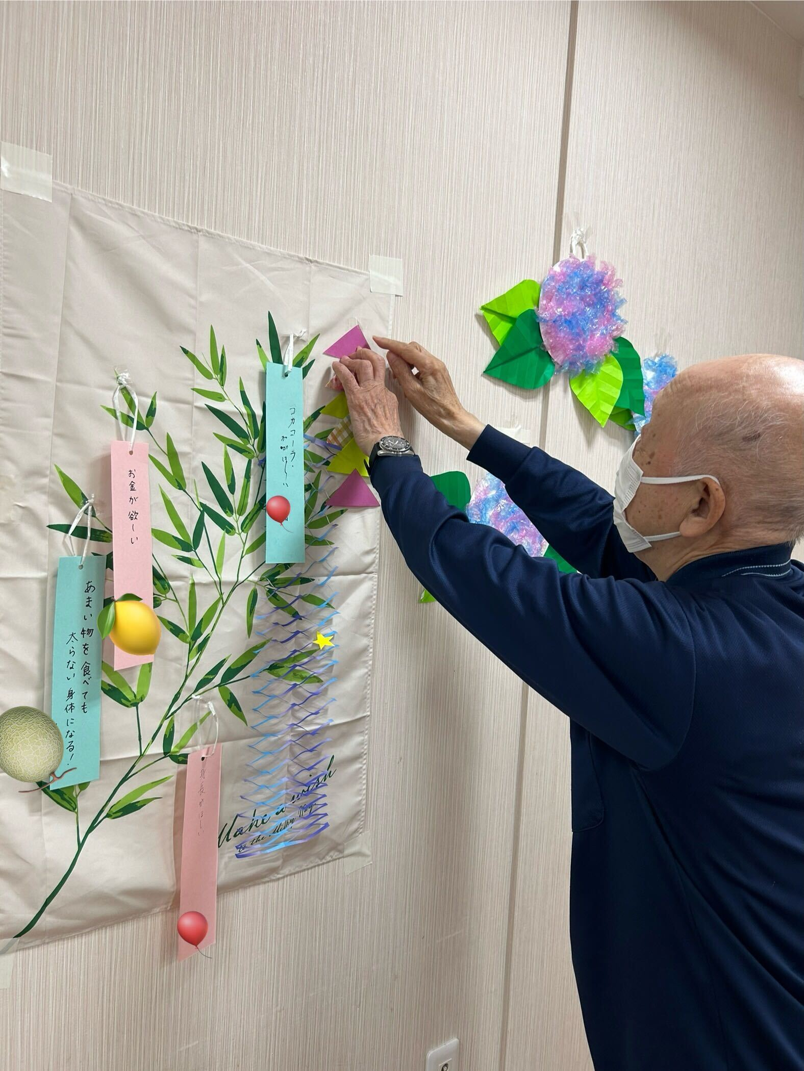 2024.06.25 活動報告(IN) 七夕☆彡 Tweet シェアする 七夕が近いので、七夕の飾り作りと短冊を書いていただきました! 短冊は、書ける入居者様には書いていただいています 短冊、飾りを笹の葉に付けていただきました♪ 願い事が叶うと良いですね☆ 本間 前の記事 2024.06.25 活動報告(IN) 美味しいご飯 次の記事 2024.06.25 活動報告(IN) お掃除 一覧へ戻る