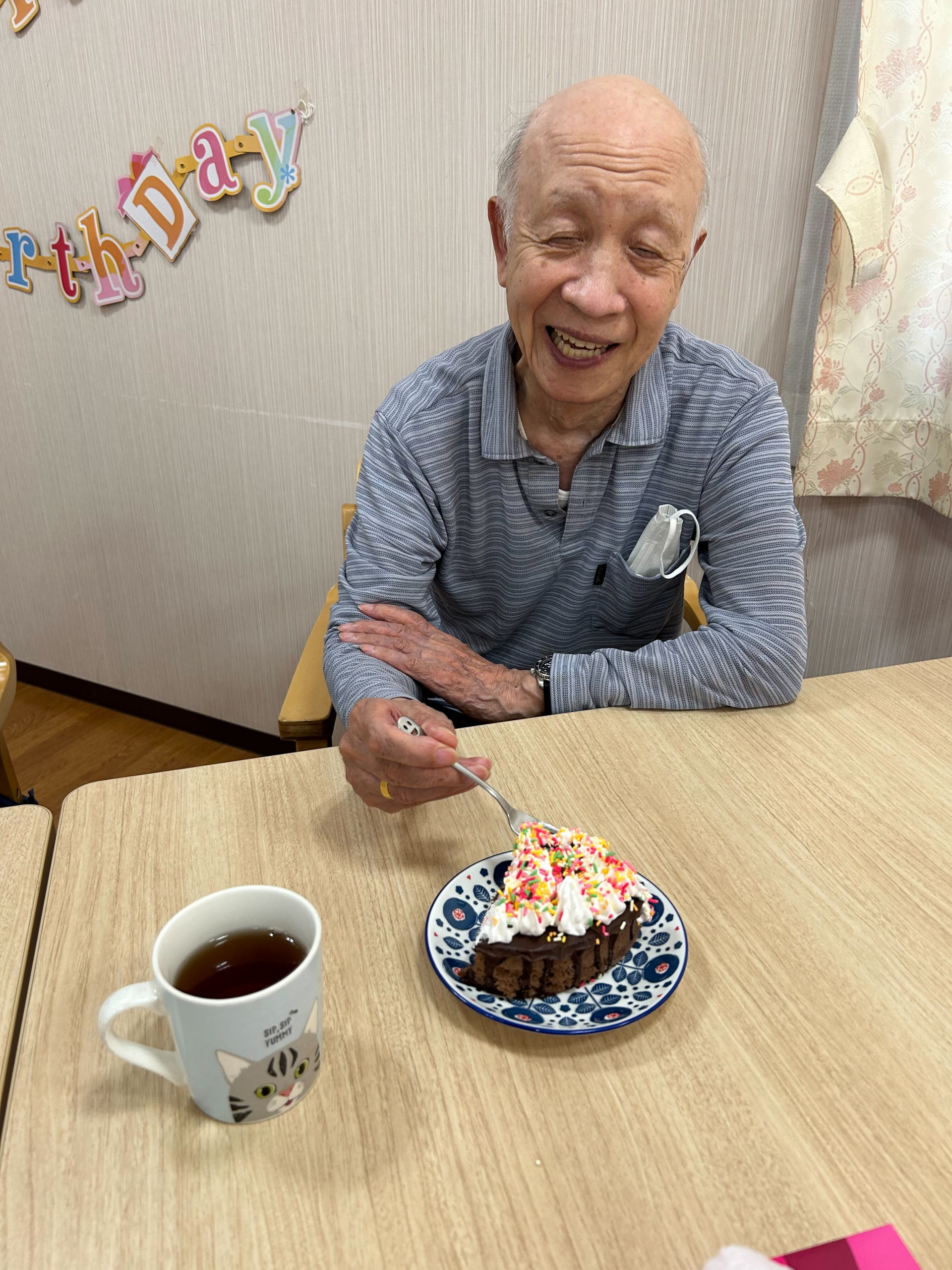 皆さんで、ケーキを食べてお祝いしました!