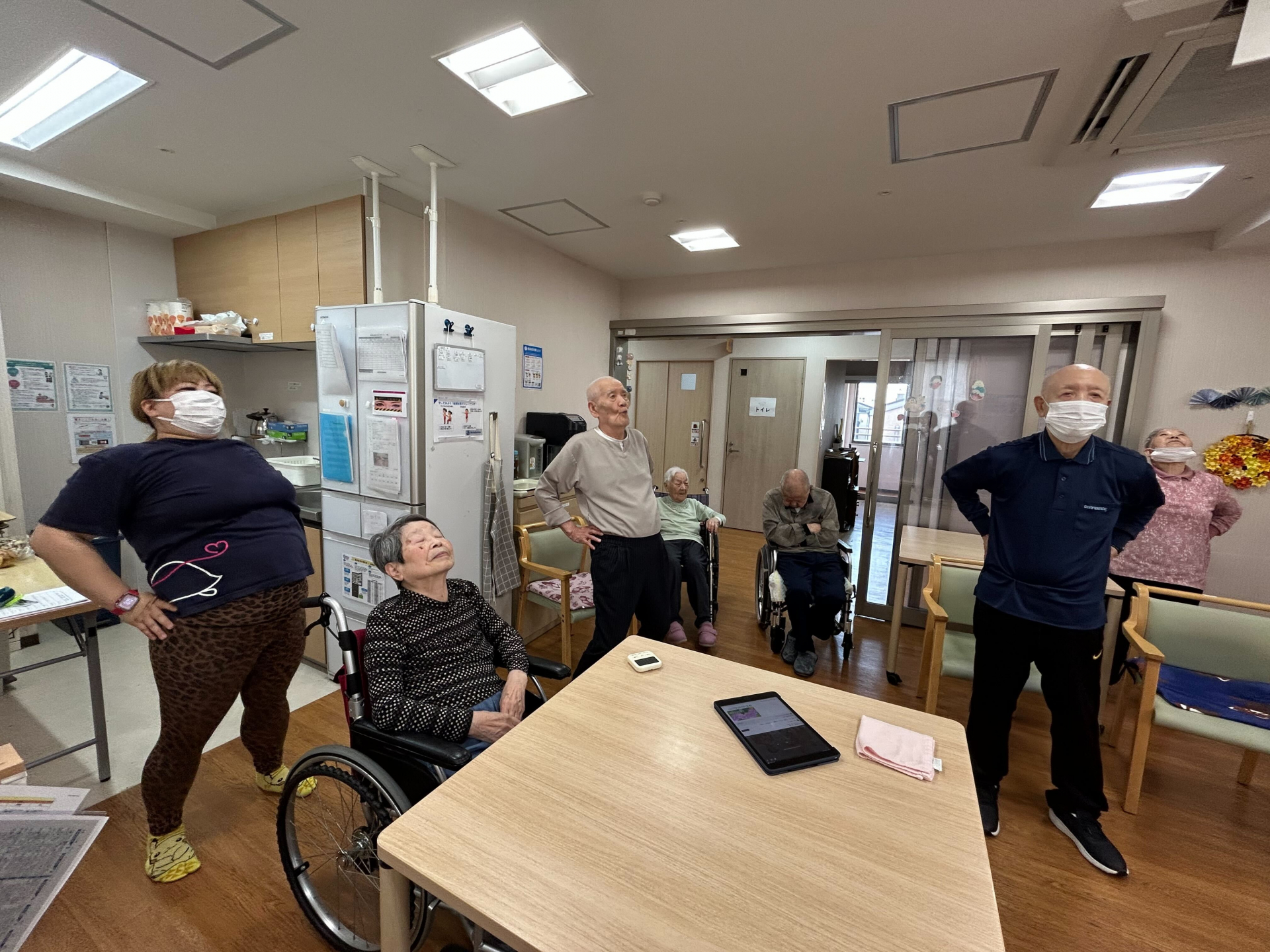本日は、3階に4階の入居者様たちを招いて、朝活をしました!