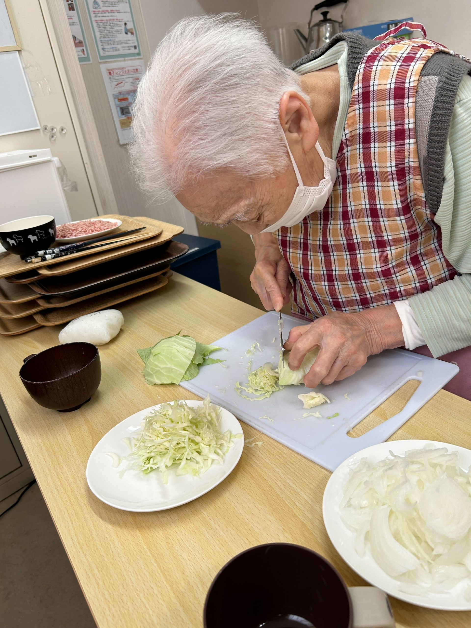 本日の昼食のメニュー、具だくさんの鶏だんごスープの材料を刻んでいただきました☆