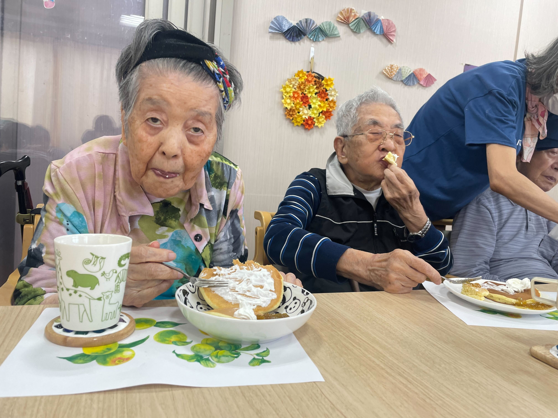 歌を歌った後は、梅シロップで作った梅ソーダと梅ジャム付きパンケーキを召し上がっていただきました♪