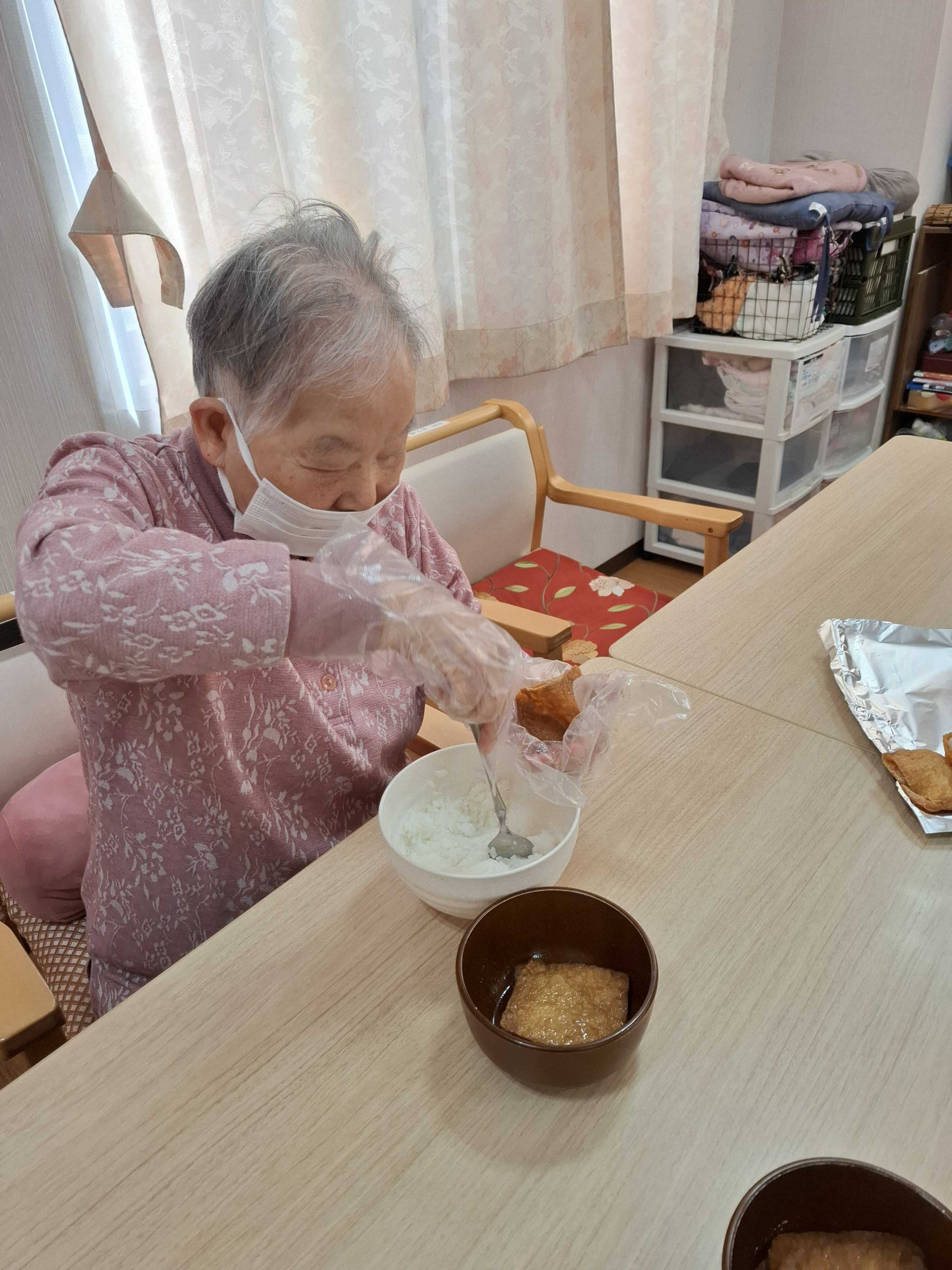 先日、3階の昼食でおいなりさんを提供しましたが、本日は4階でおいなりさんを提供しました!