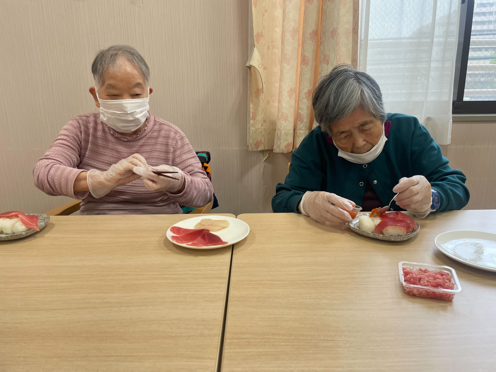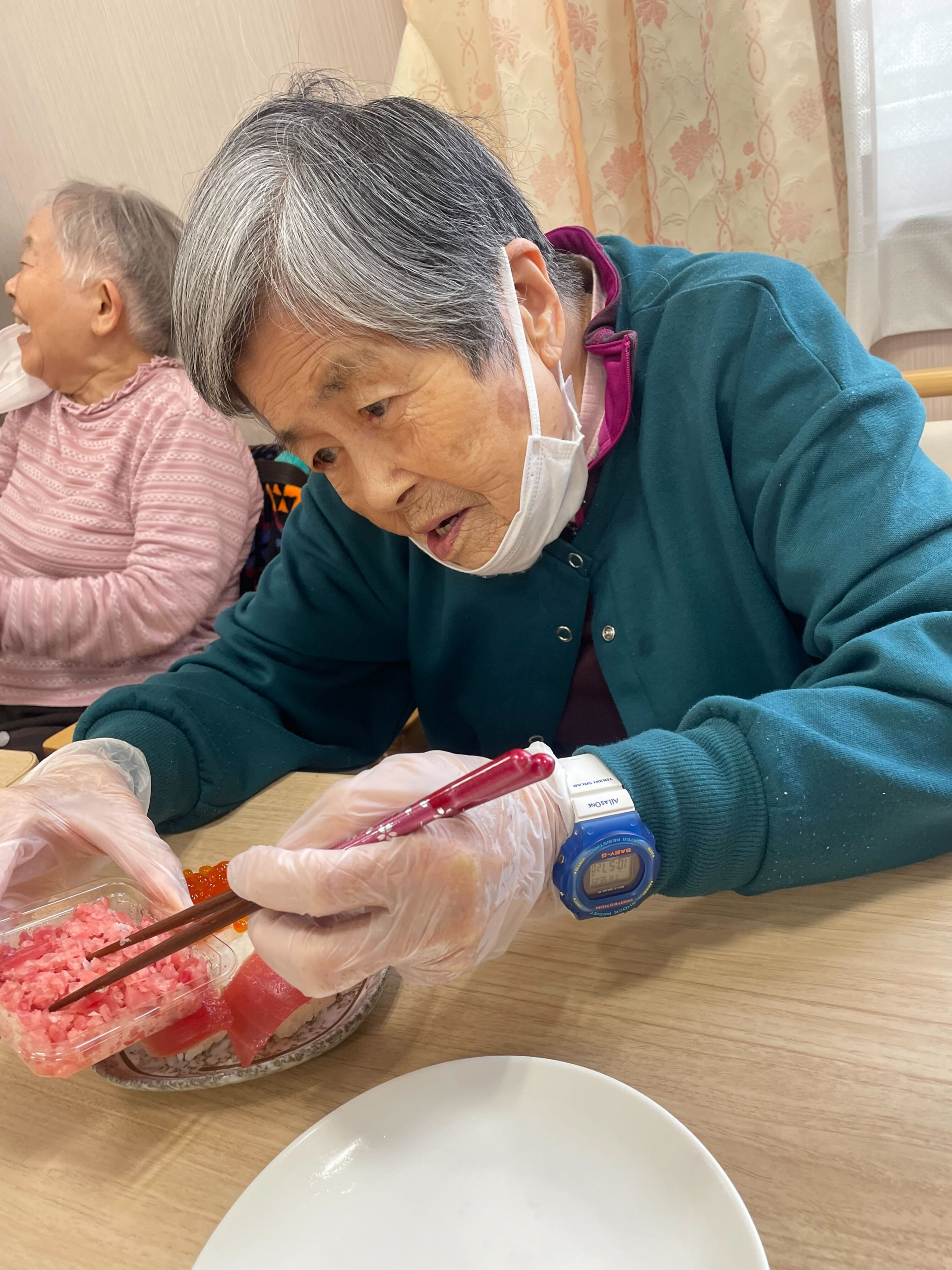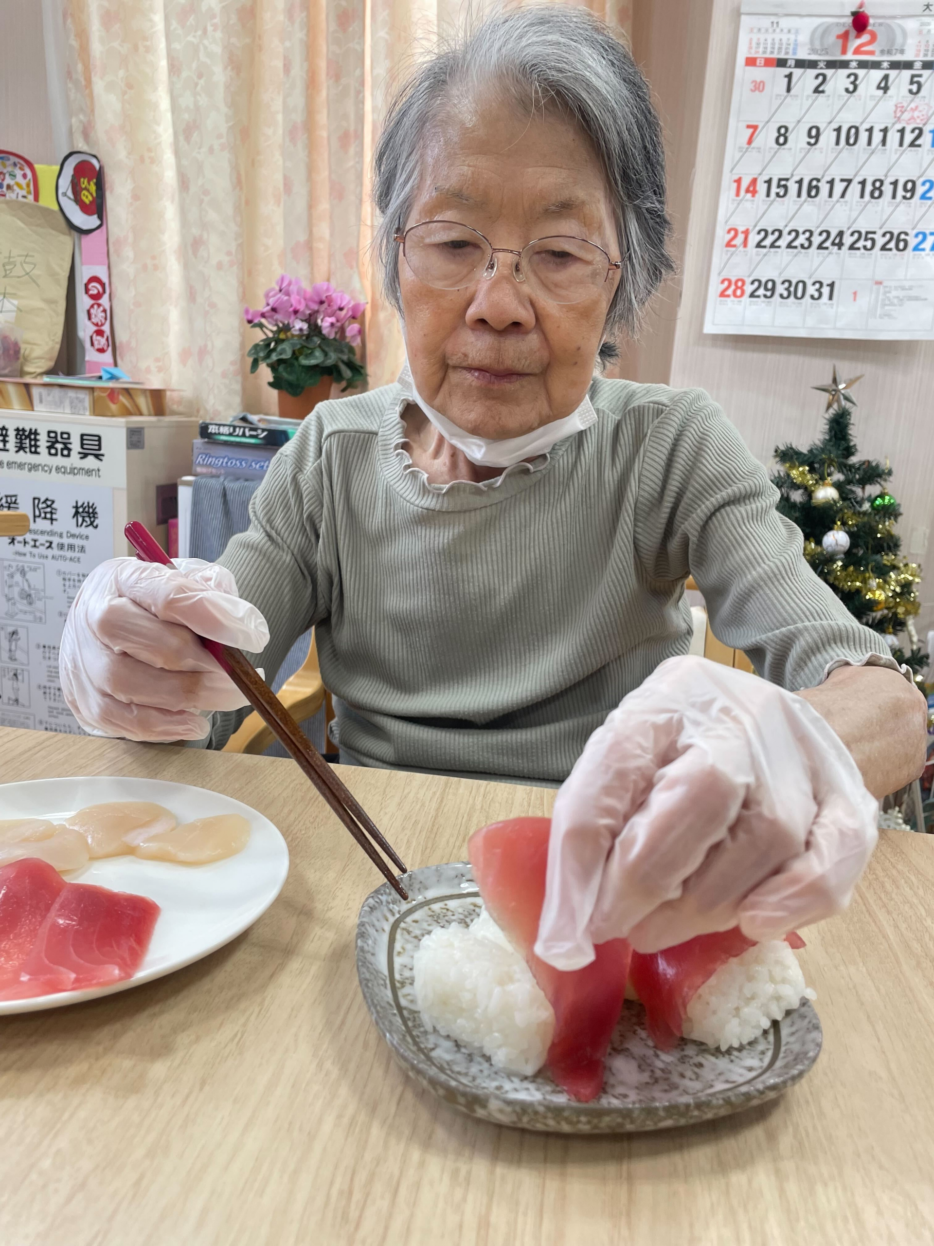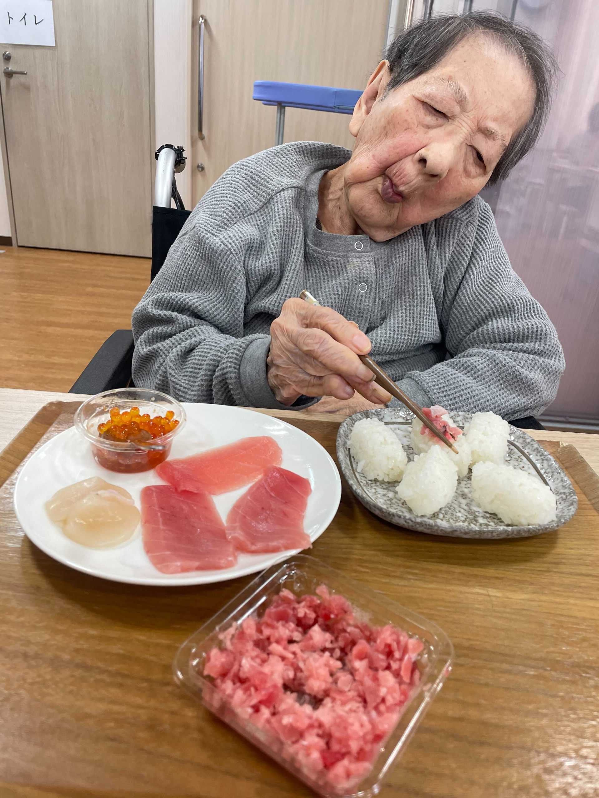 お寿司は入居者様に、ご自身の分は握っていただいています♪