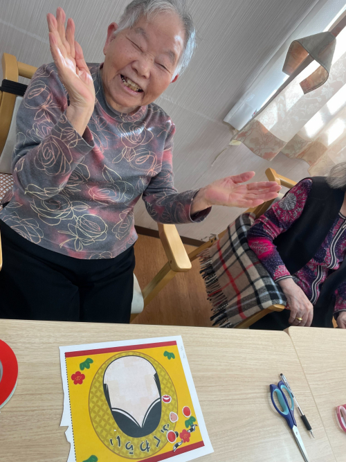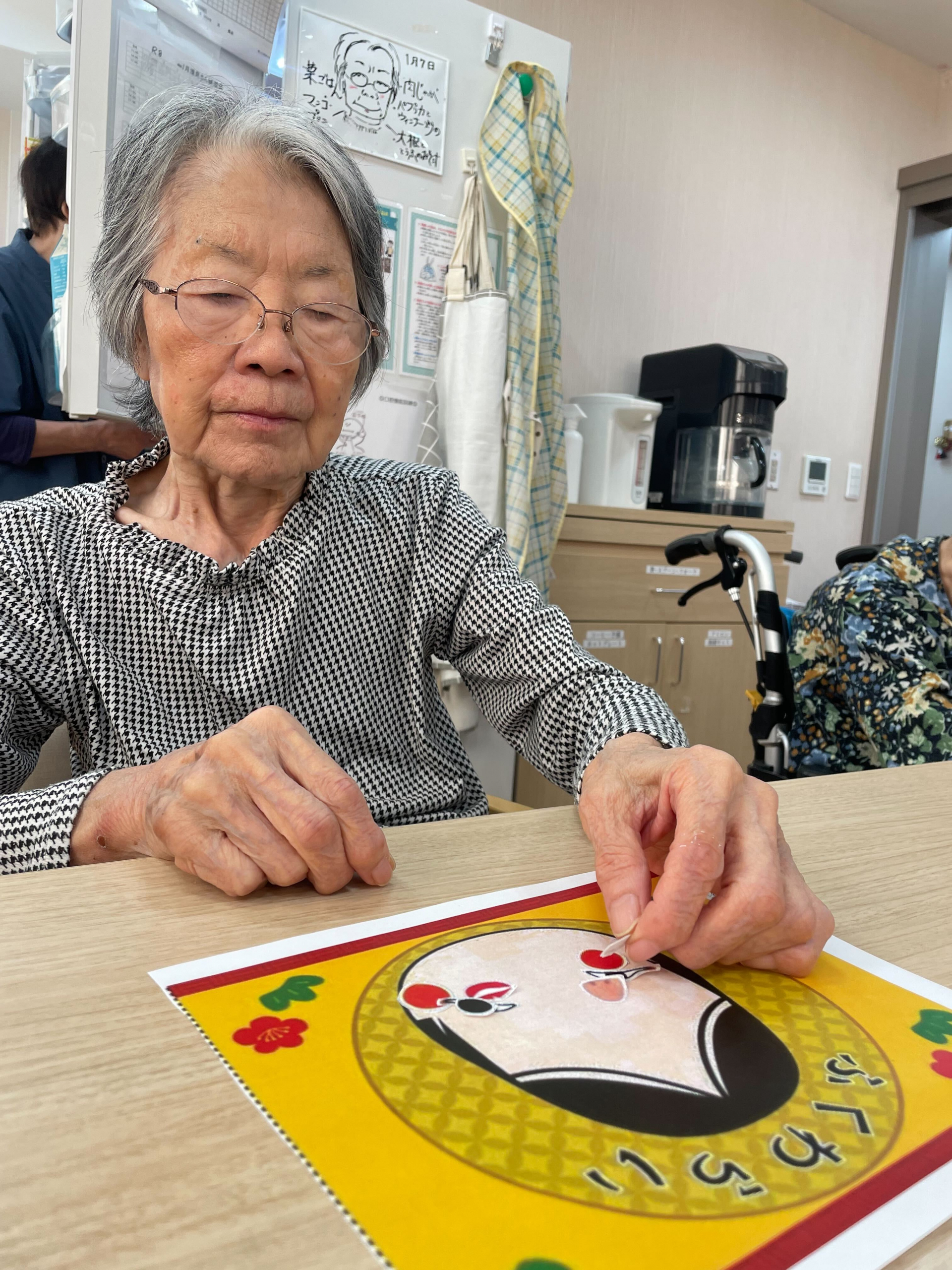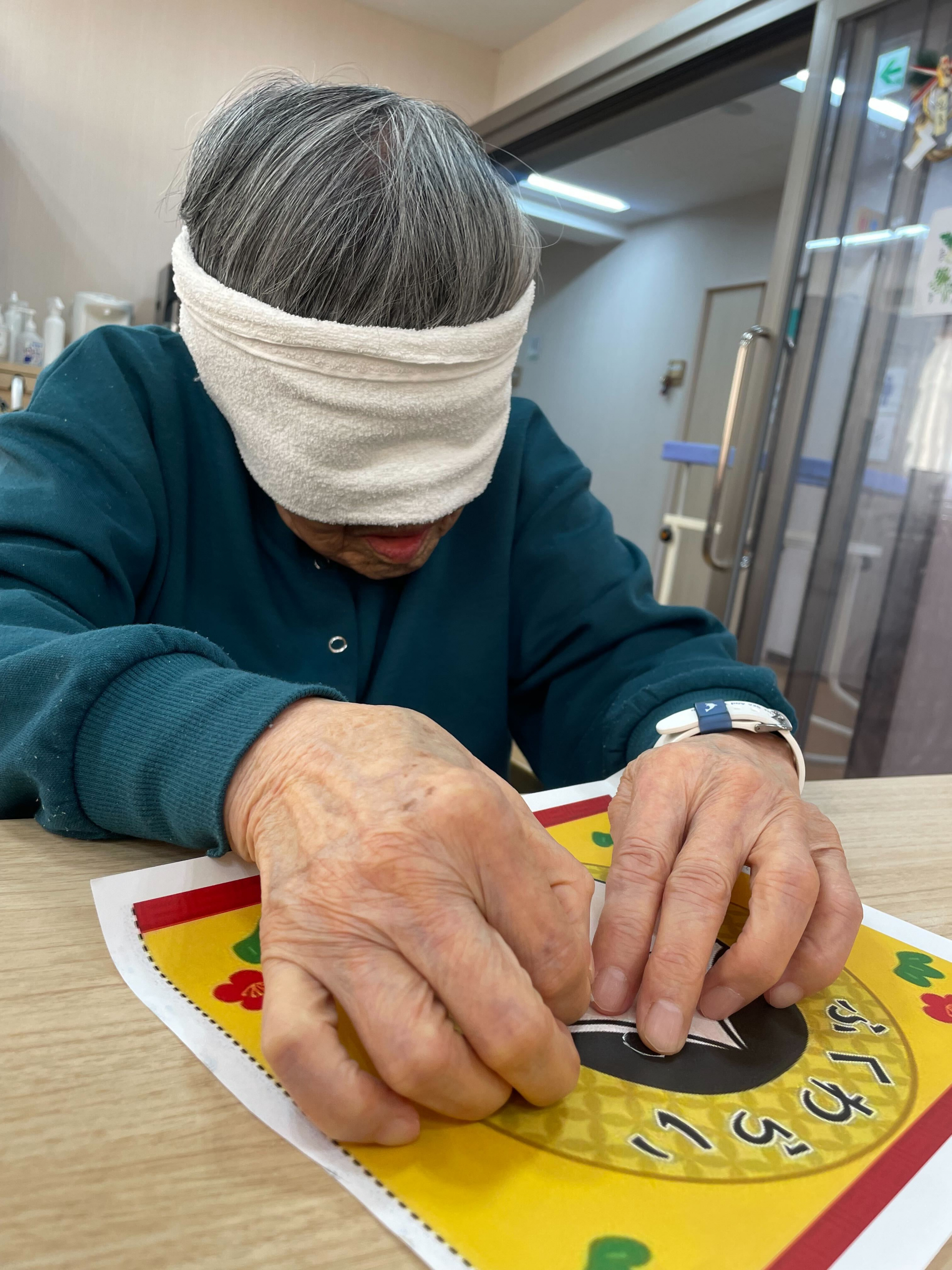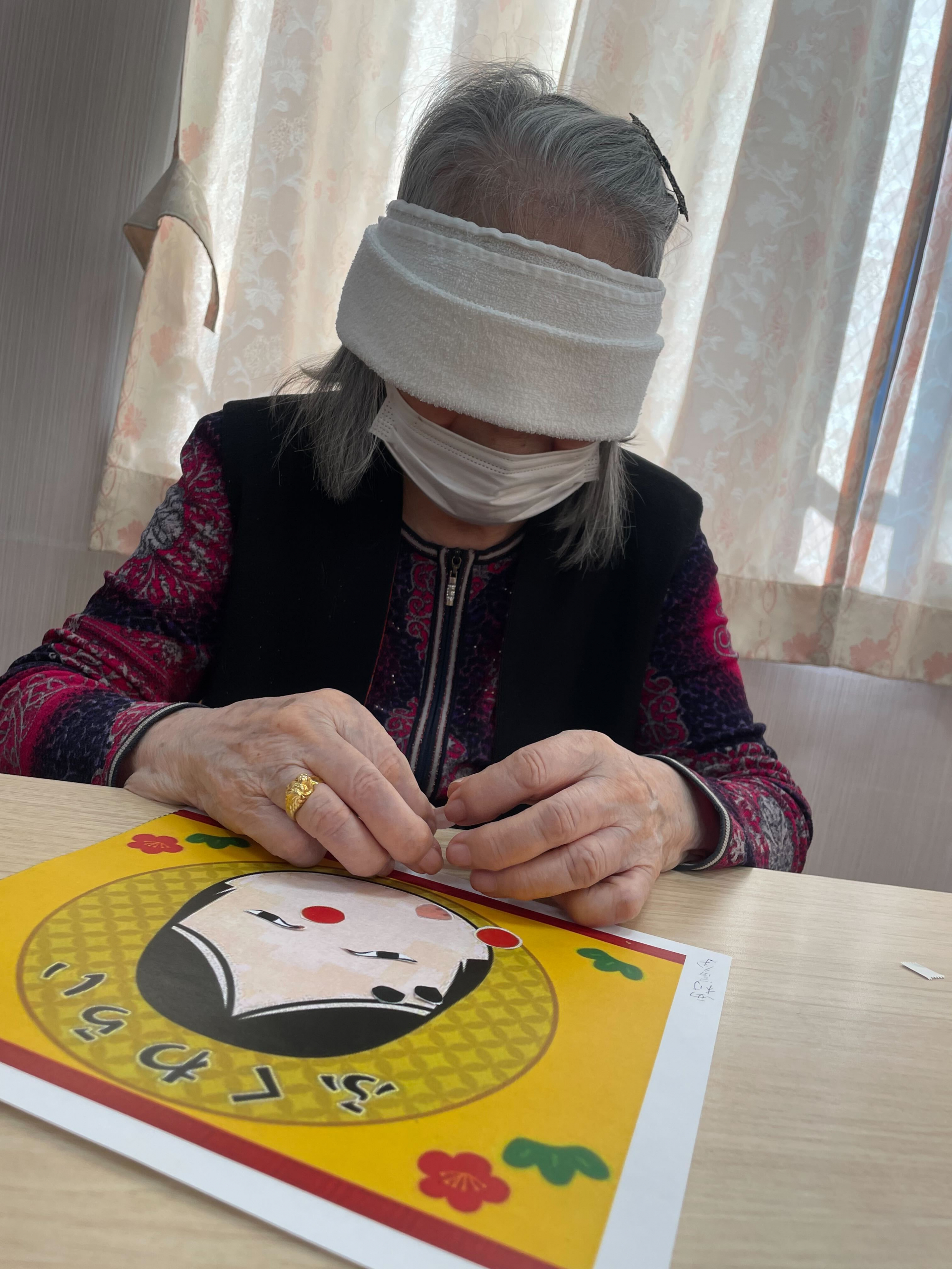 お正月の遊びと言えば、たこ上げや羽根つきなどの遊びがありますが、本日は屋内でも遊べる遊び、福笑いを行いました♪