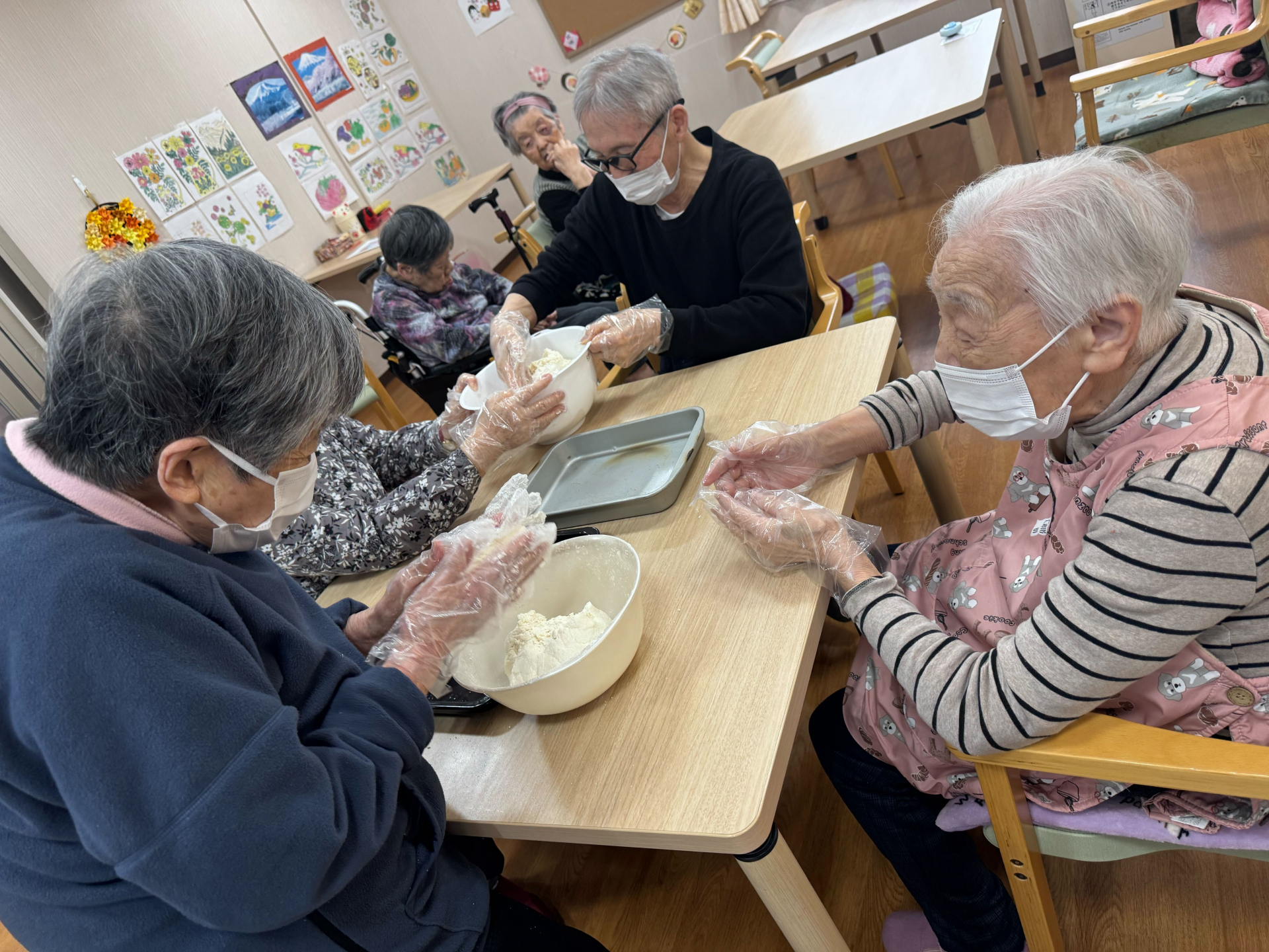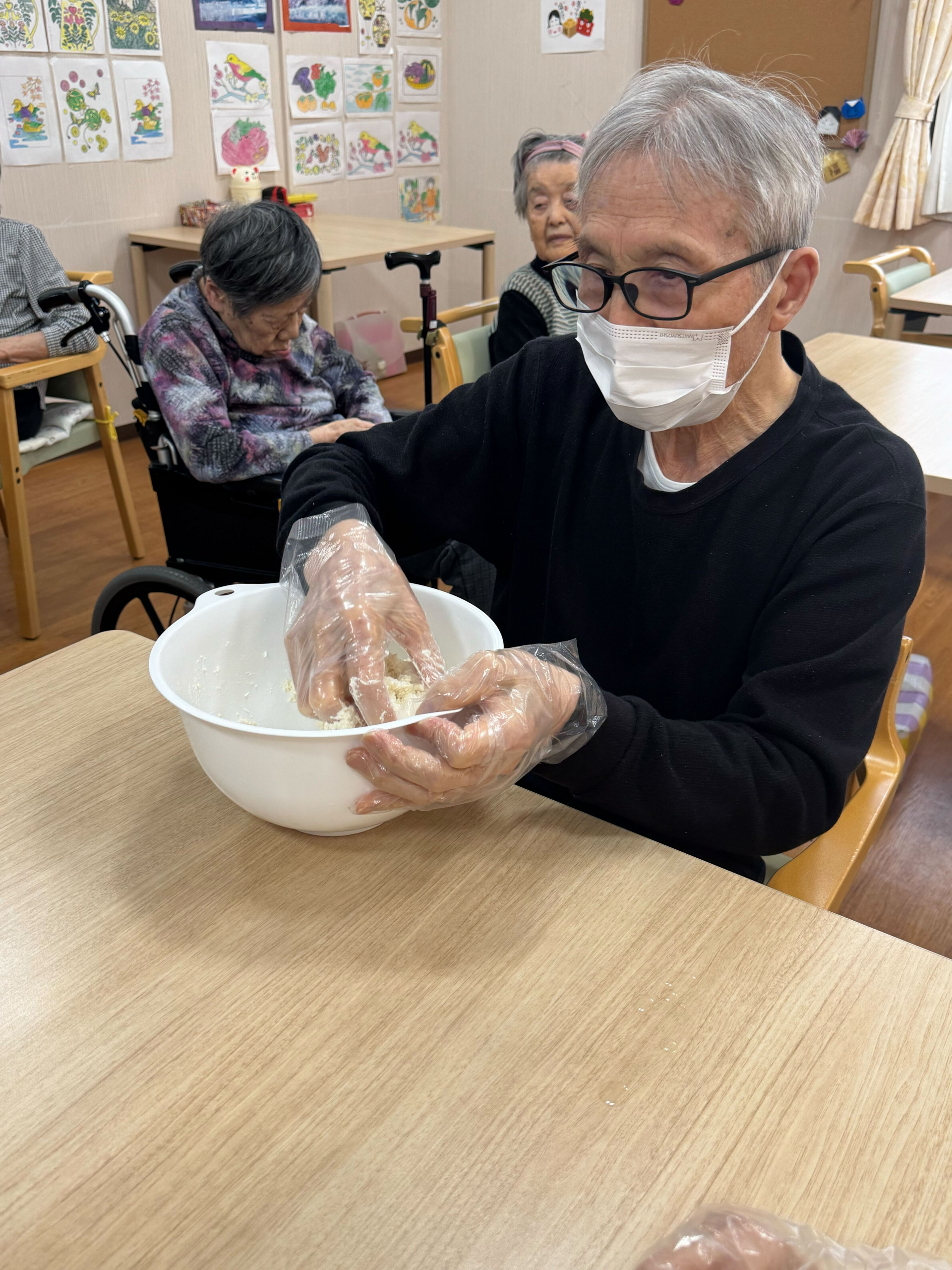 本日は、料理が得意な方々には3階で白玉作りを行っていただき、4階ではレクリエーションを楽しみました♪