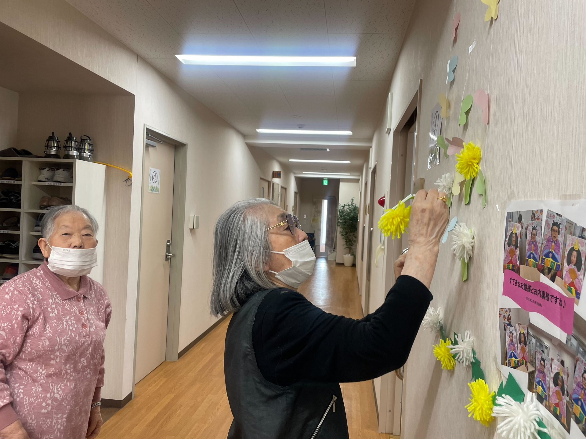 その後はたんぽぽ作りをして、エレベーター前の壁に貼ってます♪