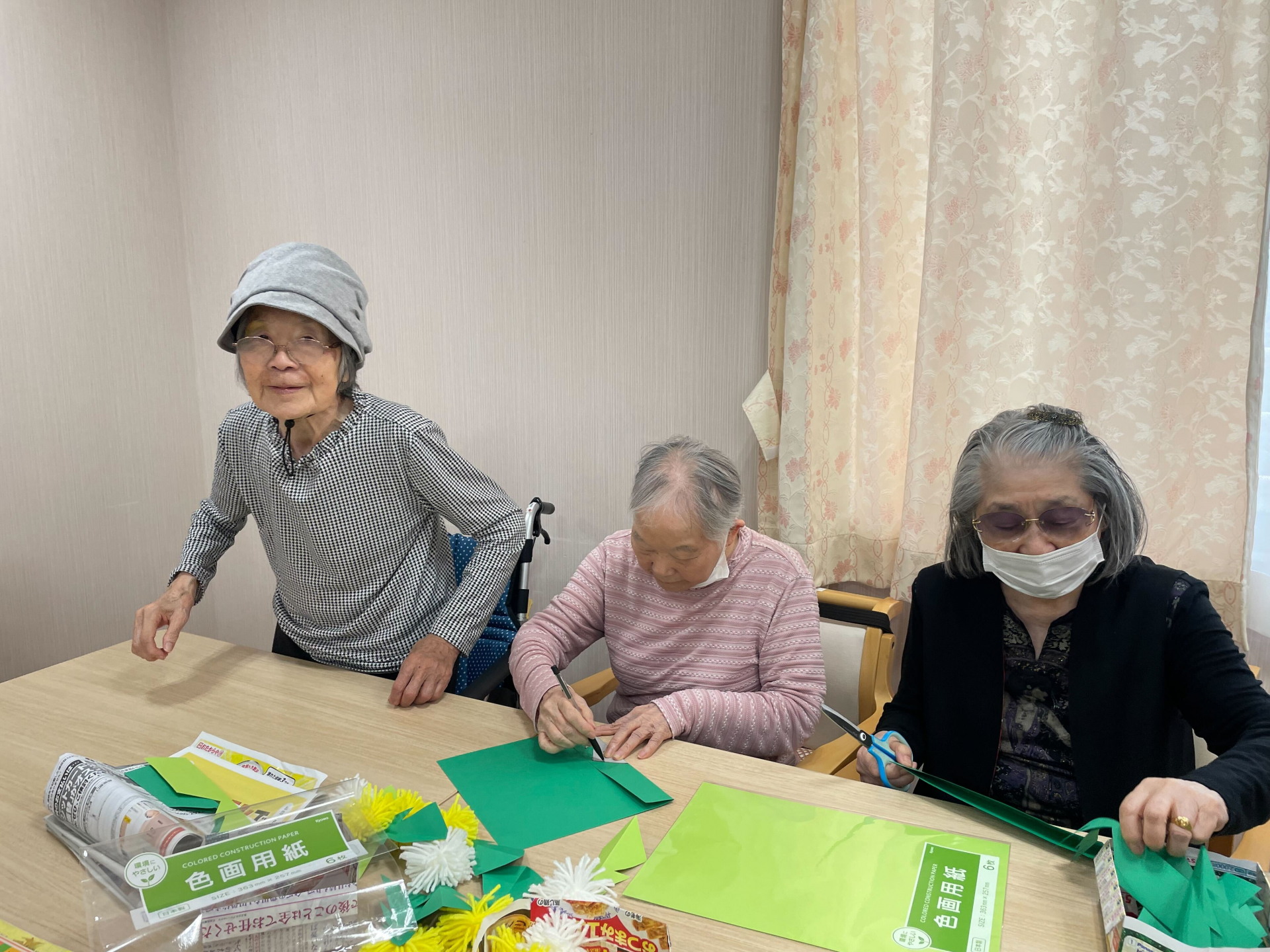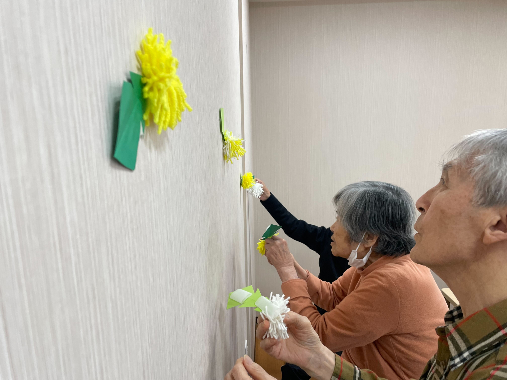 本日は、共有スペースにも春を感じさせる装飾を作りました!