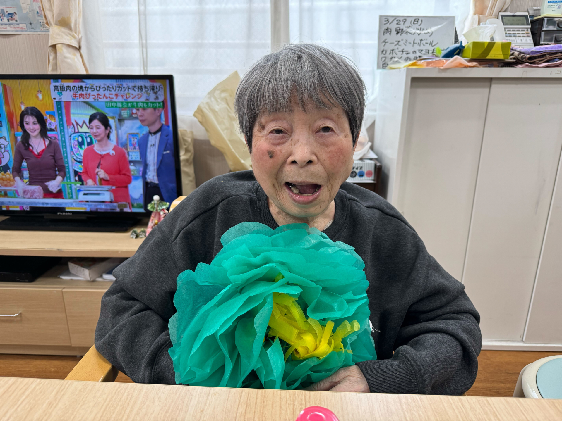 2026.04.02 活動報告(IN) お花飾り作り② 3階 Tweet シェアする 完成したお花飾りを壁に飾りました♪ 皆さん、「きれい」「かわいい」と喜んでくださりました♪ 優っくりグループホーム江東北砂 浅見 前の記事 2026.04.03 活動報告(IN) 本日のお散歩 3階編 次の記事 2026.04.02 活動報告(IN) お花飾り作り① 3階 一覧へ戻る
