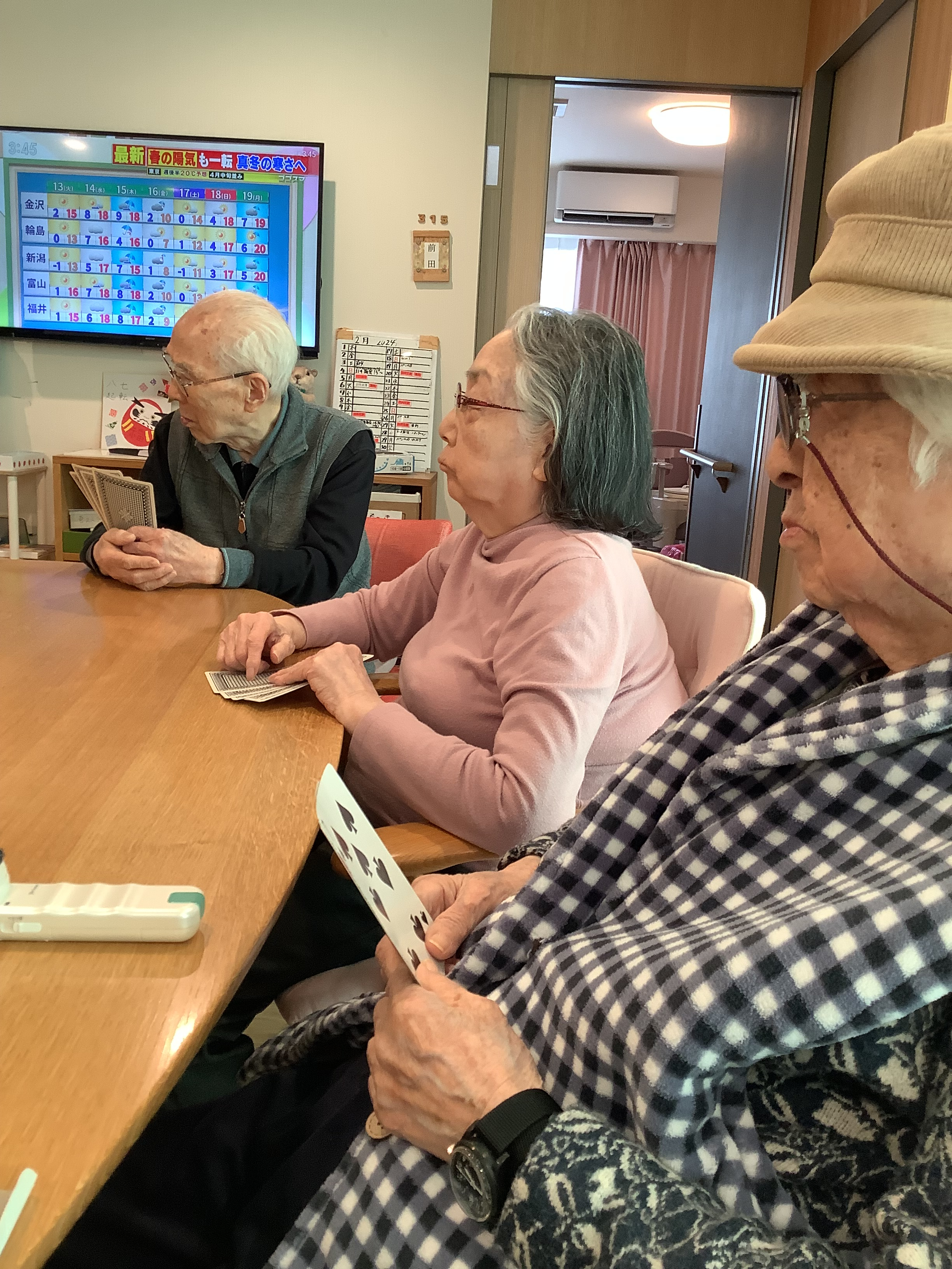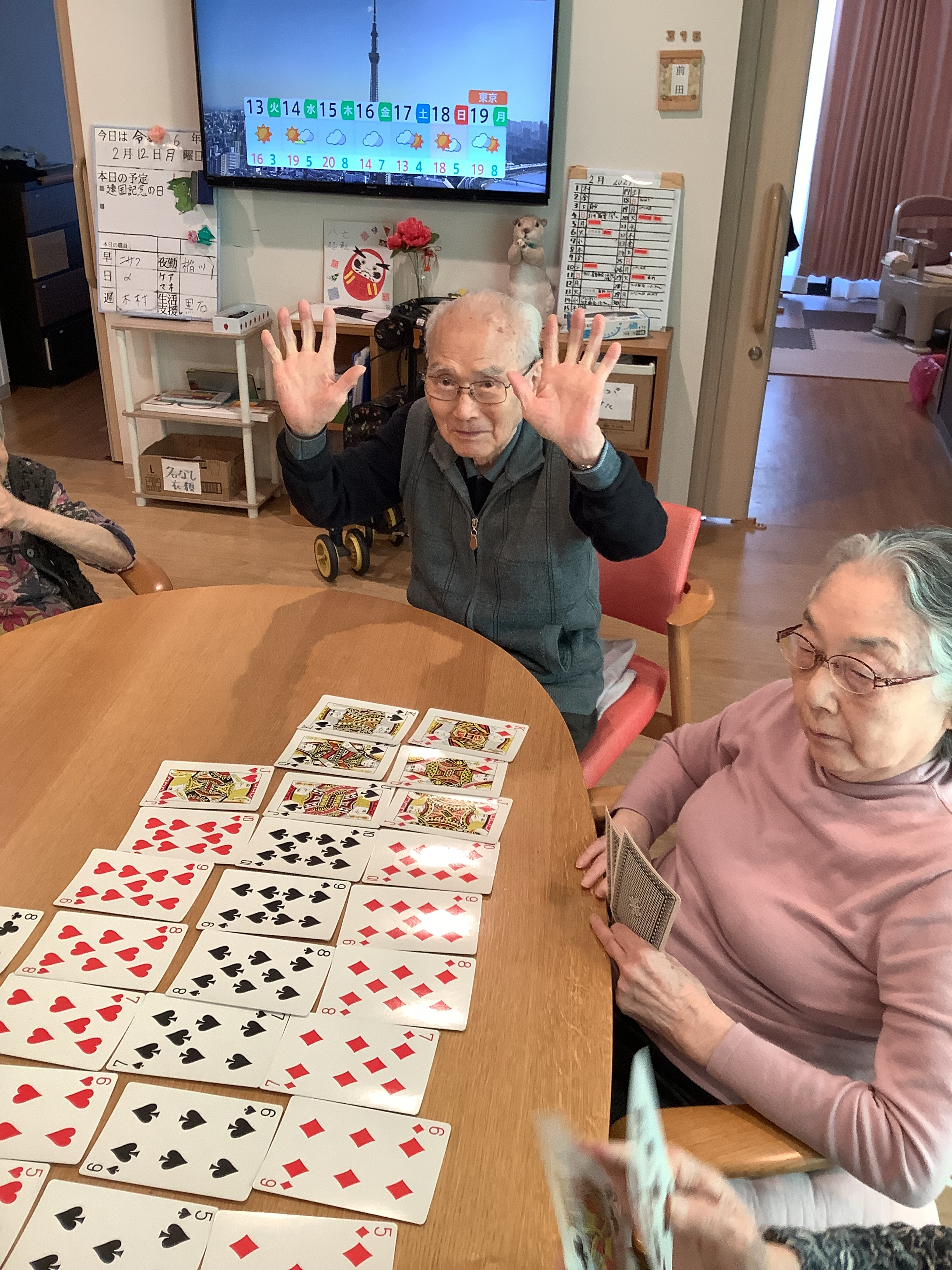 2024.02.12 活動報告 ☆WEST☆ トランプタイム♬ Tweet シェアする 夕食前にトランプで一勝負‼ 七ならべは皆様大好き(⋈◍>◡<◍)。✧♡ M様が一番最初に上がり~(^^♪ 2番はI様~(#^^#) 楽しい時間を過ごされました♬ きむら 前の記事 2024.02.13 活動報告 今日も元気です。WEST 次の記事 2024.02.12 活動報告 ☆WEST☆ ゴミ箱つくり 一覧へ戻る