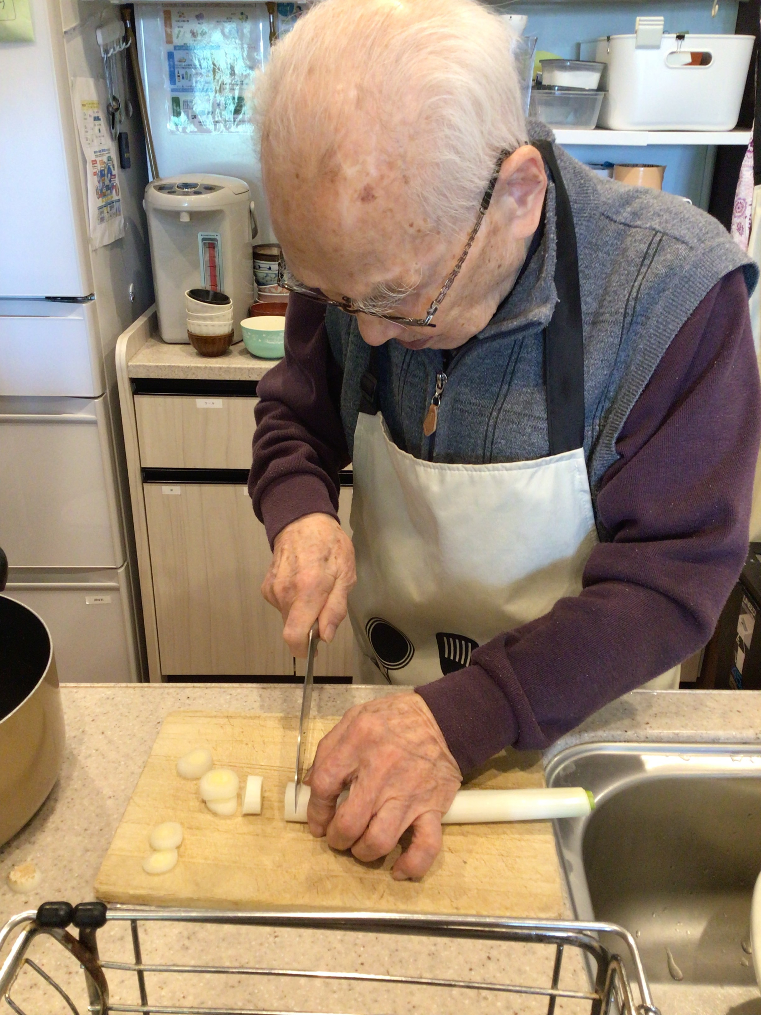 今日は男の料理。夕飯の支度はI様が。エプロンもお似合いです。 秋羽