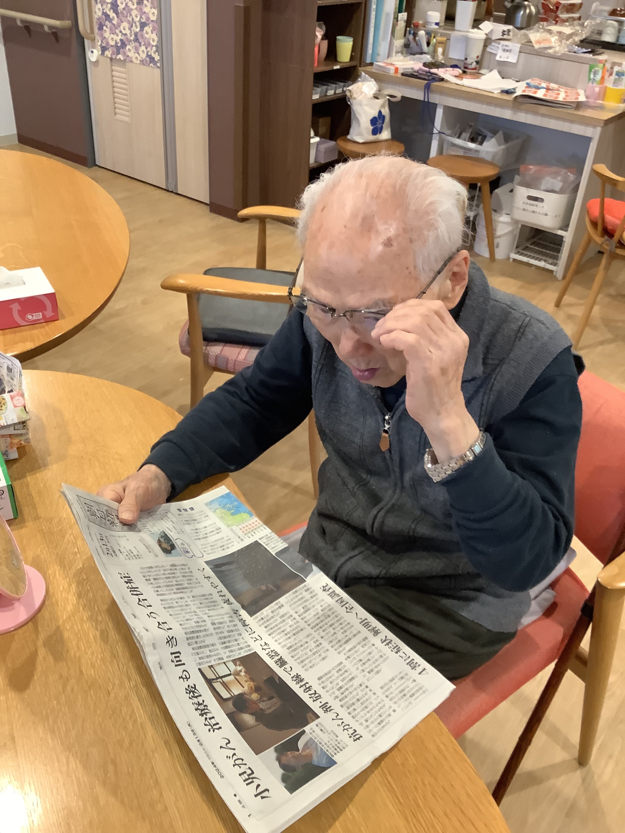 2024.02.15 活動報告 ☆WEST☆ 14日のご様子 Tweet シェアする 2月14日のご様子になります。。 いつもの光景ですね(#^^#) 気になる記事があるようです。。 レクの準備中・・ お昼前の体操・・1・2・1・2 きむら 前の記事 2024.02.15 活動報告 ☆WEST☆ バレンタイン(⋈◍>◡<◍)。✧♡① 次の記事 2024.02.13 活動報告 今日も元気です。WEST 一覧へ戻る
