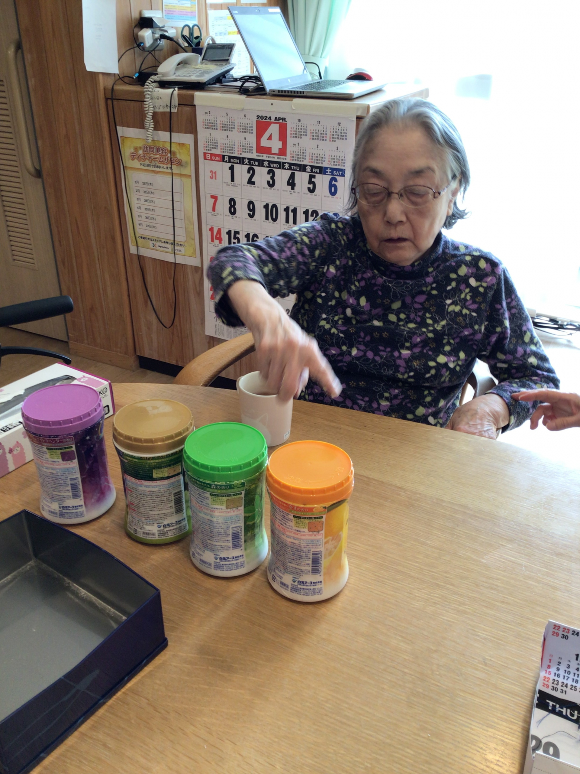 2024.04.02 活動報告 ☆彡ゆっくり温泉☆彡 Tweet シェアする 今日から3日間温泉の日。入浴剤を選んで頂きます。 さて何にしましょう。 N様はこちら。 K様は柚子湯に決定。さてゆっくりしてきてくださいね。 秋羽 前の記事 2024.04.02 活動報告 桜の塗り絵 ♡EAST♡ 次の記事 2024.04.02 活動報告 ☆彡WEST☆彡 今日も皆様お元気です。 一覧へ戻る