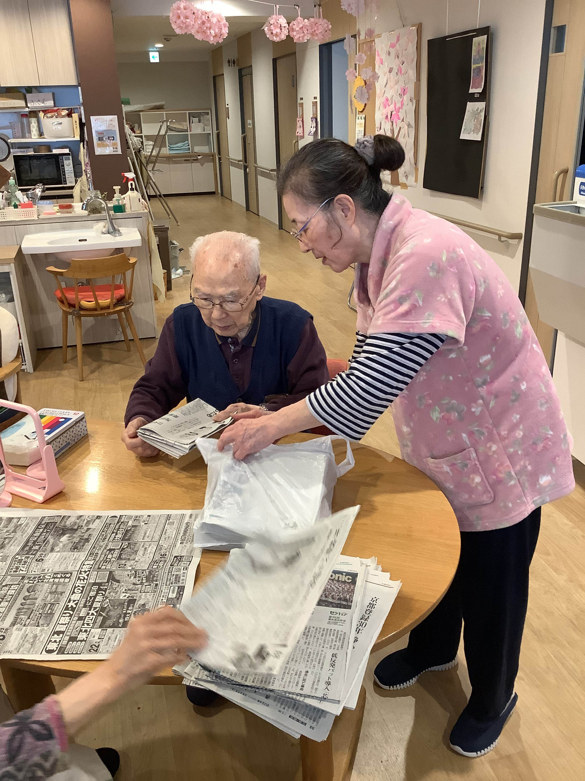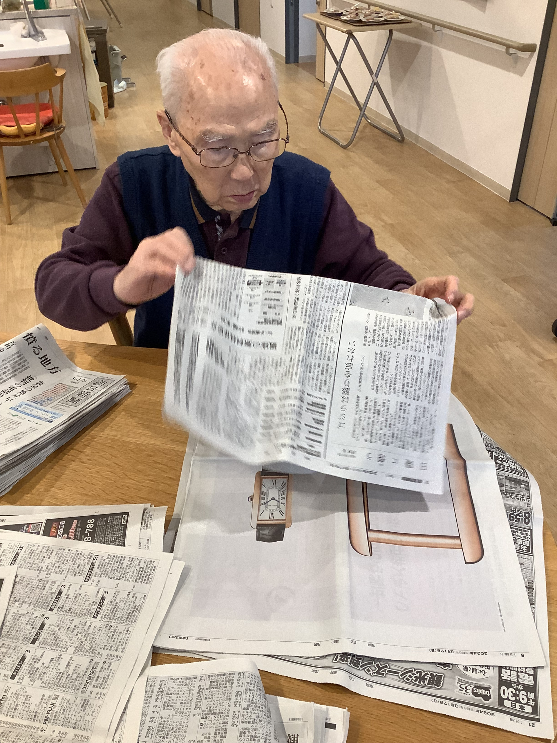 2024.04.10 活動報告 ☆WEST☆ みんなで畳めば Tweet シェアする いつもの光景ですね♬・・新聞畳み♬ しっかり端と端を合わせて・・ 新聞畳みは手先の運動になります(#^^#) 沢山畳んでくださりありがとうございます(^^♪ GH小日向 きむら 前の記事 2024.04.11 活動報告 10日のEASTフロアの様子 次の記事 2024.04.10 活動報告 ☆WEST☆ みんなで昼食準備 一覧へ戻る