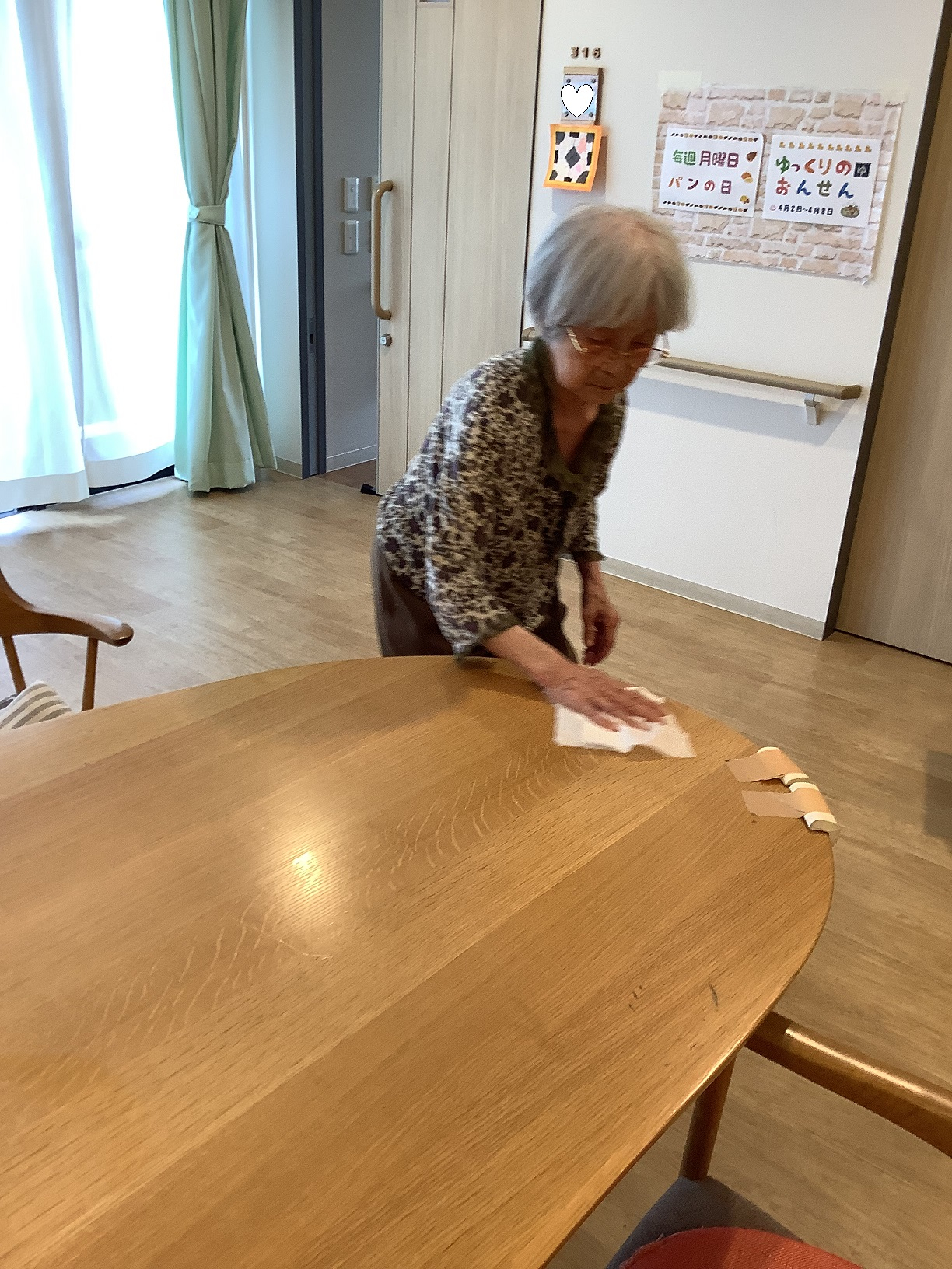 k様はお昼ご飯後テーブルの消毒をして頂きました!