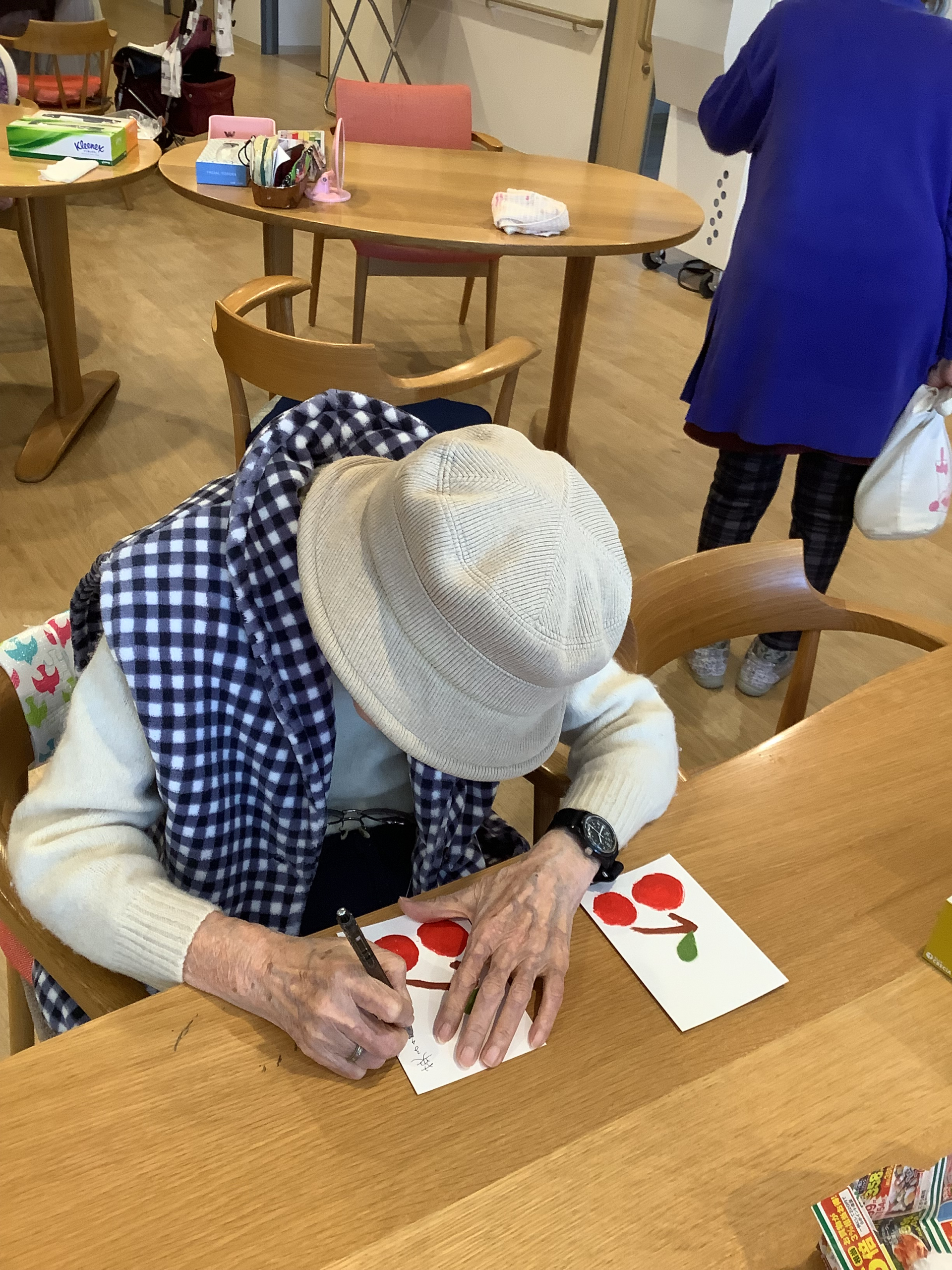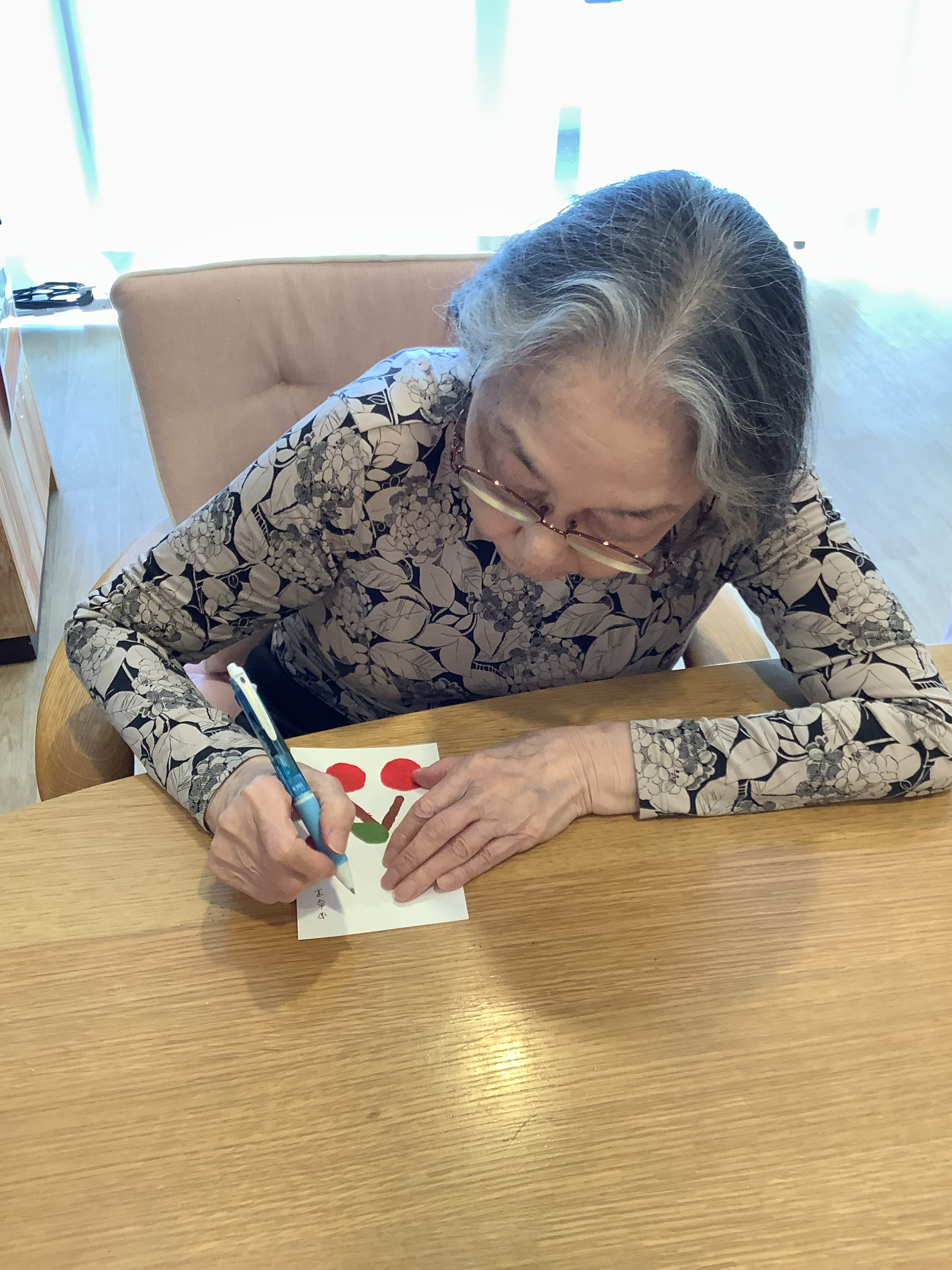 2024.04.27 活動報告 ☆WEST☆ 絵葉書② Tweet シェアする 絵の具が乾いたらフェルトの葉っぱを貼っていきます( *´艸`) その後は絵手紙に一言を。。 書き終わったら住所を書きます。 GH小日向 きむら 前の記事 2024.04.27 活動報告 ☆WEST☆ 絵手紙③ 次の記事 2024.04.27 活動報告 ☆WEST☆ 絵葉書① 一覧へ戻る
