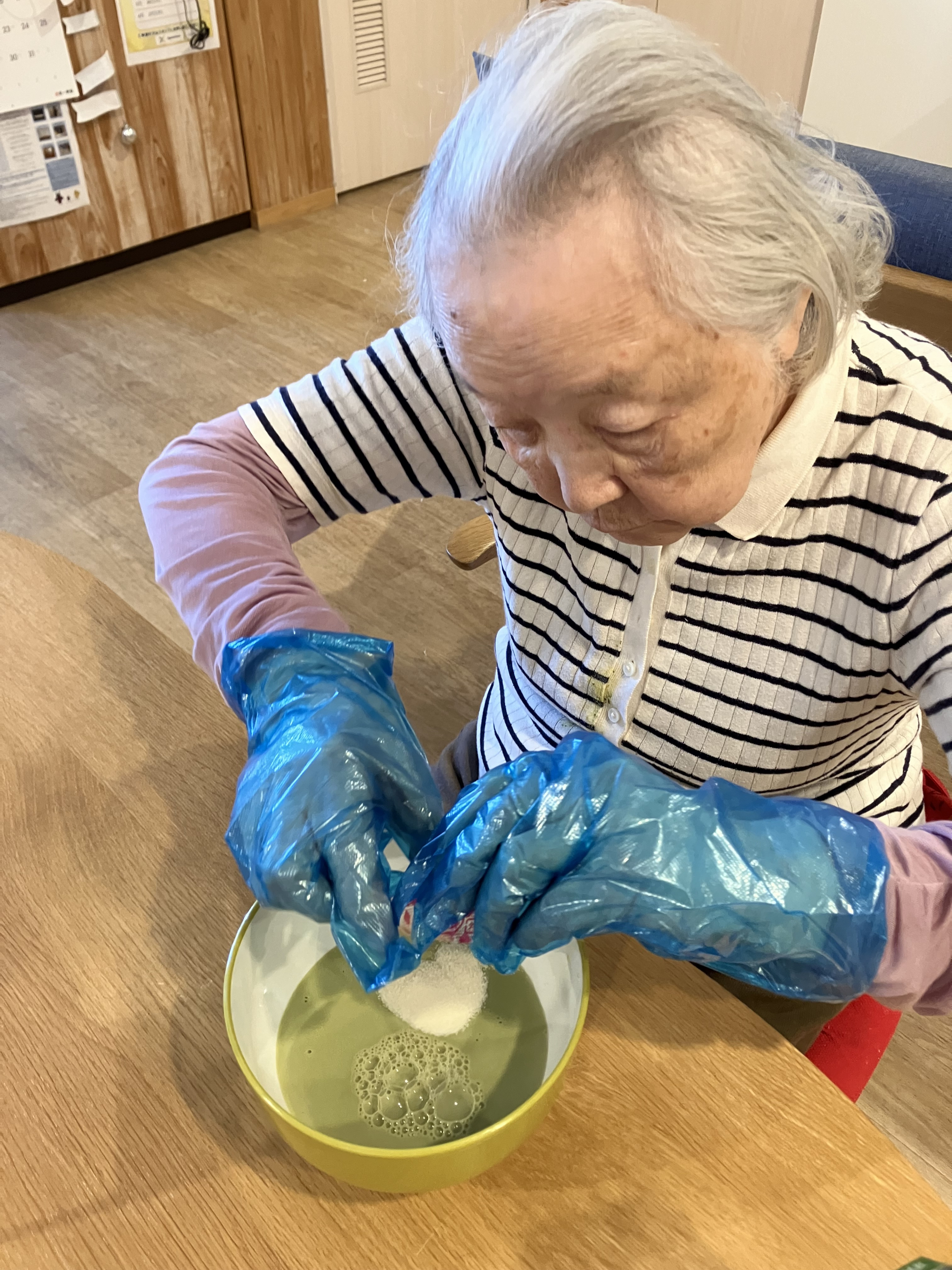 抹茶豆乳に、粉ゼラチンを混ぜまして、