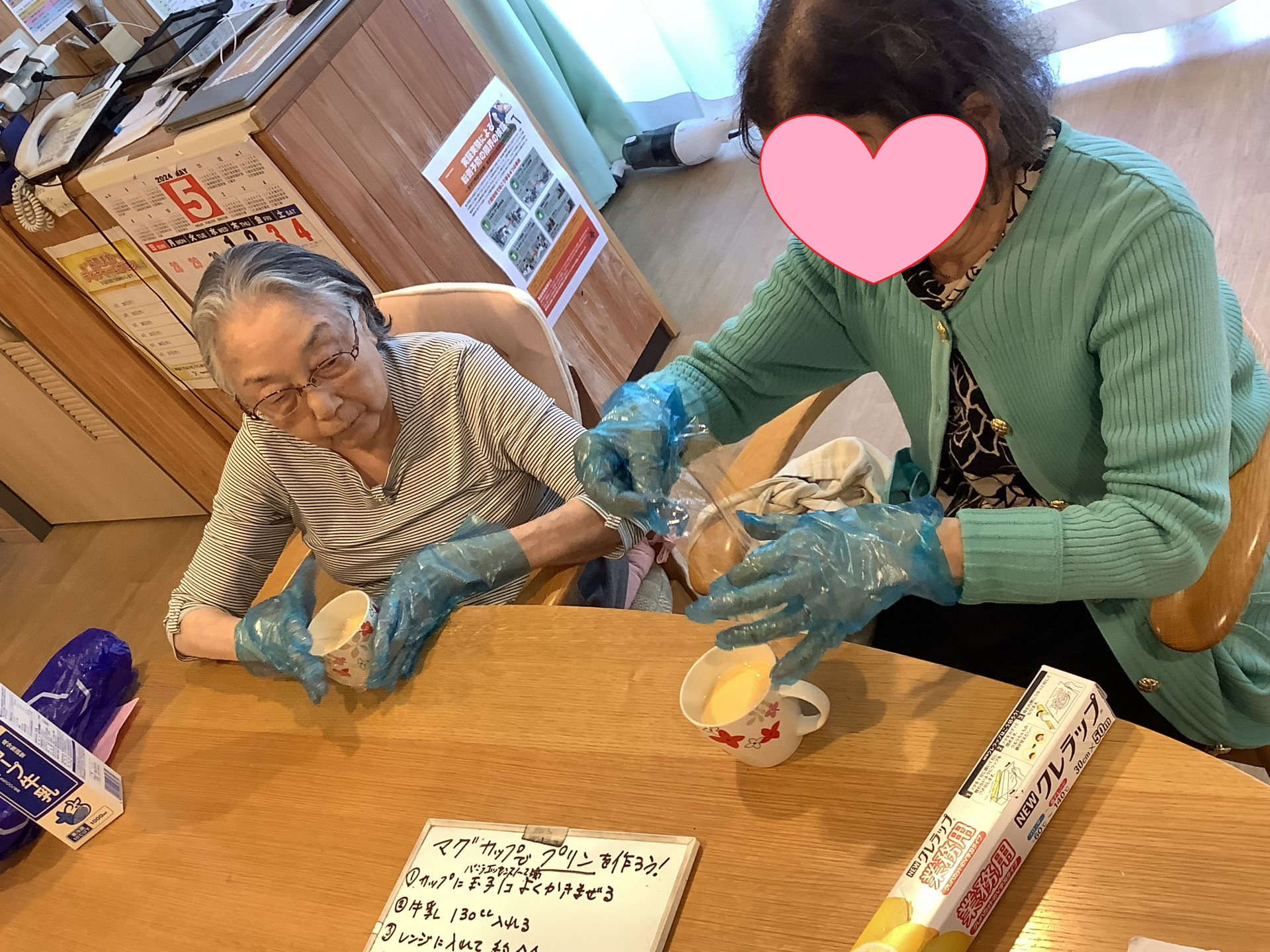 玉子と牛乳・バニラエッセンス・砂糖など入れて混ぜていきます( *´艸`)