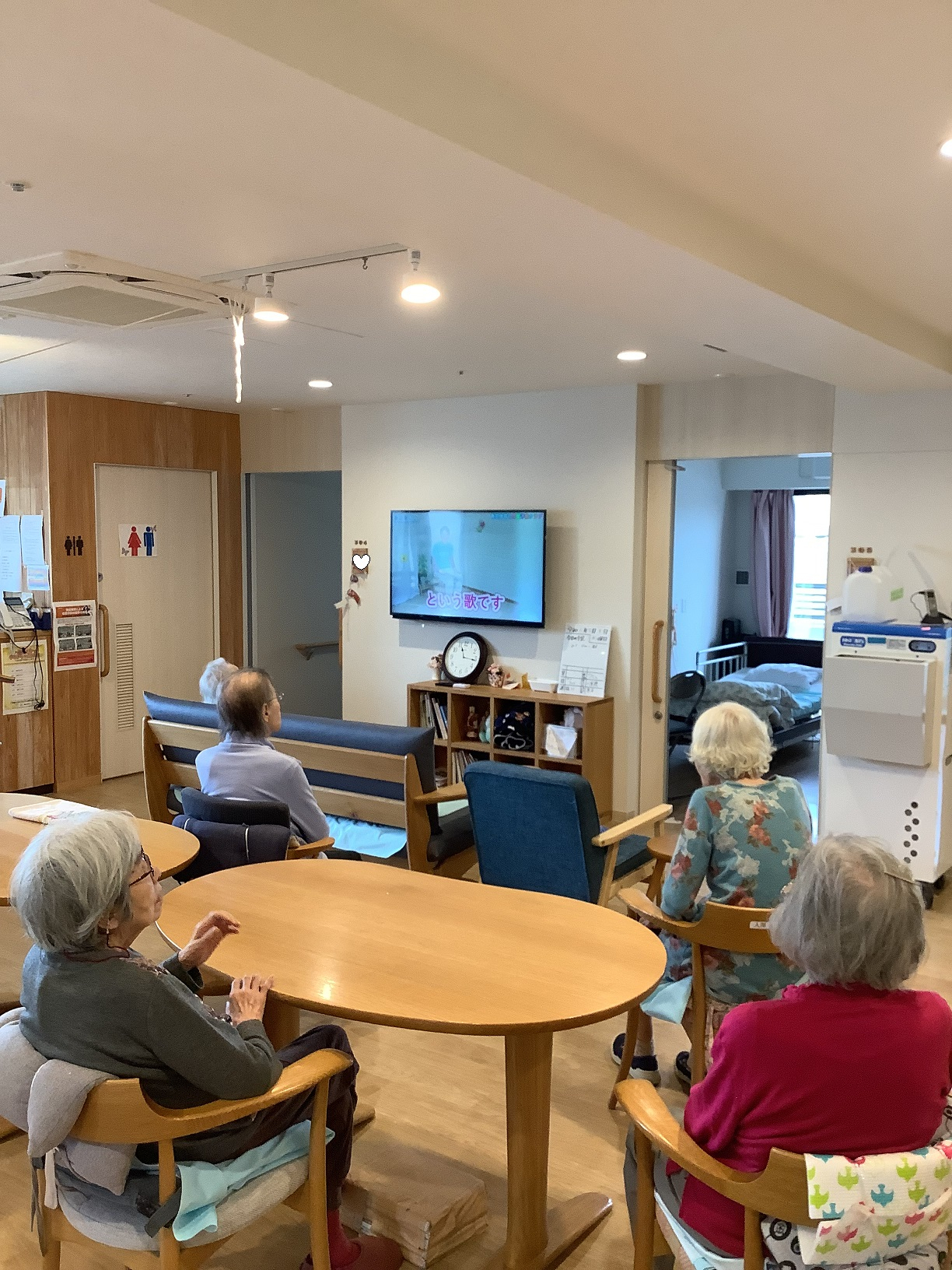 昨日、外の気温が寒くなりましたのでフロアーで体操をしました。