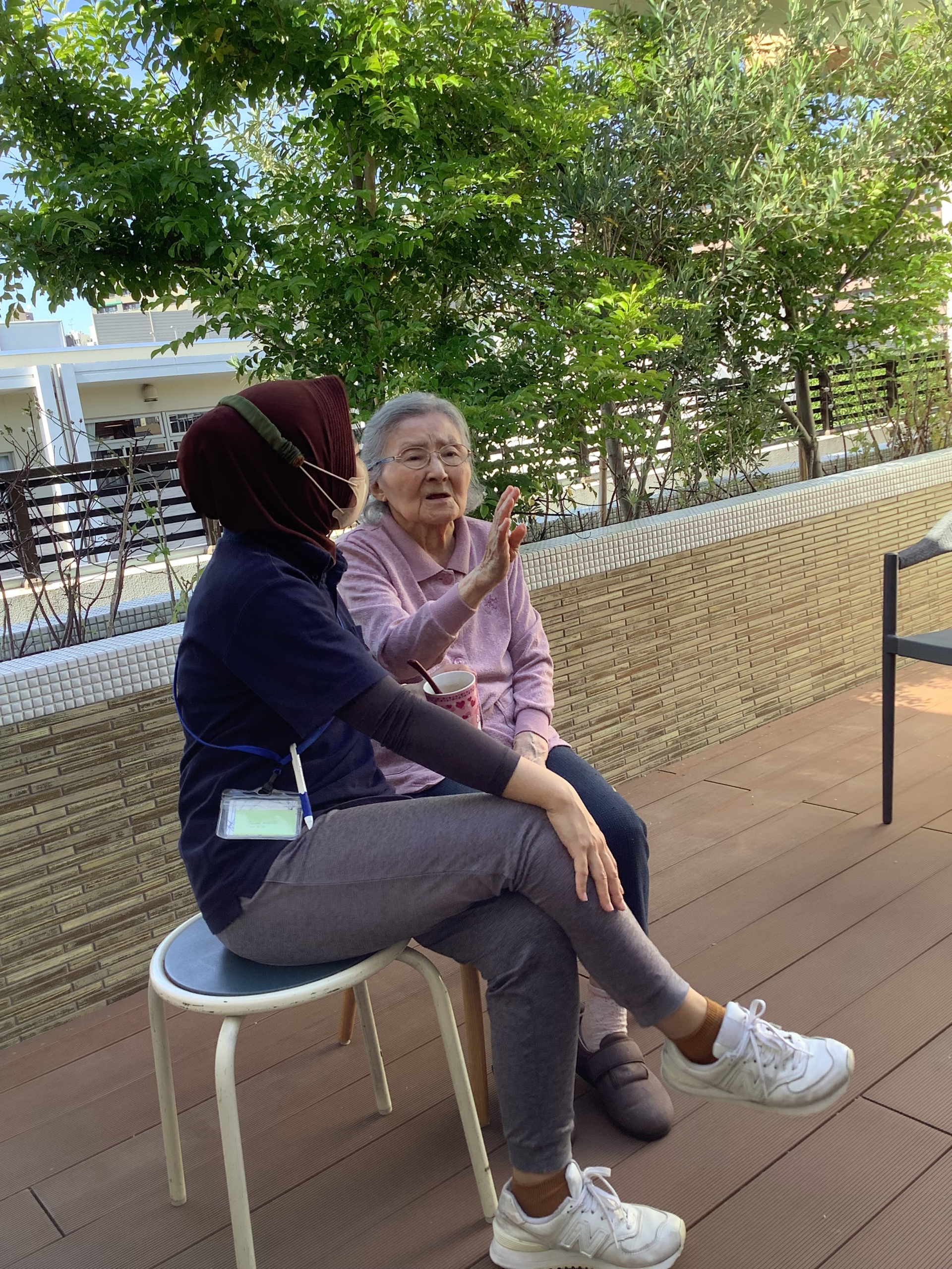 Ⅿ様はお茶を飲みながら昔の話をたくさん話しました。