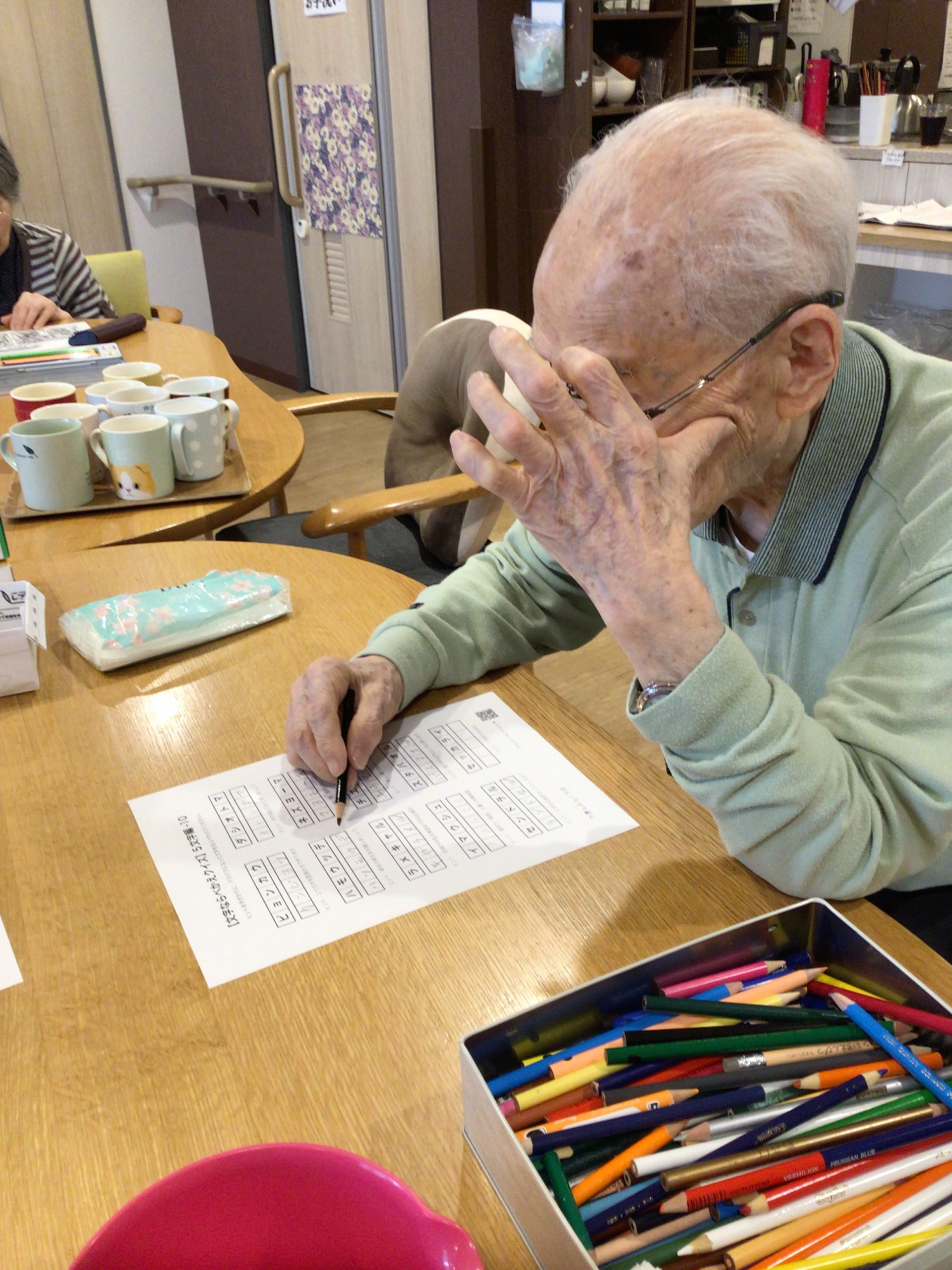 2024.05.19 活動報告 ☆彡100歳と98歳の戦い☆彡 Tweet シェアする 新聞を読んでいたM様。その後、I様と知恵比べ 集中して熱心に取り組まれていました。お二人して100点。素晴らしい 秋羽 前の記事 2024.05.19 活動報告 eastの様子 次の記事 2024.05.19 活動報告 ☆彡曇りの日曜日☆彡WEST 一覧へ戻る