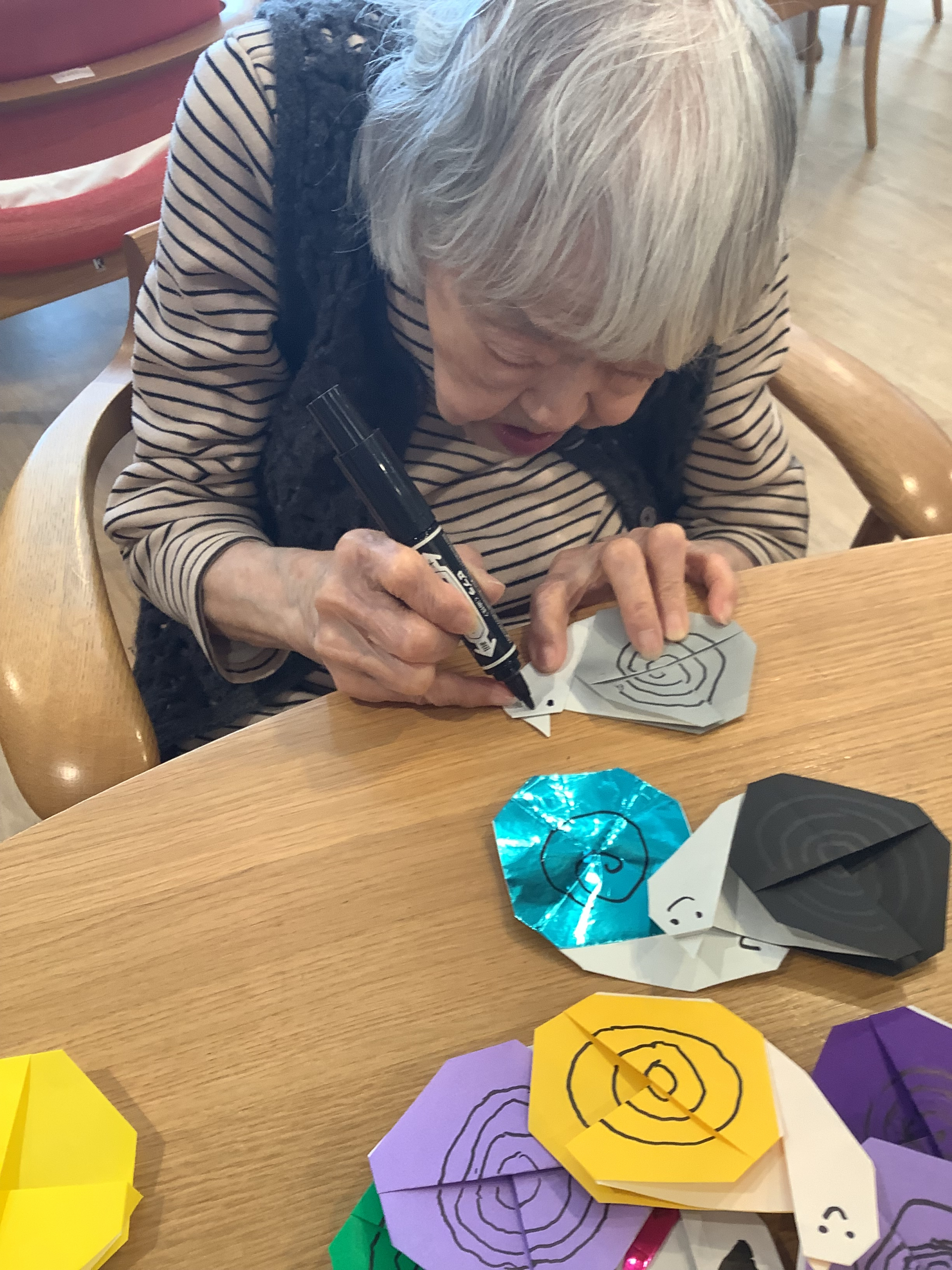 2024.05.25 活動報告 ☆WEST☆ 紫陽花⑤ Tweet シェアする 紫陽花が完成した後は「かたつむり」を‼ 好きな折り紙を選びかたつむり折った後は顔を書いていきます( *´艸`) カワ(・∀・)イイ!! GH小日向 きむら 前の記事 2024.05.25 活動報告 ☆WEST☆ 寝心地最高 次の記事 2024.05.25 活動報告 ☆WEST☆ 整えて・・ 一覧へ戻る