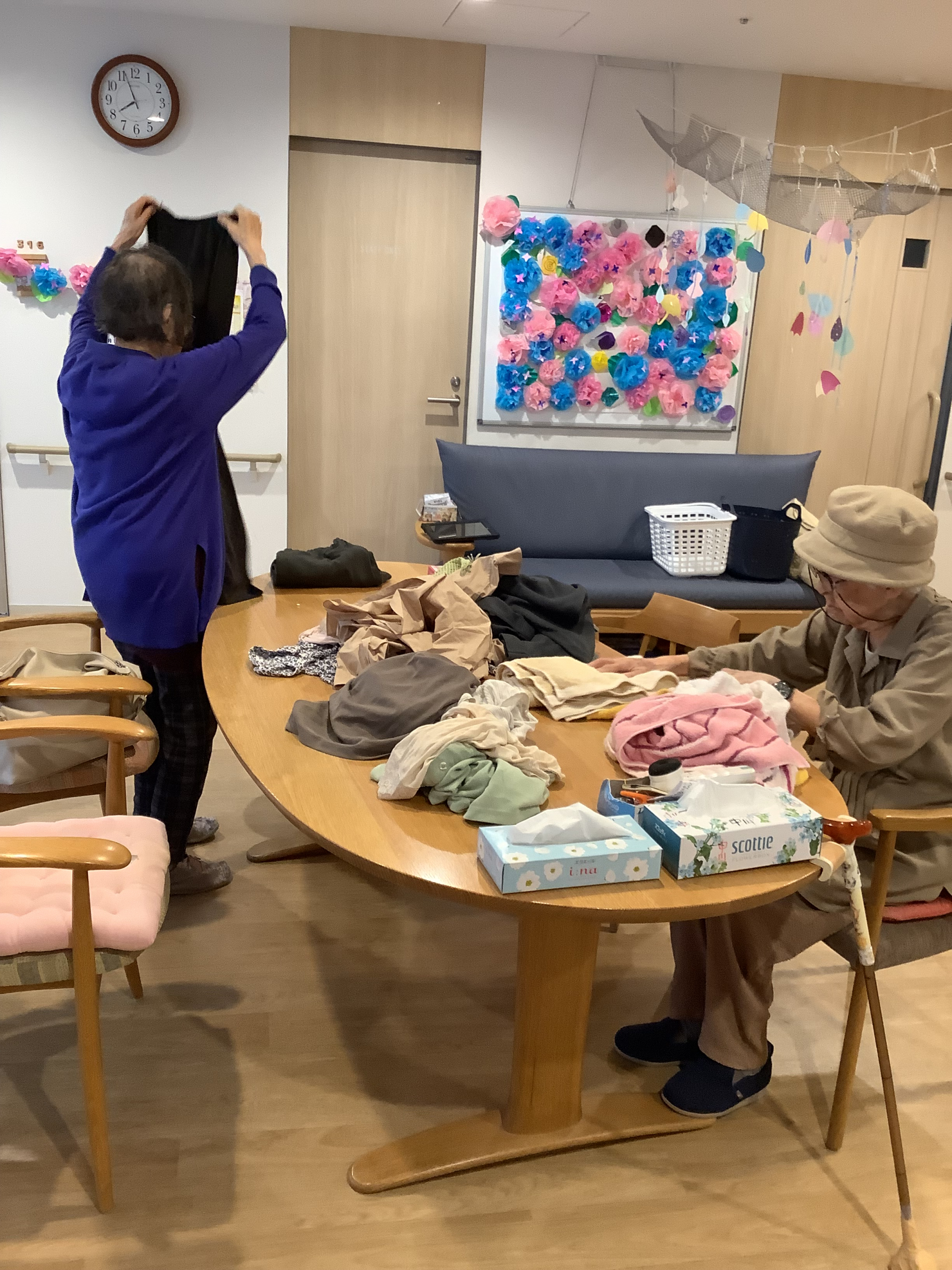 2024.06.22 活動報告 ☆WEST☆ 畳んで干して Tweet シェアする 9人分の洗濯物・・協力して畳んで干してます 」 テキパキ綺麗に干して下さってます W様も干しに来て下さいました(^O^)/ GH小日向 きむら 前の記事 2024.06.22 活動報告 ☆WEST☆ ハサミでチョキチョキ 次の記事 2024.06.21 活動報告 雨の日 一覧へ戻る