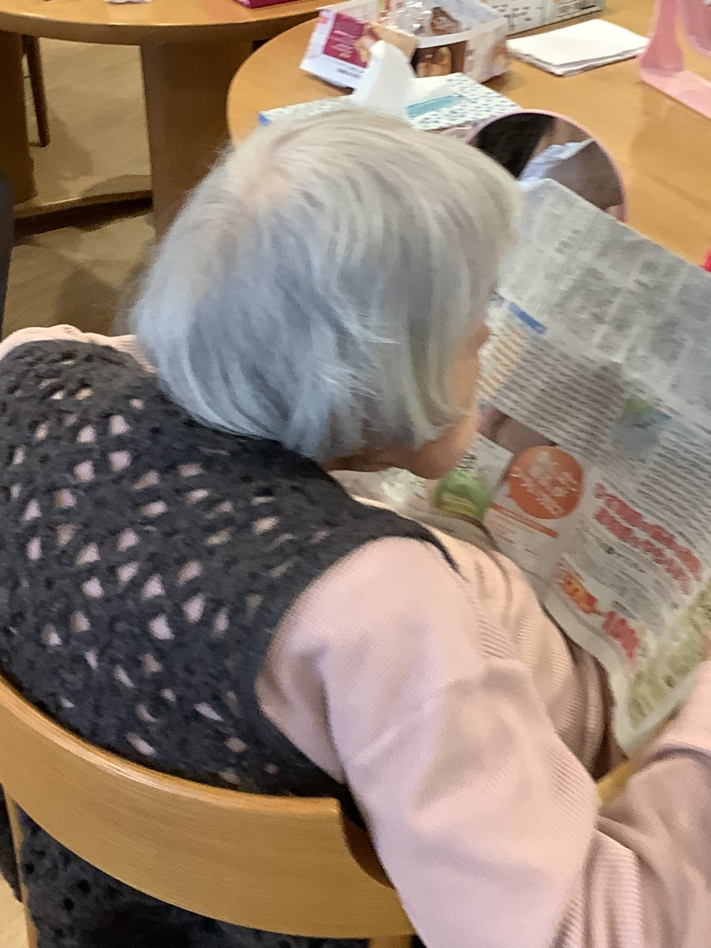 2023.11.25 活動報告 ☆WEST☆ 午前中のご様子② Tweet シェアする チラシ折りも分担で・・ 1・2・1・2足上げて・・ 新聞を熟読中~。 I様も熟読中~。 サンタ帽子にトナカイカチューシャ☆ とても似合ってます(#^^#) きむら 前の記事 2023.11.26 活動報告 本日のEASTフロア 次の記事 2023.11.25 活動報告 ☆WEST☆ 午前中のご様子① 一覧へ戻る