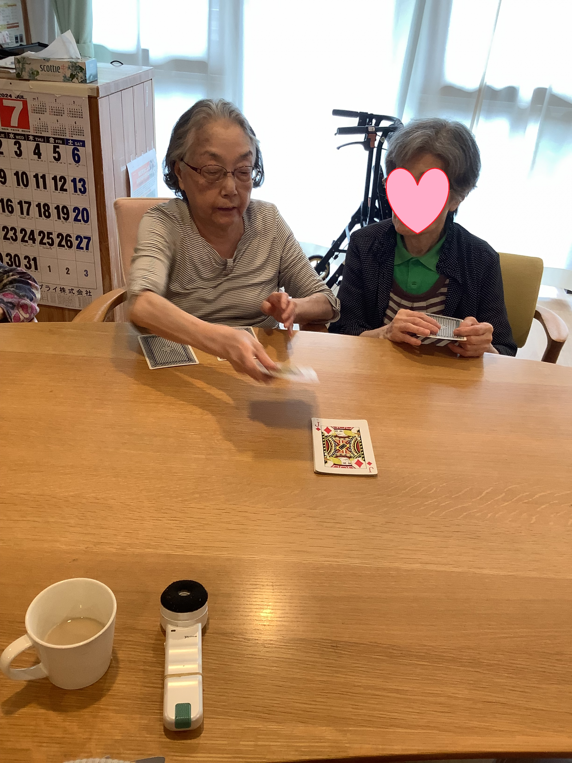 2024.07.10 活動報告 ☆WEST☆ トランプゲーム Tweet シェアする トランプゲームはカードを記憶したり、作戦を立てたり頭をよく使うので 脳が活性化されます! ババ抜きからの神経衰弱~ トランプはみんなで楽しめて良いですね♬ GH小日向 きむら 前の記事 2024.07.10 活動報告 ☆WEST☆ 手分けして 次の記事 2024.07.10 活動報告 ☆WEST☆ 訪問歯科 一覧へ戻る